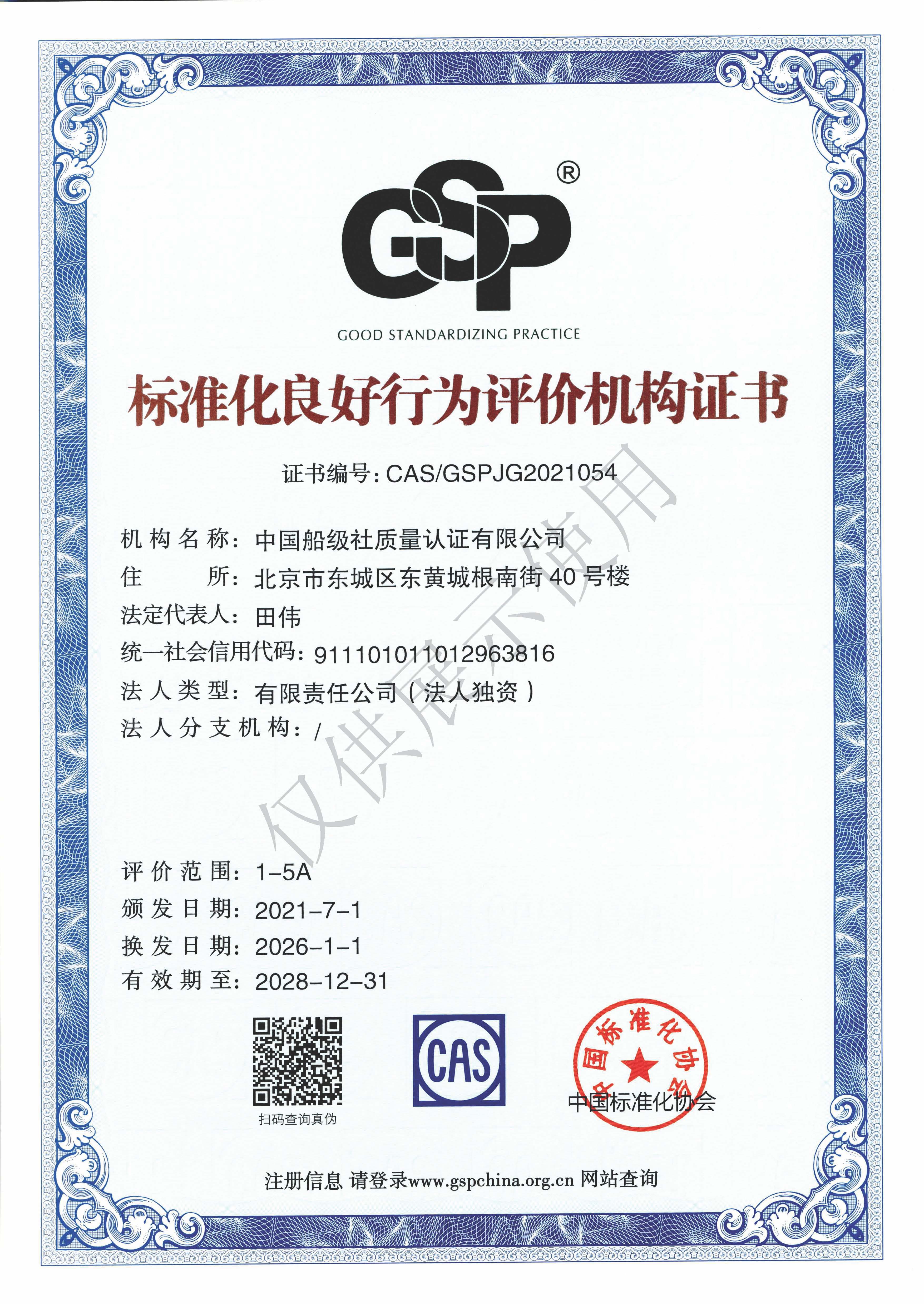 标准化良好行为评价机构证书