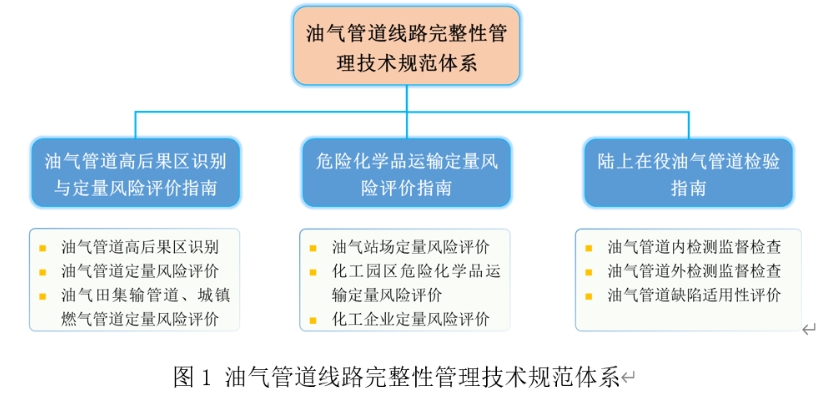 两份指南顺利通过专家评审,不仅说明公司编制的定量风险评价、在役管道检验技术规范得到了行业专家的认可,还同时与《TG14007-2024油气管道高后果区识别与定量风险评价指南》共同构成了公司油气管道线路完整性管理技术规范体系(见图1),标志着公司在油气管道完整性领域又向前迈进一大步。后续,技术中心将继续完善油气管道线路、站场完整性管理技术规范体系,为公司油气管道完整性管理技术服务业务奠定良好的技术基础。