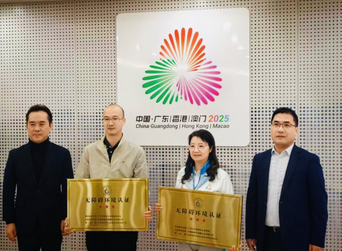 自公司承接两个体育场馆的认证项目后,迅速组建专业团队投身工作。团队秉持“专业严谨、以人为本”的核心原则,多次深入场馆开展实地调研,精准掌握场地实际情况与无障碍建设需求。同时,积极与广州市重点公共建设项目管理中心、场馆改造监理单位、设计单位及场馆运营单位开展多轮沟通协调,高效推进认证各项工作,使得广州天河体育中心体育场和广州市残疾人体育运动中心两个场馆最终获得无障碍环境认证最高等级“三星”,为12月8日开幕的全国第十二届残疾人运动会暨第九届特殊奥林匹克运动会保驾护航。