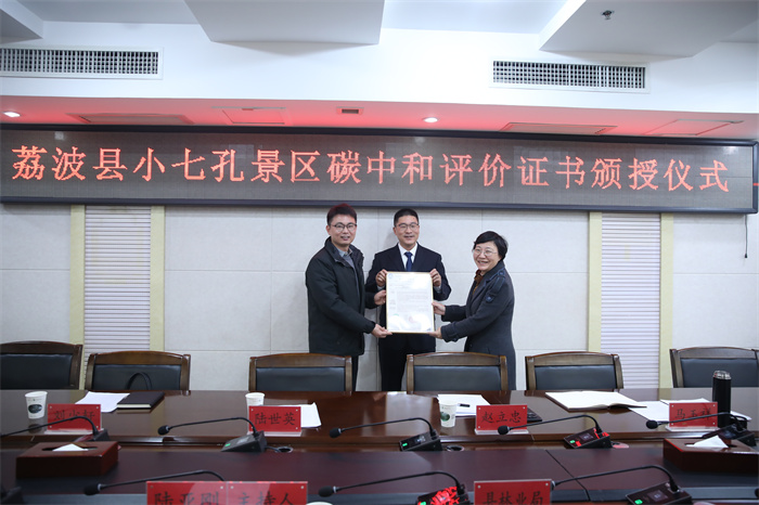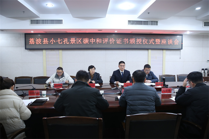 12月16日上午,贵州省首张旅游景区“碳中和”评价证书颁授仪式在荔波县举行,荔波县小七孔景区成为贵州省首个“碳中和景区”。黔南州林业局党组书记陆世英,荔波县委常委、县政府副县长陆亚刚以及县文旅局、荔波樟江风景名胜区管理处、县政府办、县生态环境局、县林业局主要负责同志和有关领导共同见证这一时刻。我司作为评价机构受邀出席进行发言,并为景区颁发“碳中和”评价证书。