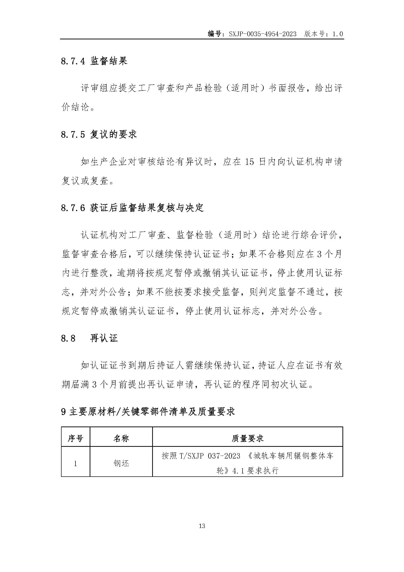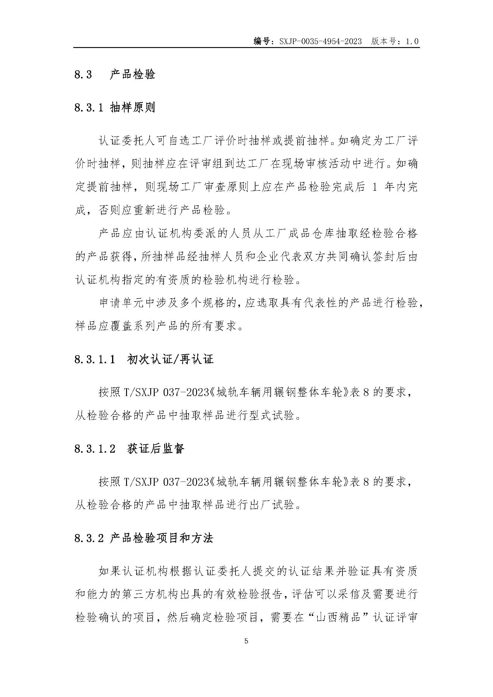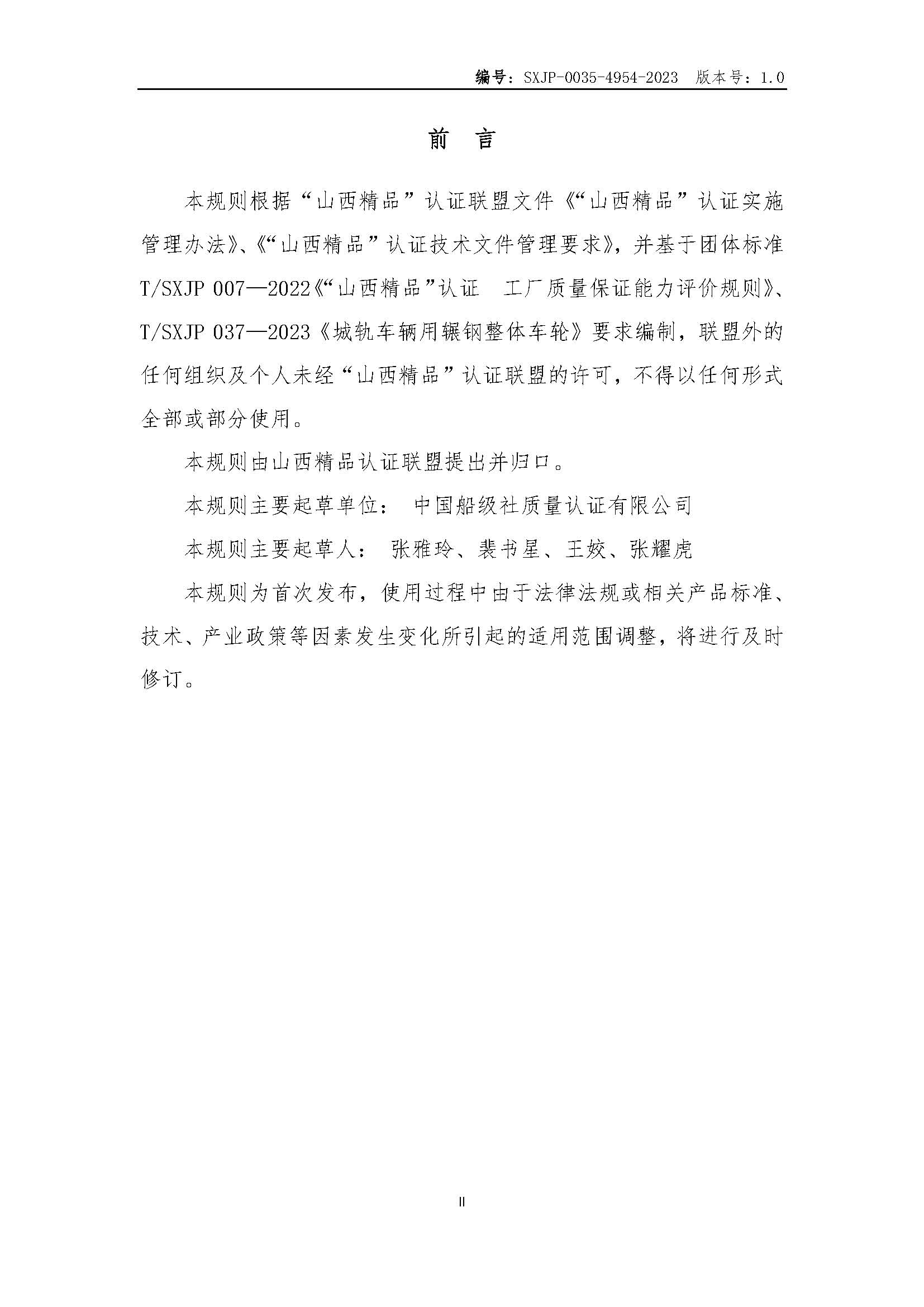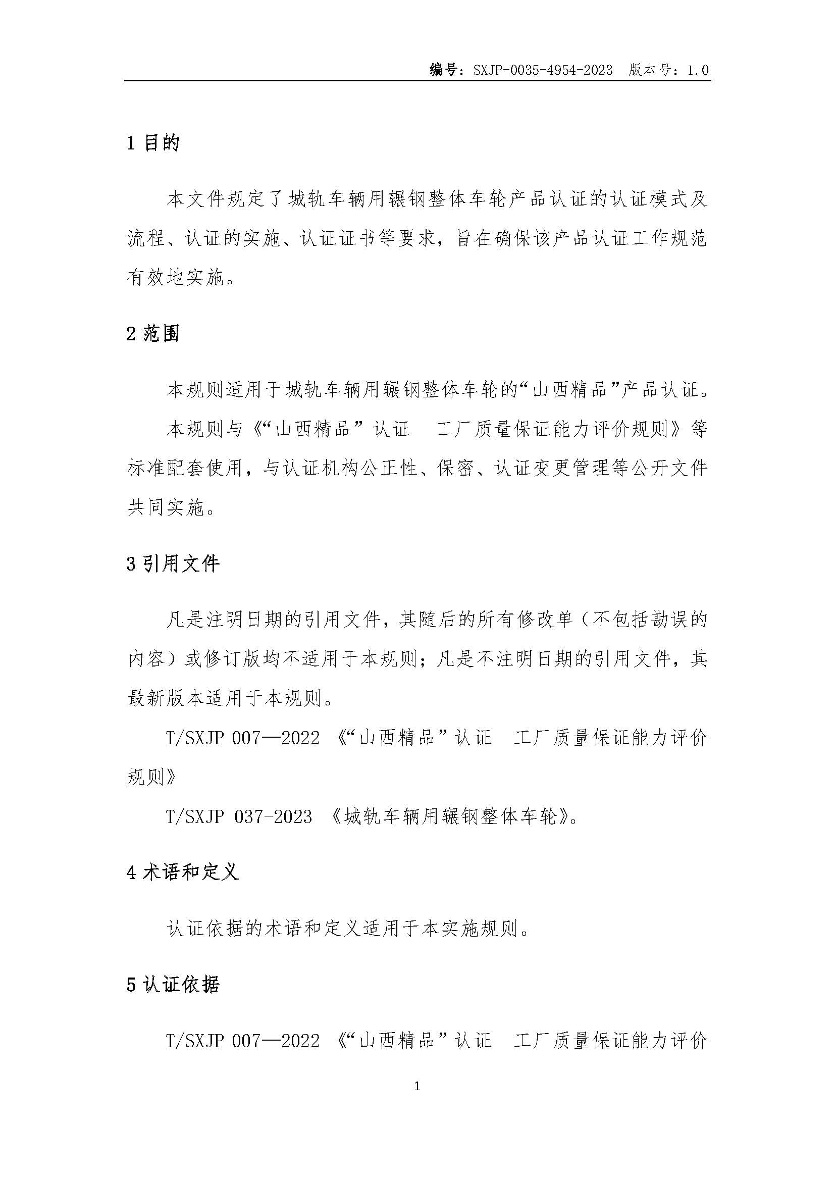 SXJP-0035-4954-2023“山西精品”认证实施规则城轨车辆用辗钢整体车轮
