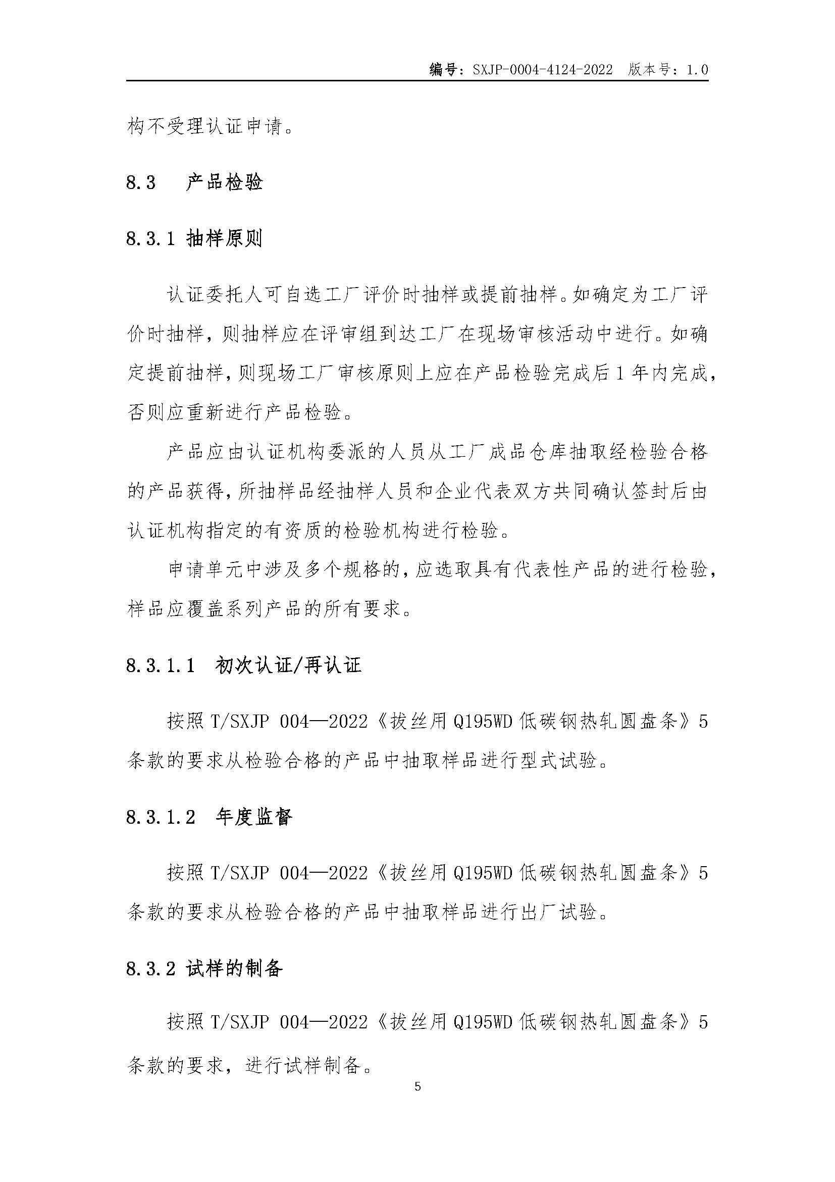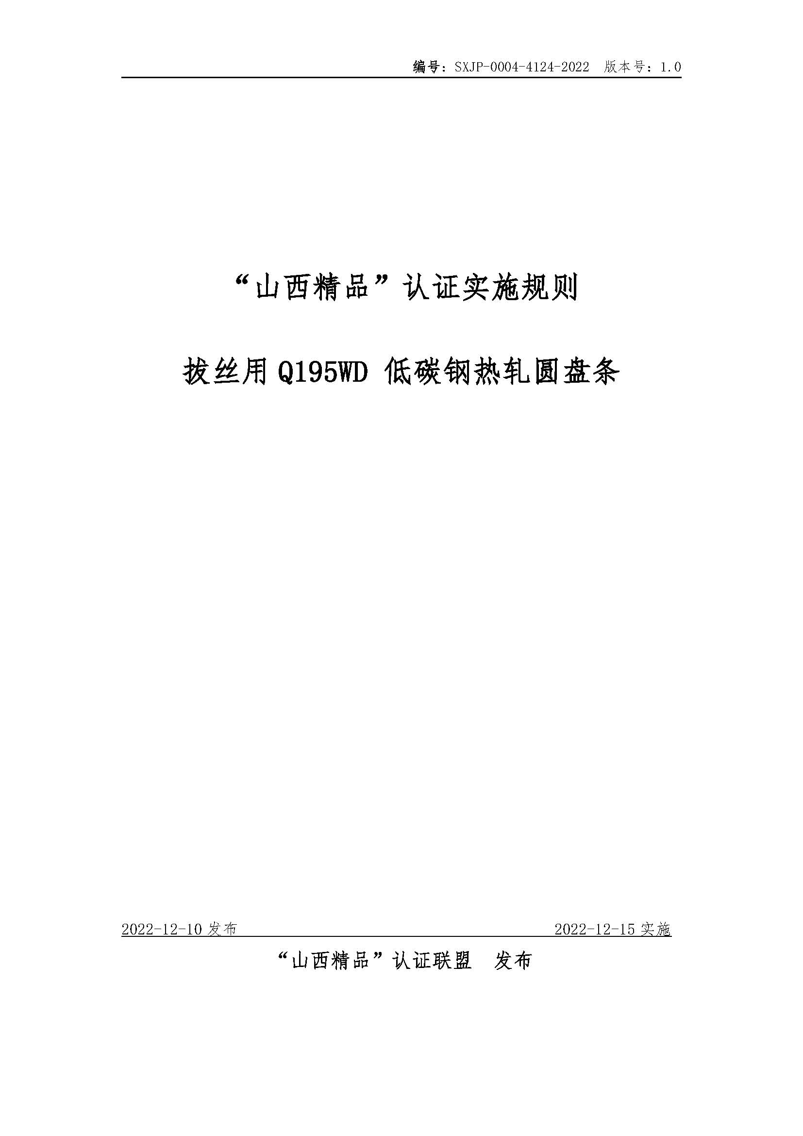 SXJP-0004-4124-2022“山西精品”认证实施规则拔丝用Q195WD低碳钢热轧圆盘条