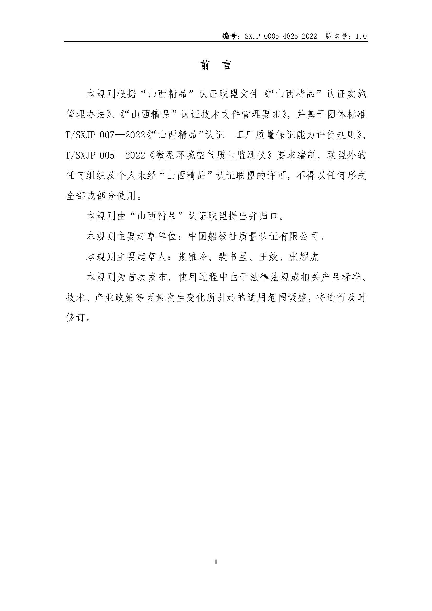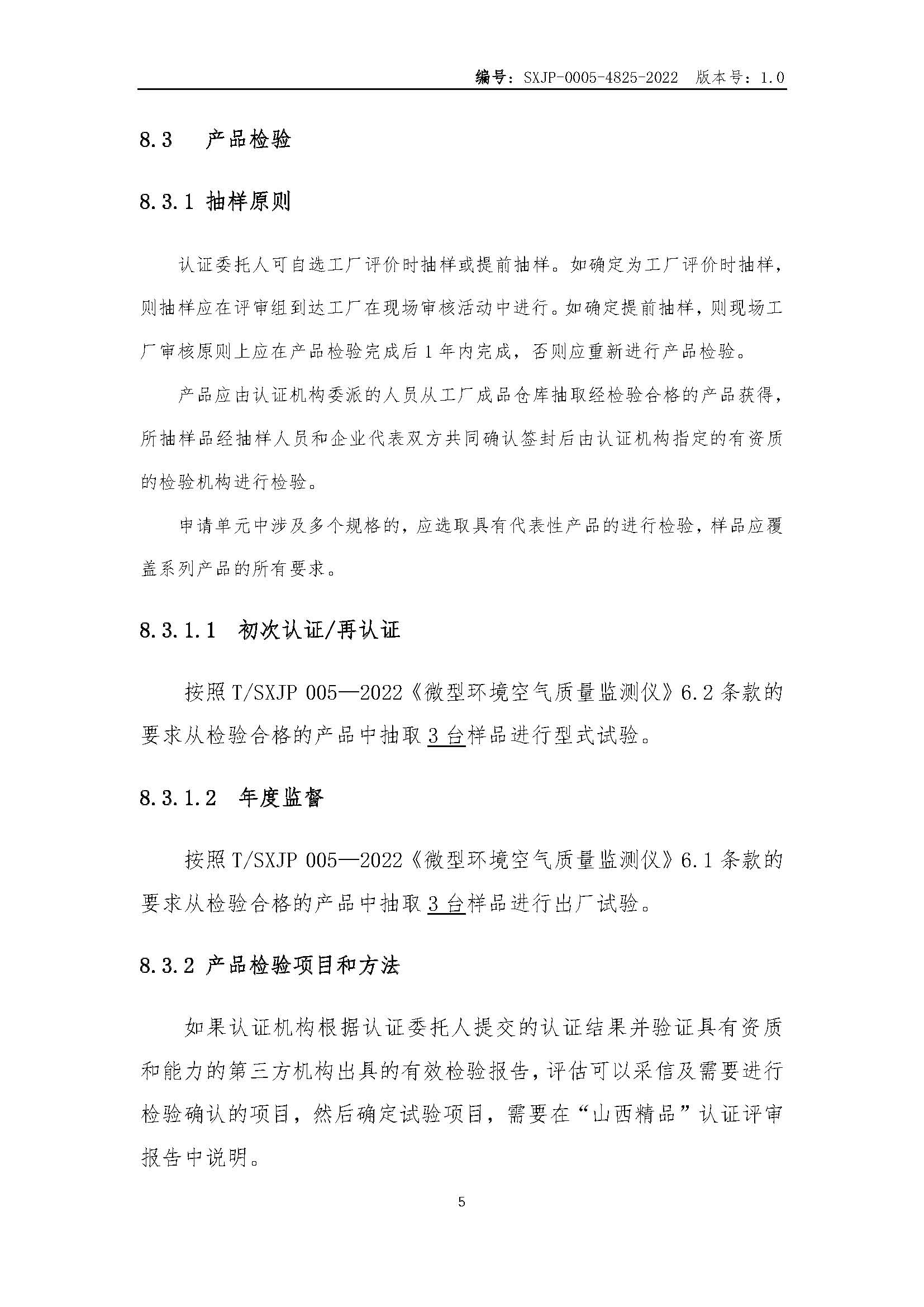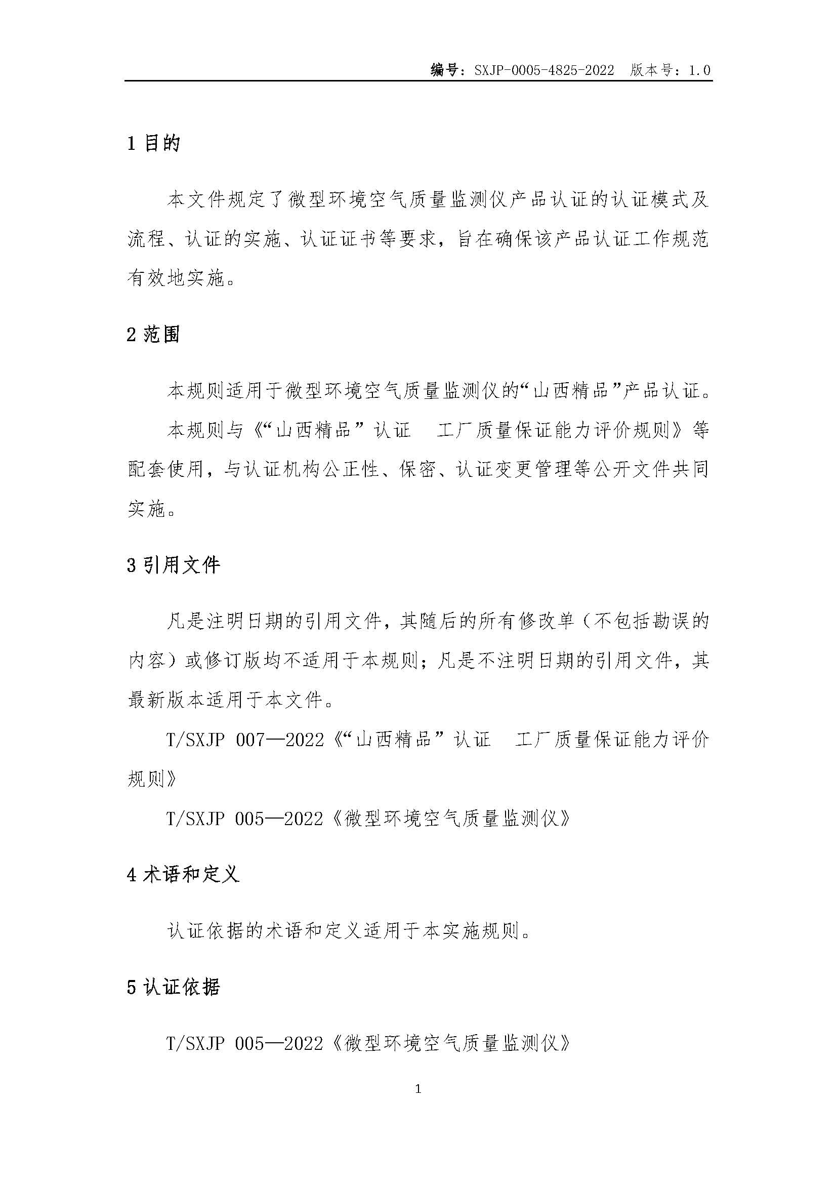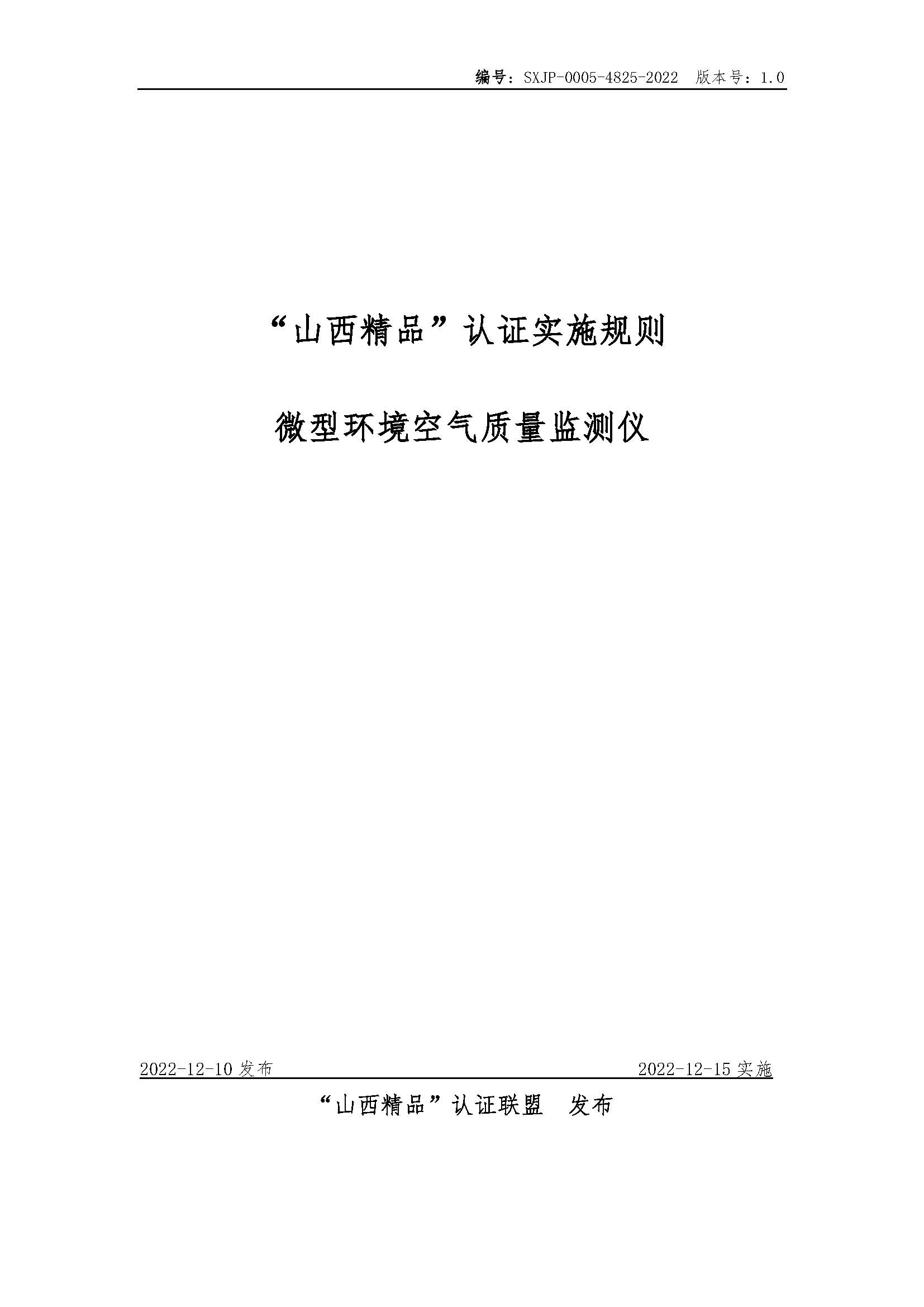 SXJP-0005-4825-2022“山西精品”认证实施规则微型环境空气质量监测仪