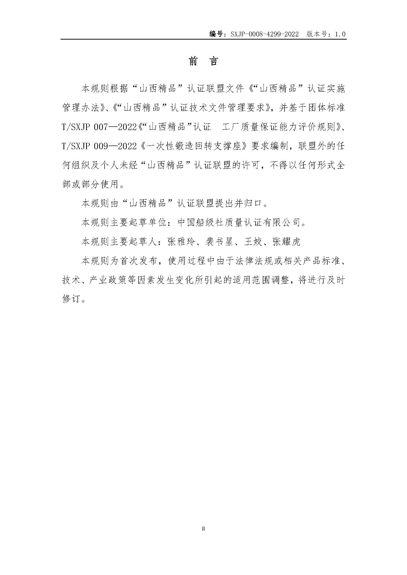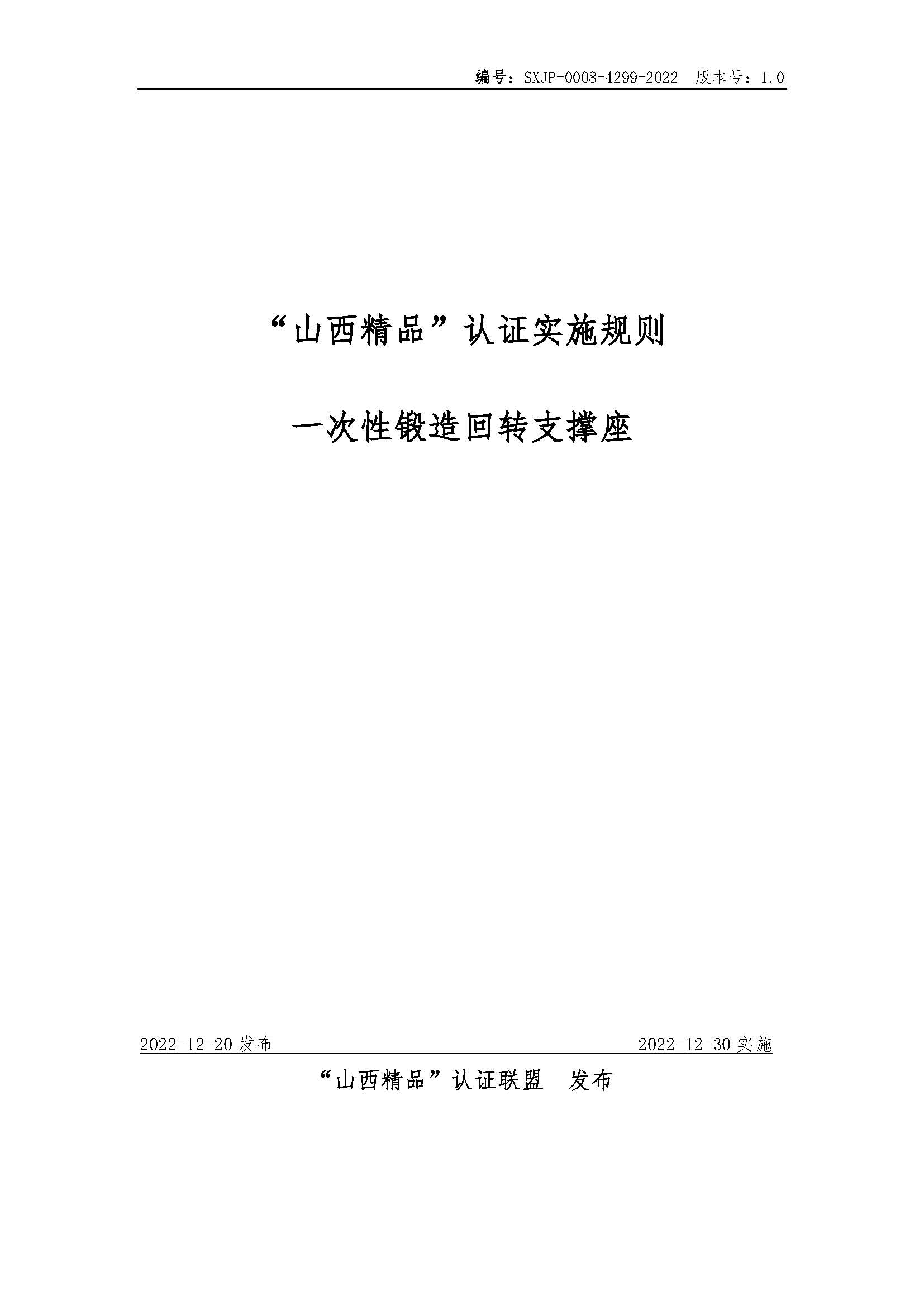 SXJP-0008-4299-2022--“山西精品”认证实施规则---一次性锻造回转支撑座