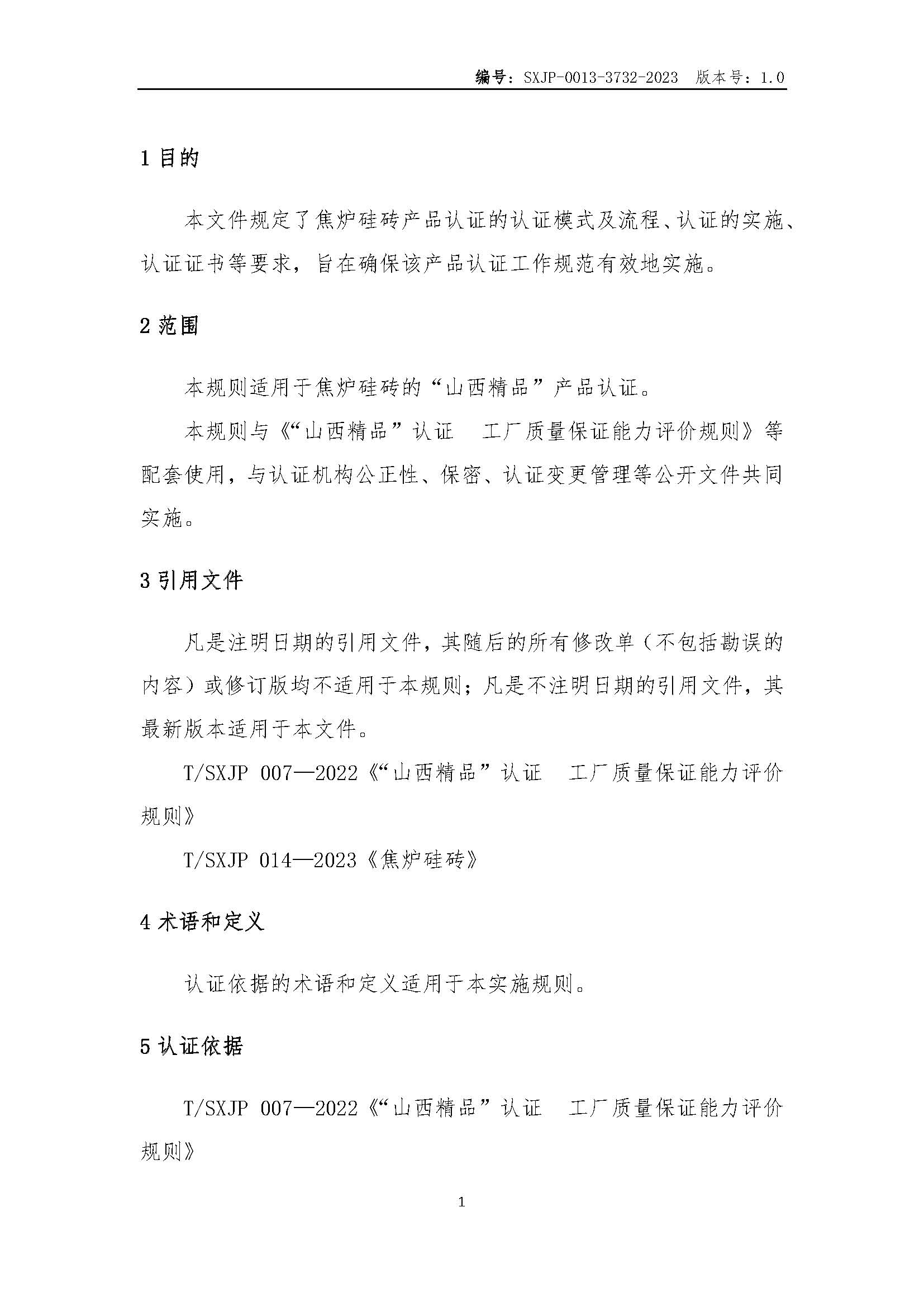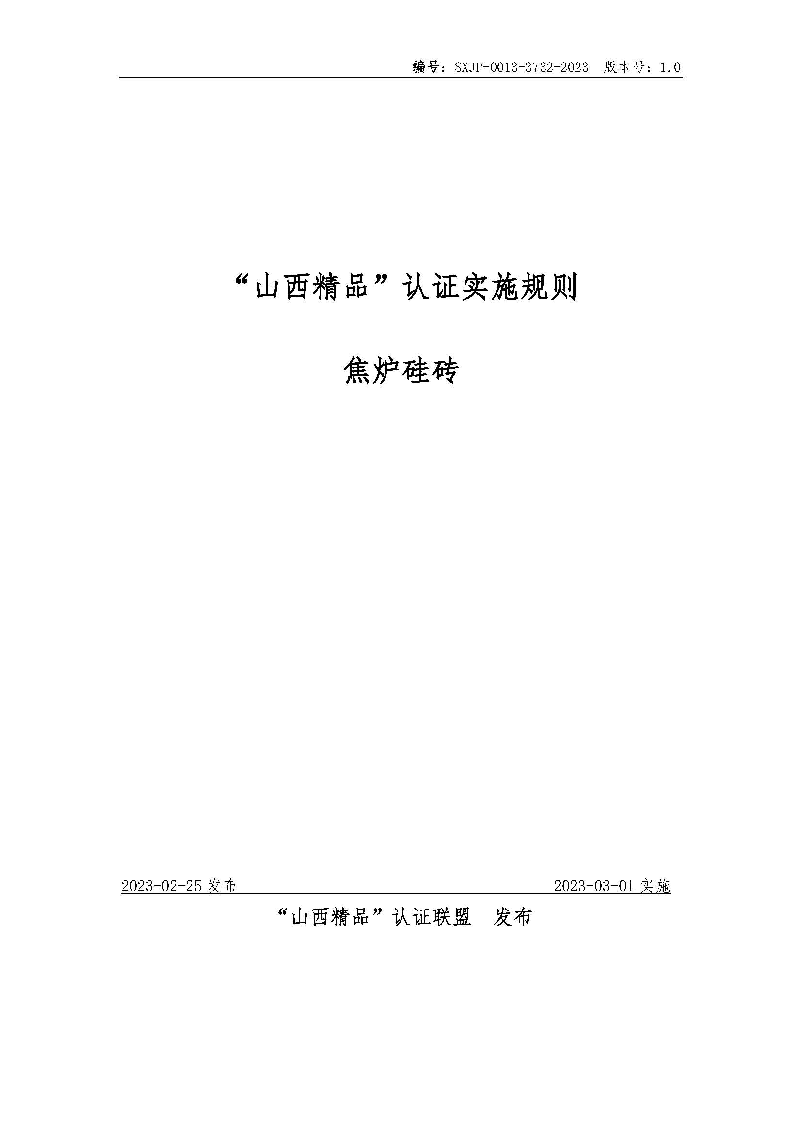 SXJP-0013-3732-2023-“山西精品”认证实施规则-焦炉硅砖