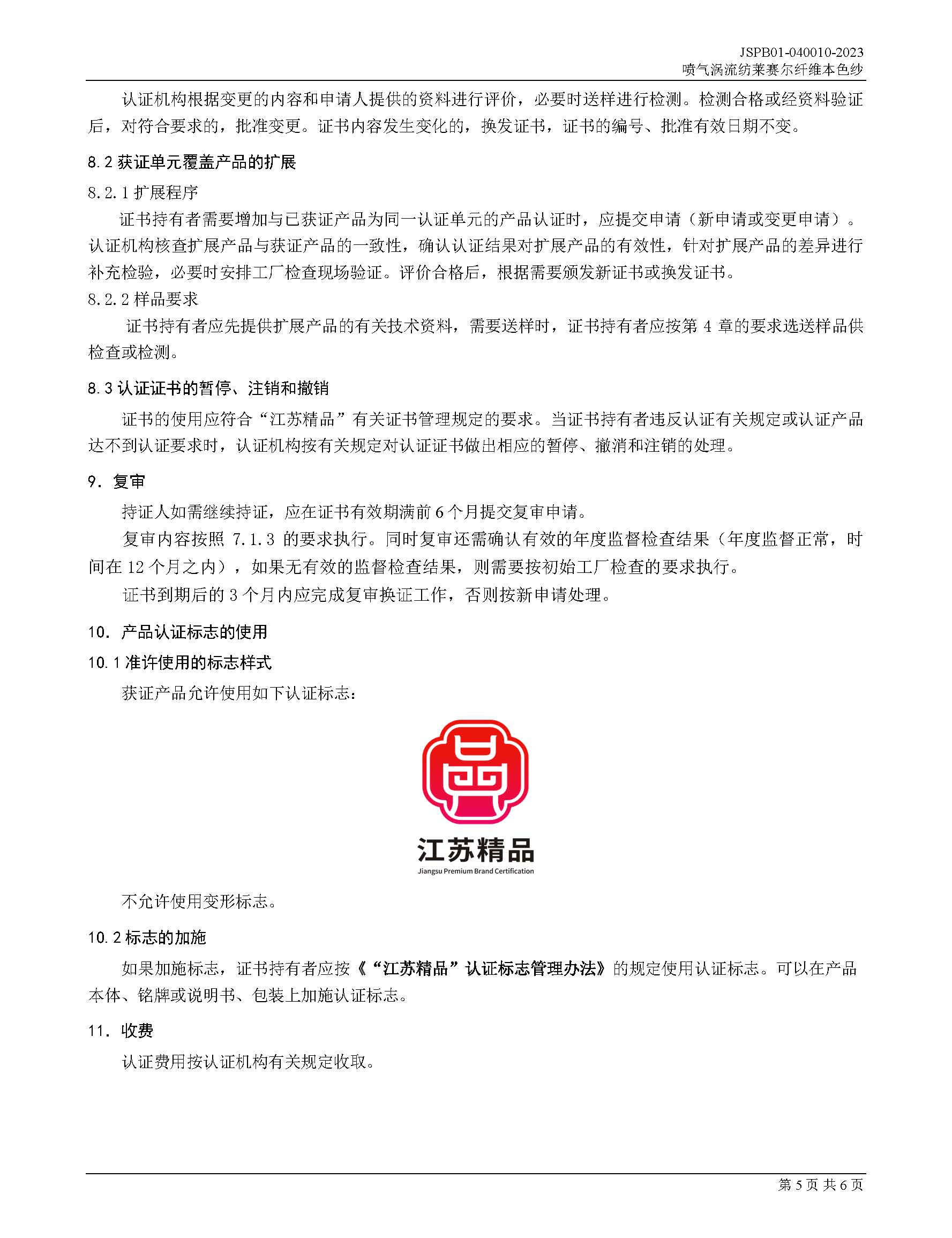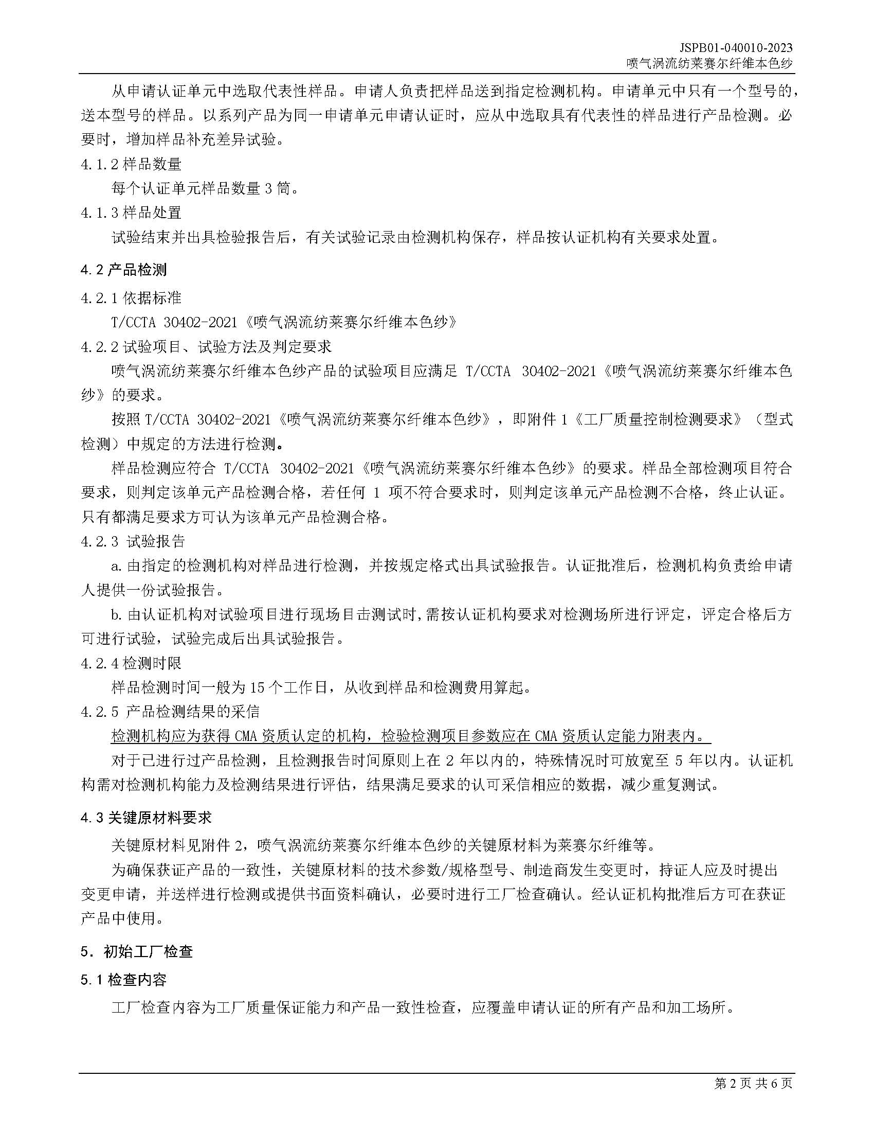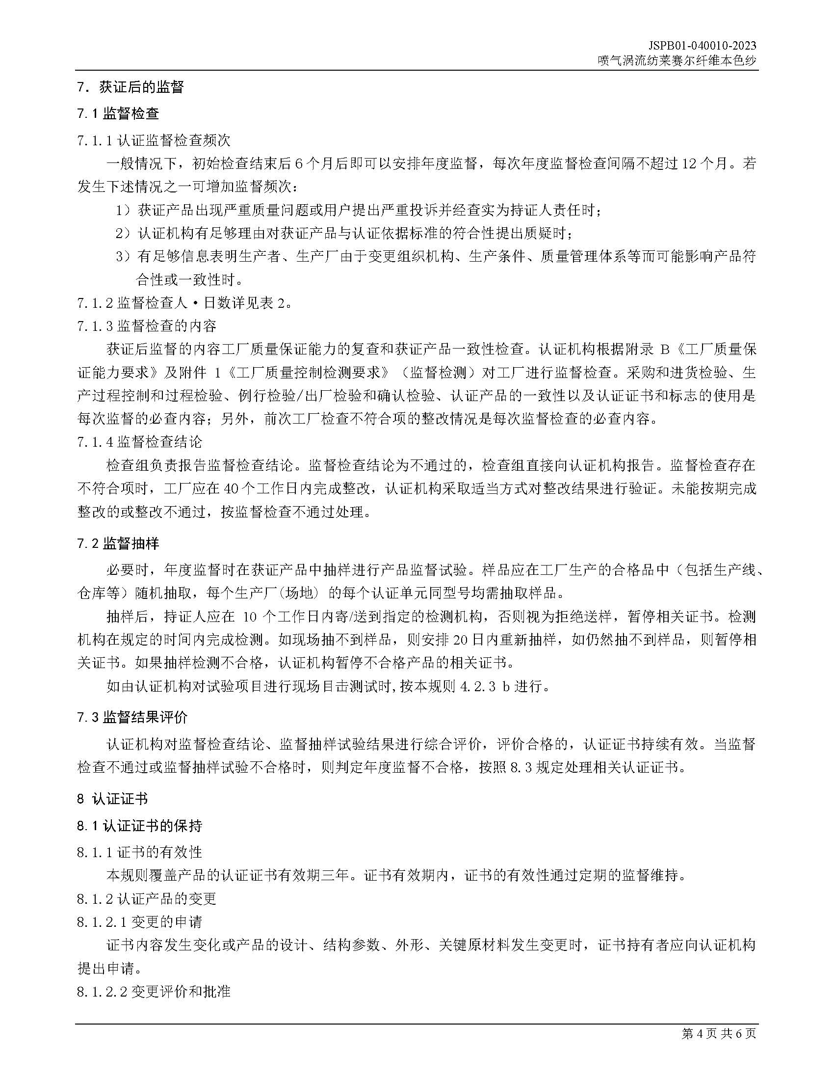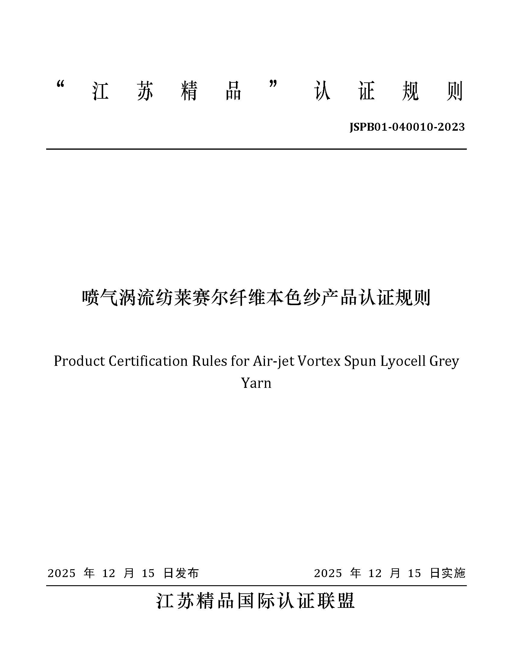 JSPB01-040010-2023喷气涡流纺莱赛尔纤维本色纱产品认证规则