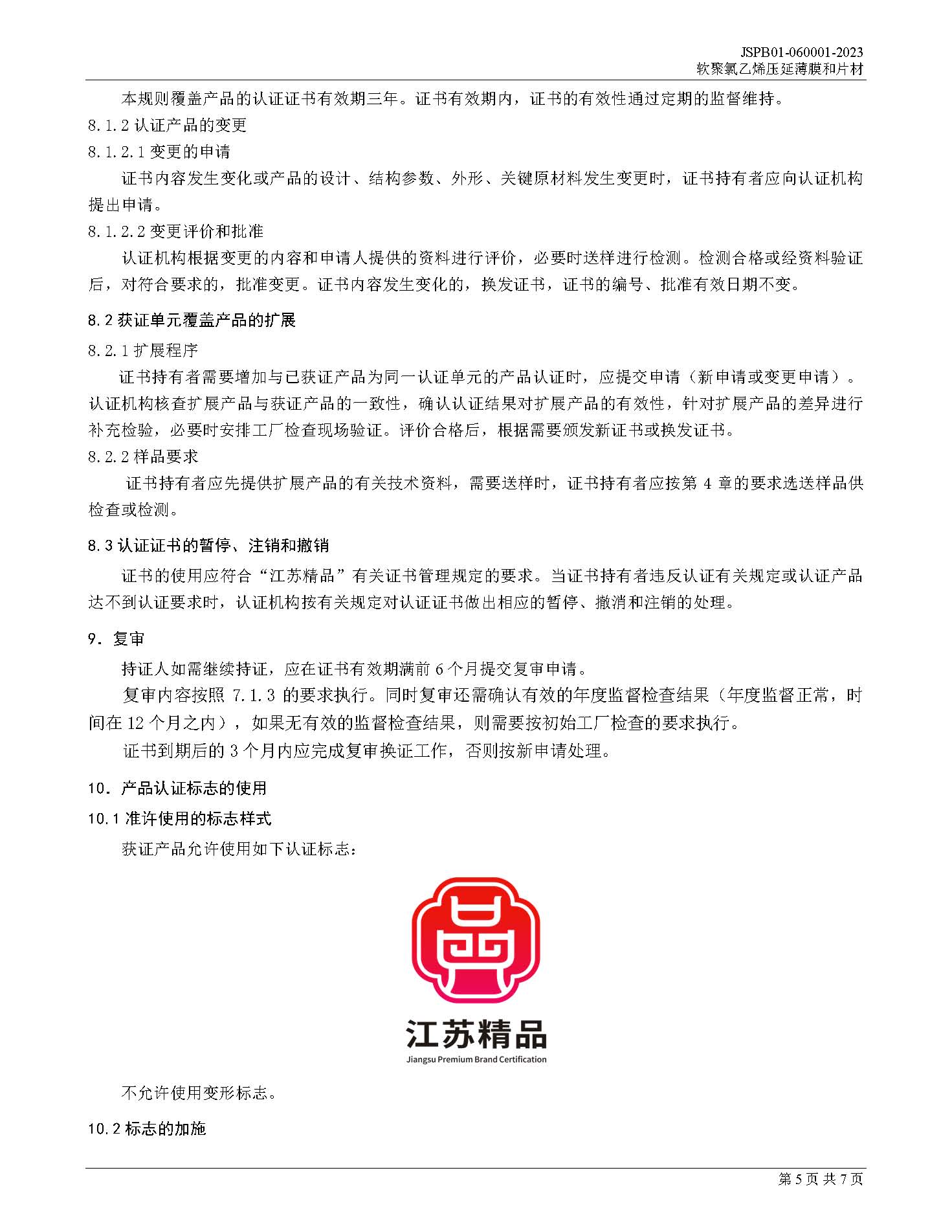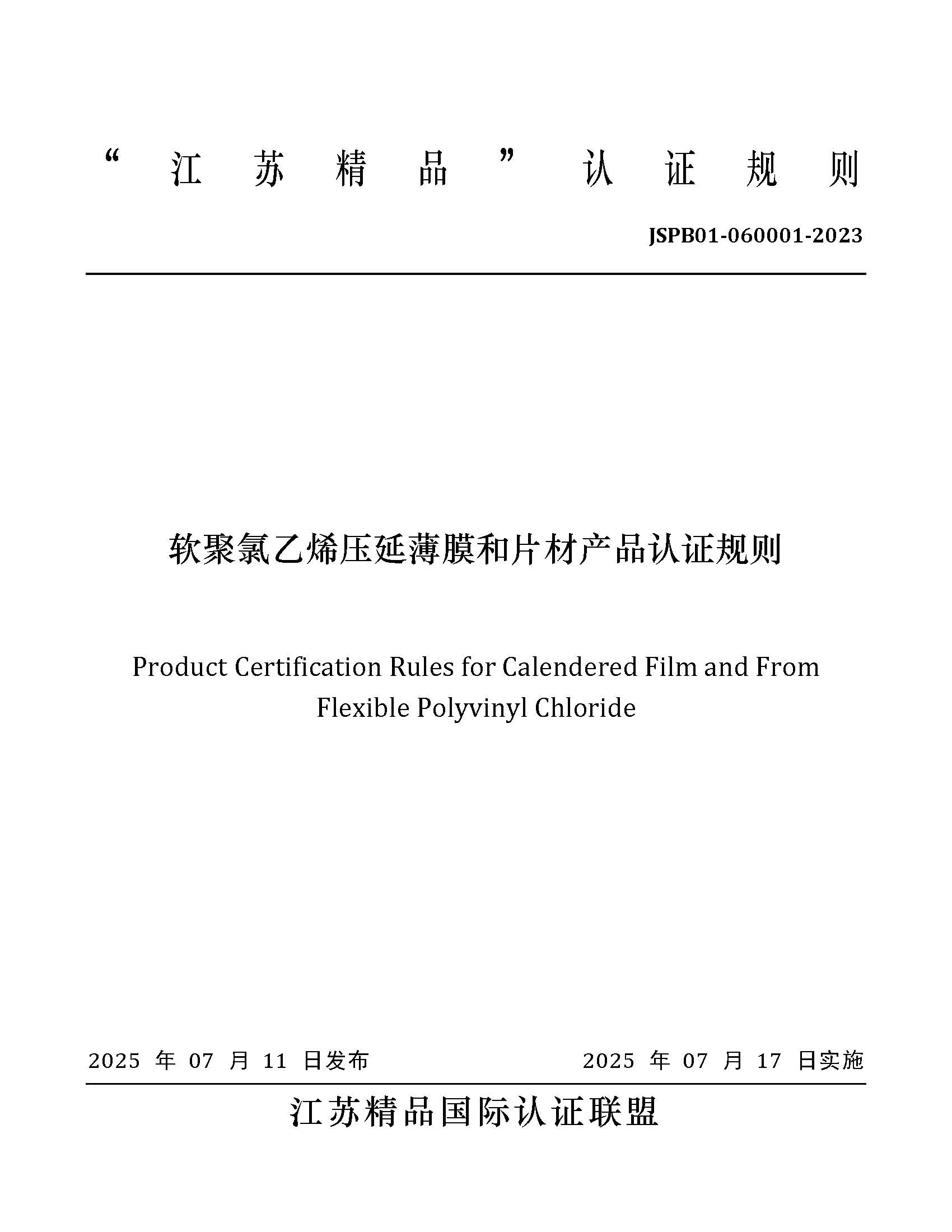 JSPB01-060001-2023软聚氯乙烯压延薄膜和片材产品认证规则