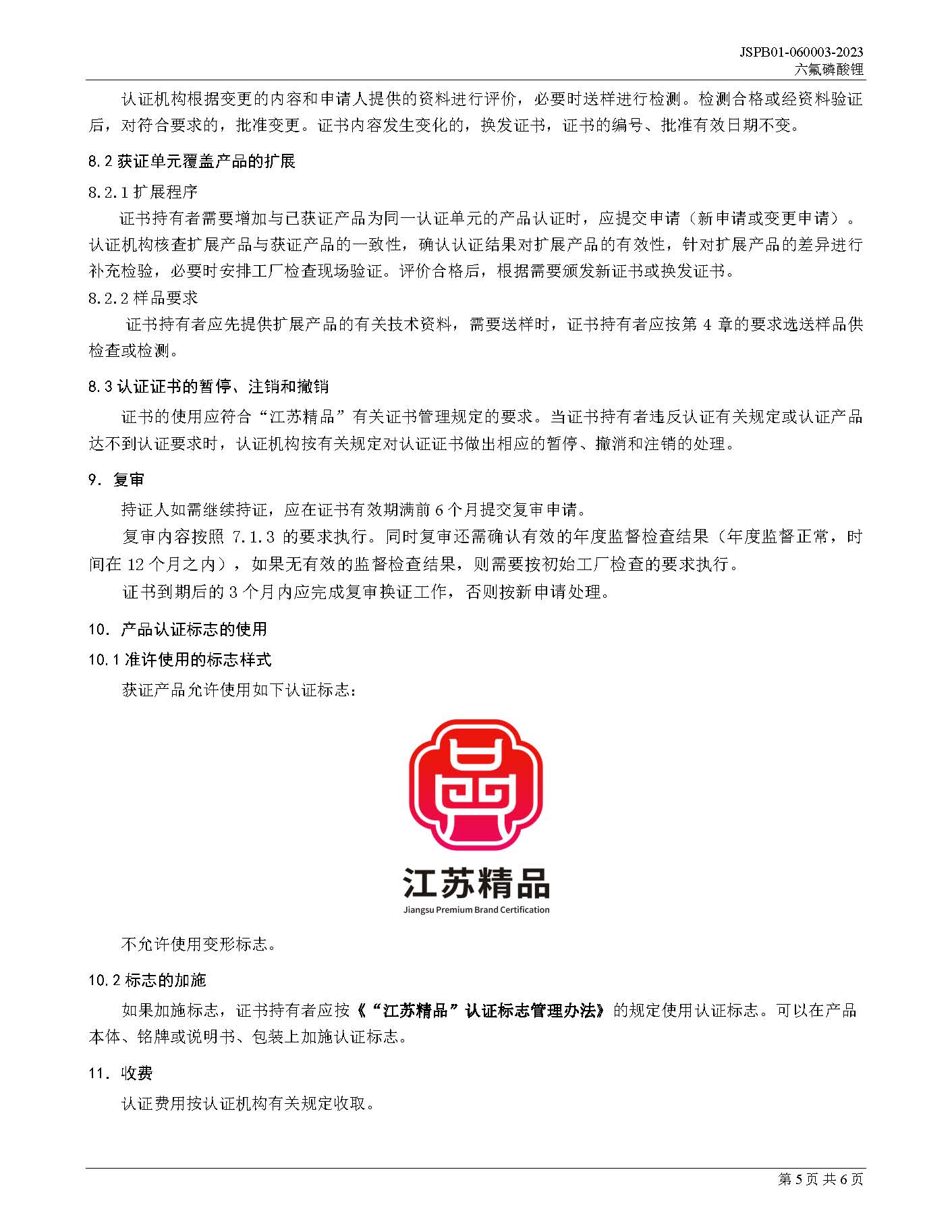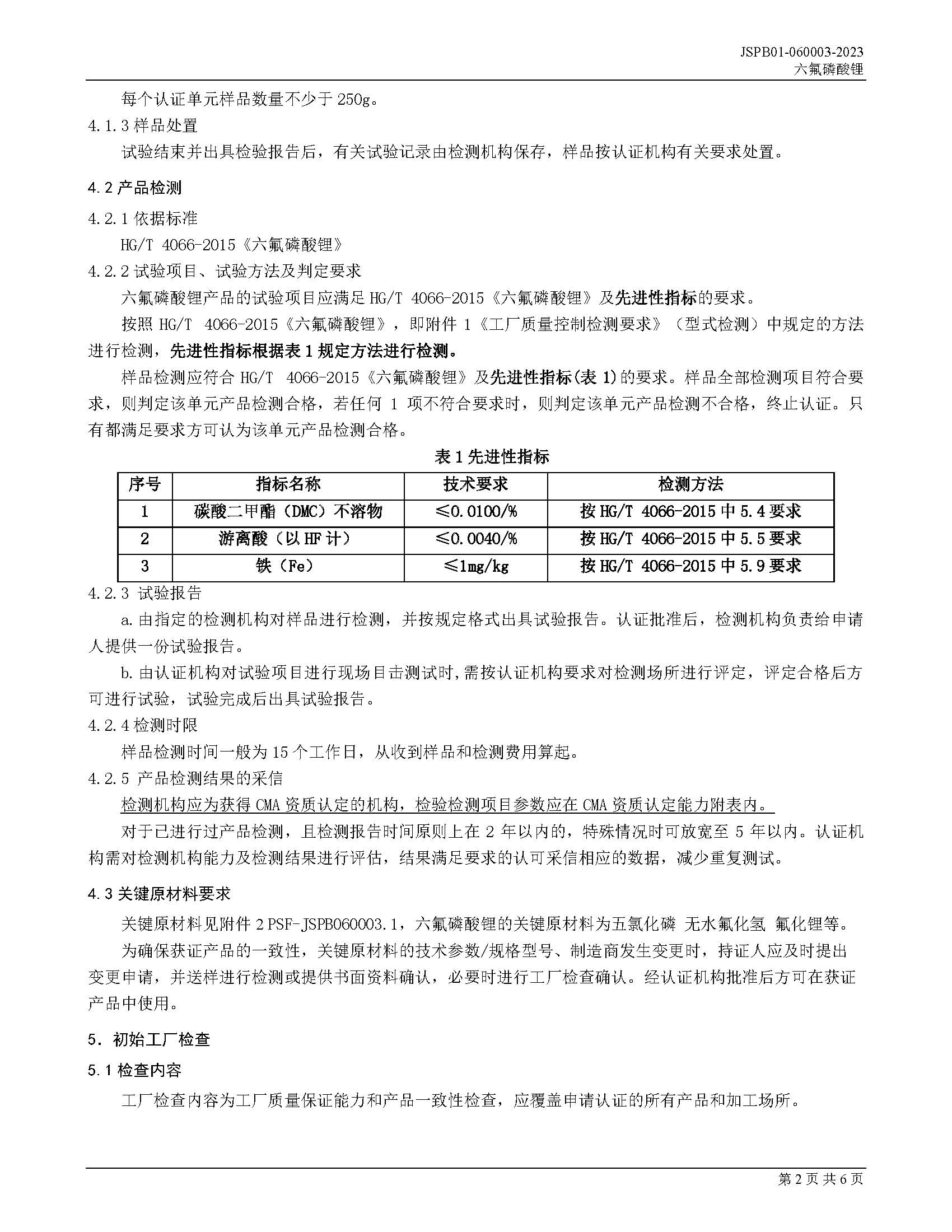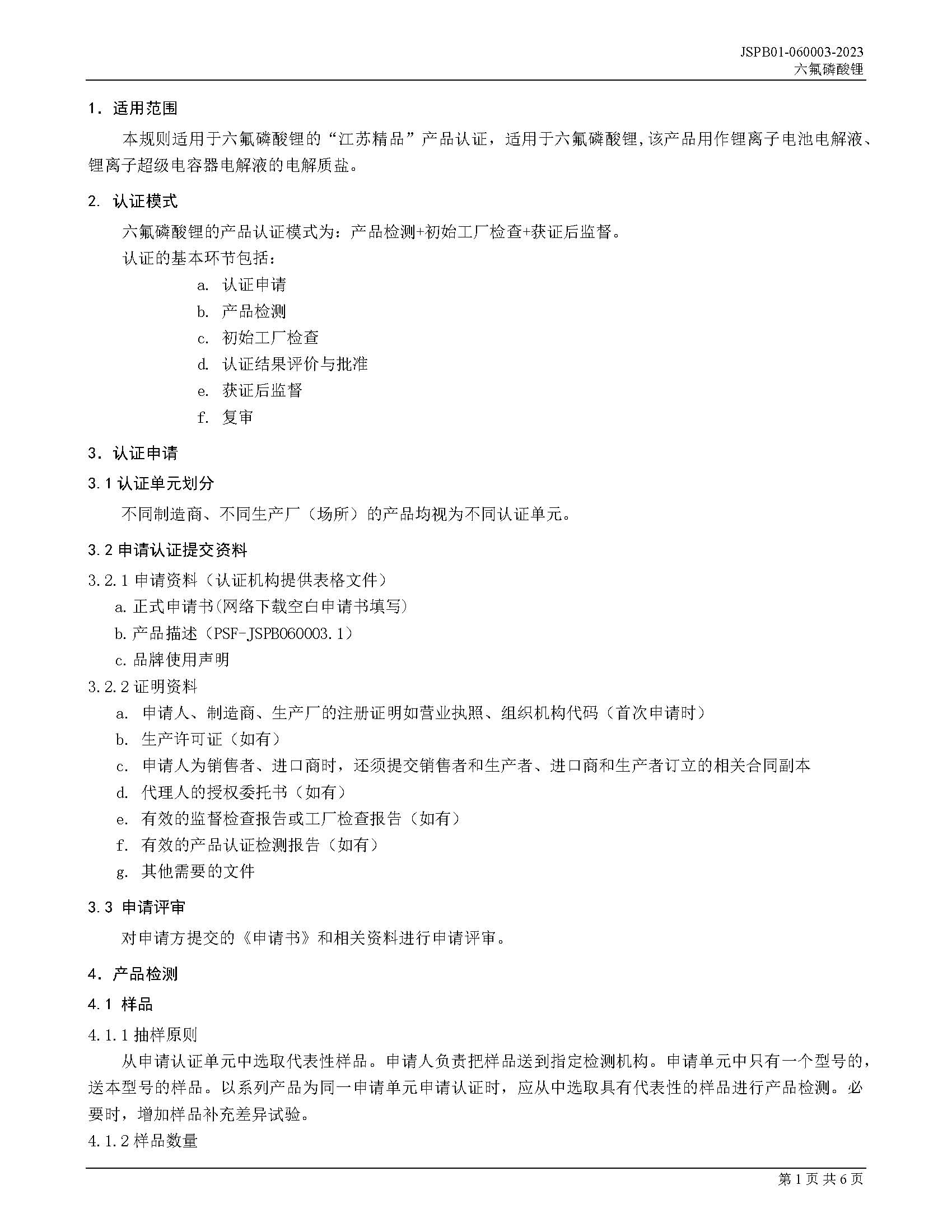 JSPB01-060003-2023六氟磷酸锂产品认证规则