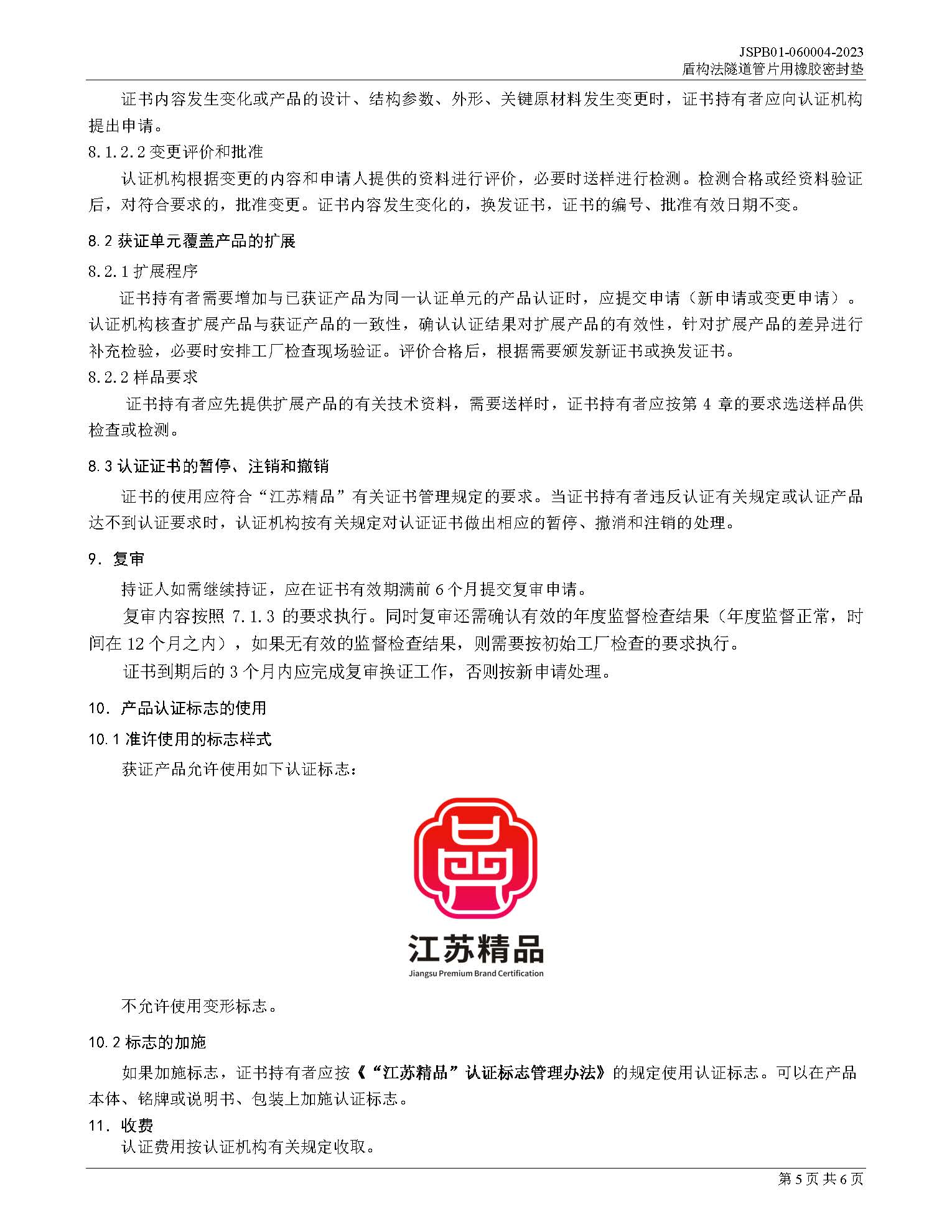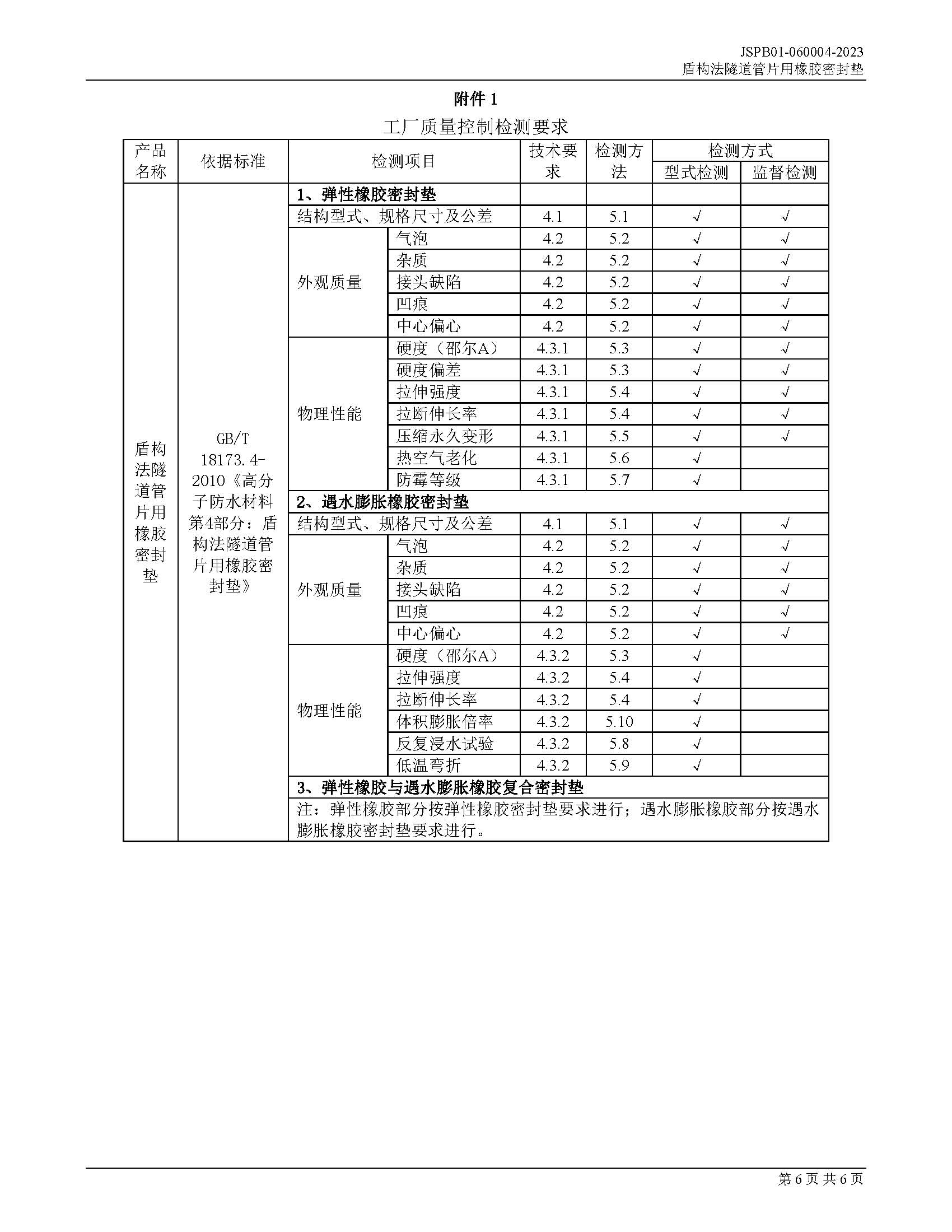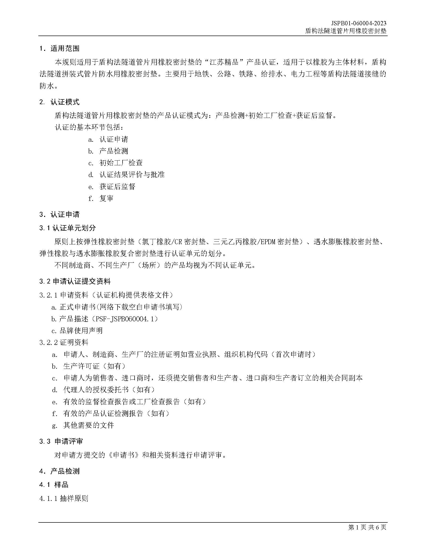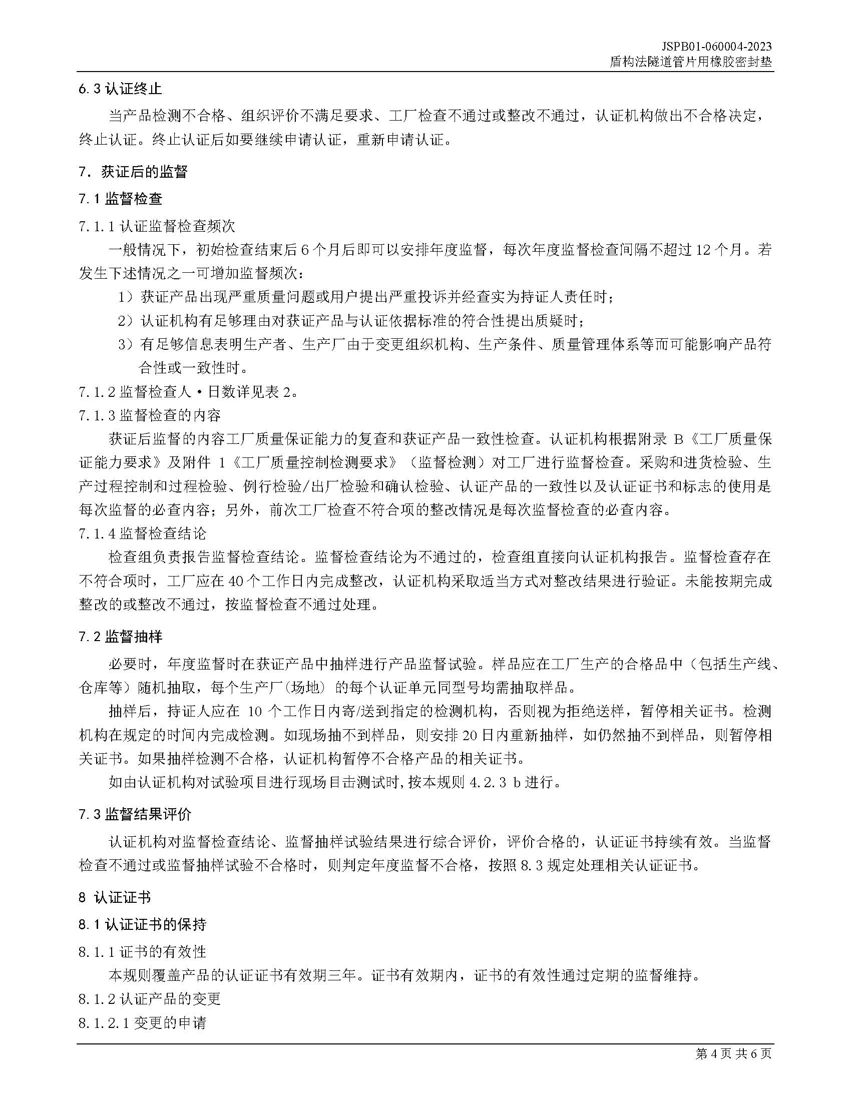 JSPB01-060004-2023盾构法隧道管片用橡胶密封垫产品认证规则