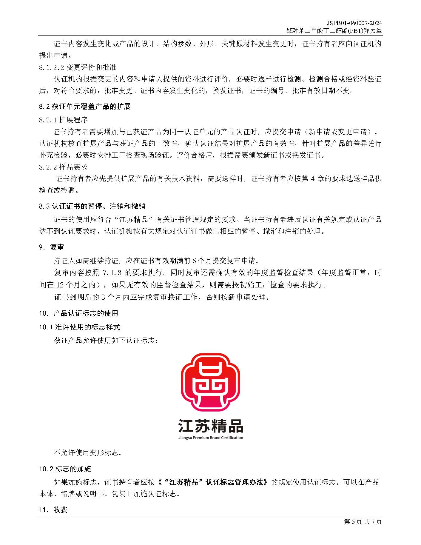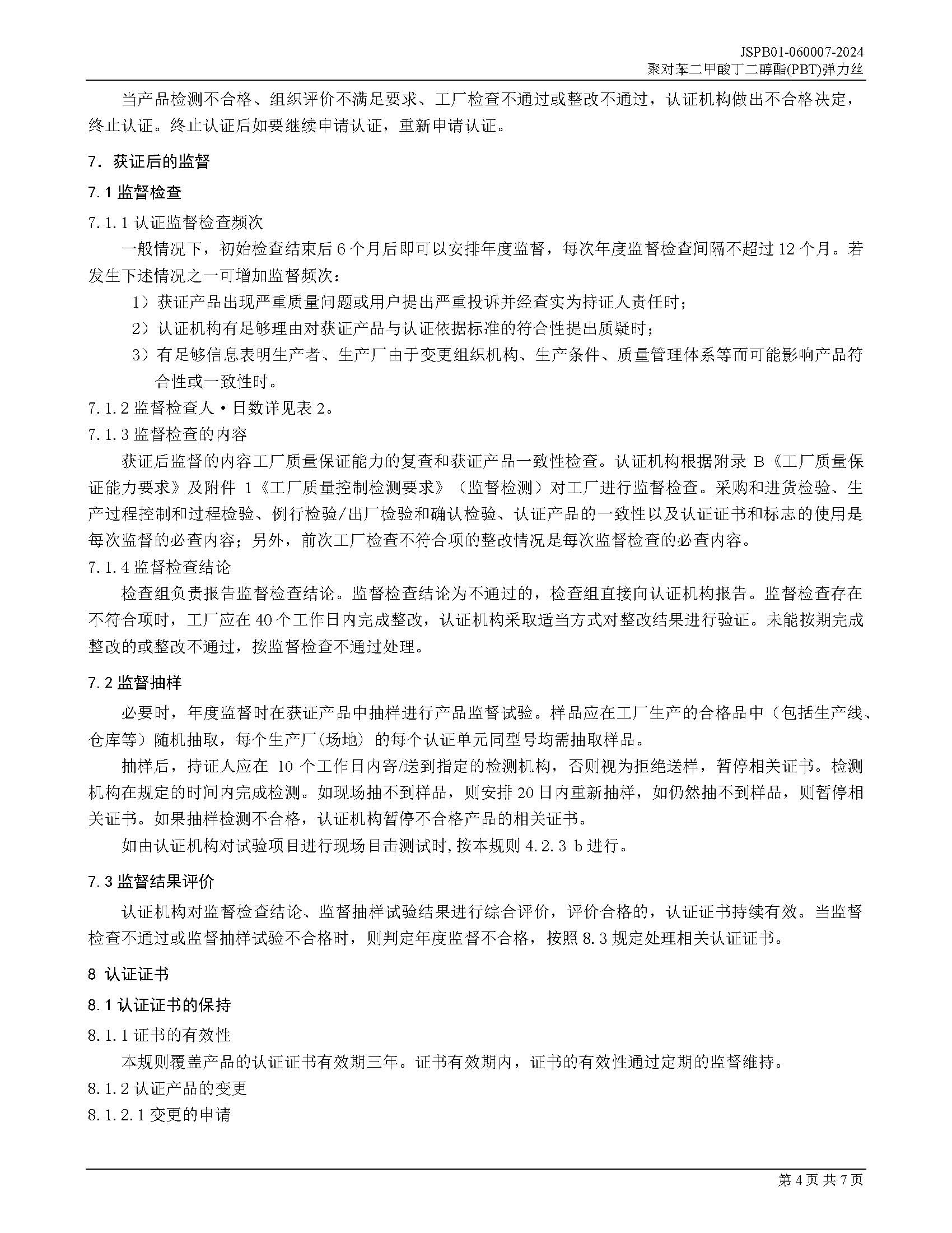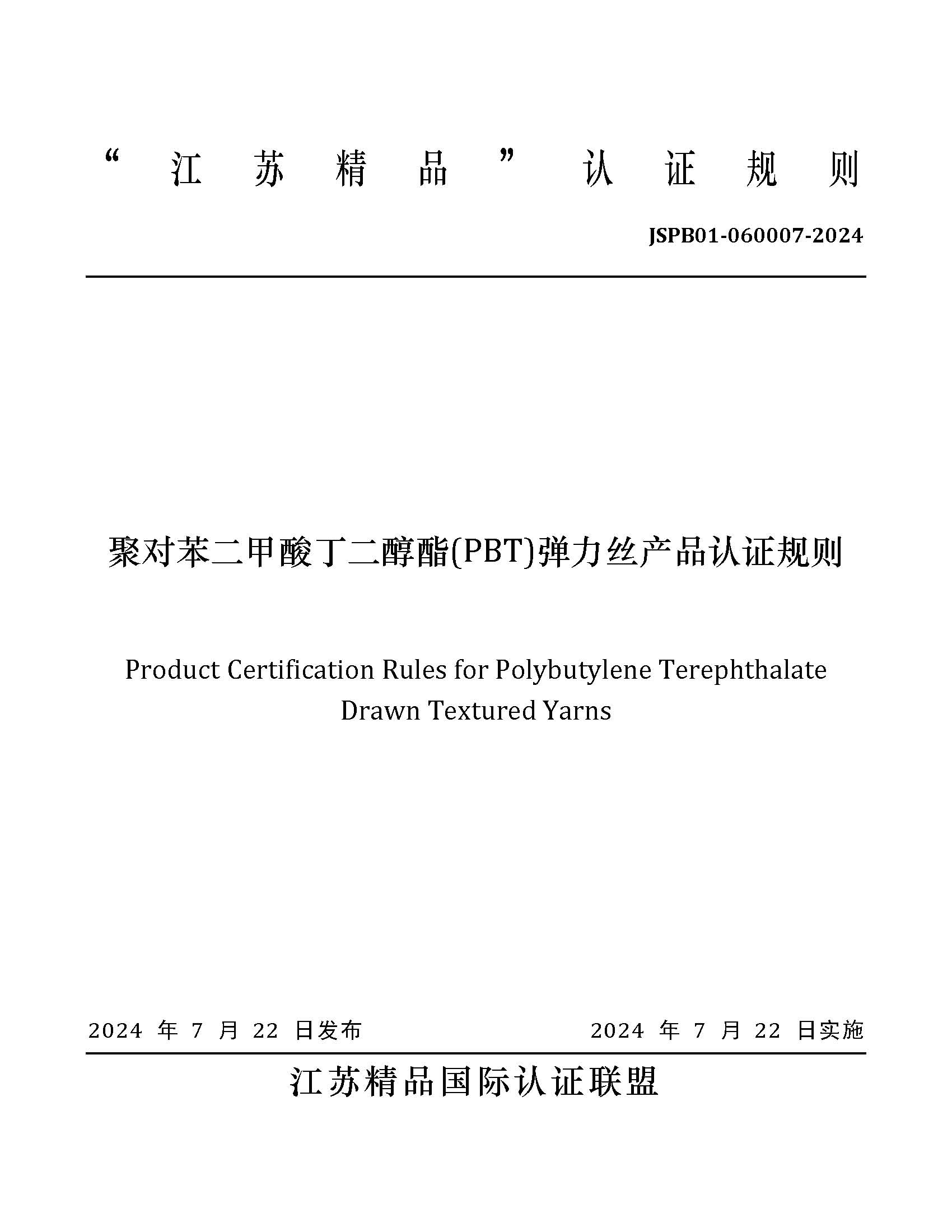 JSPB01-060007-2024聚对苯二甲酸丁二醇酯PBT弹力丝产品认证规则