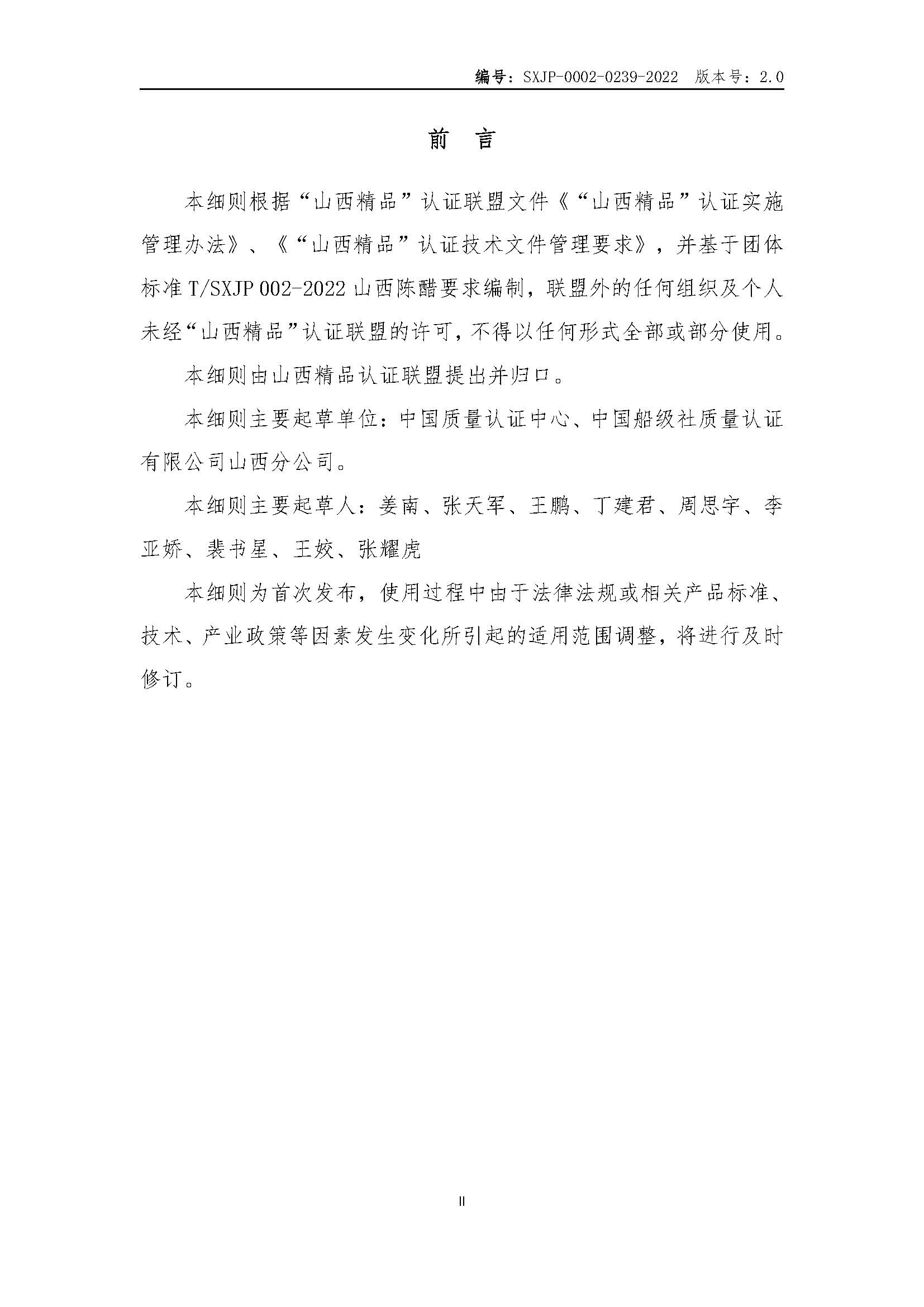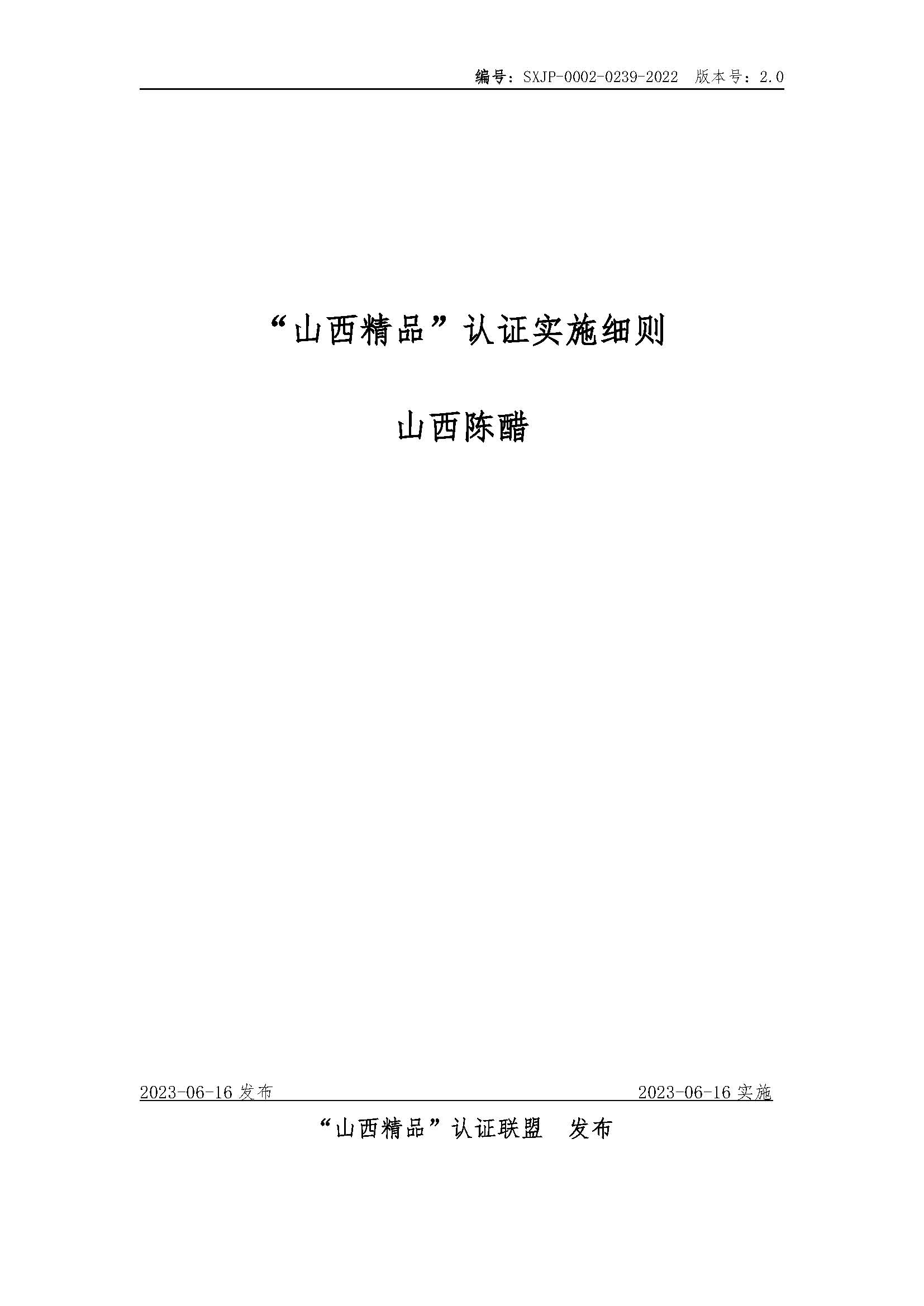 “山西精品”认证实施细则山西陈醋