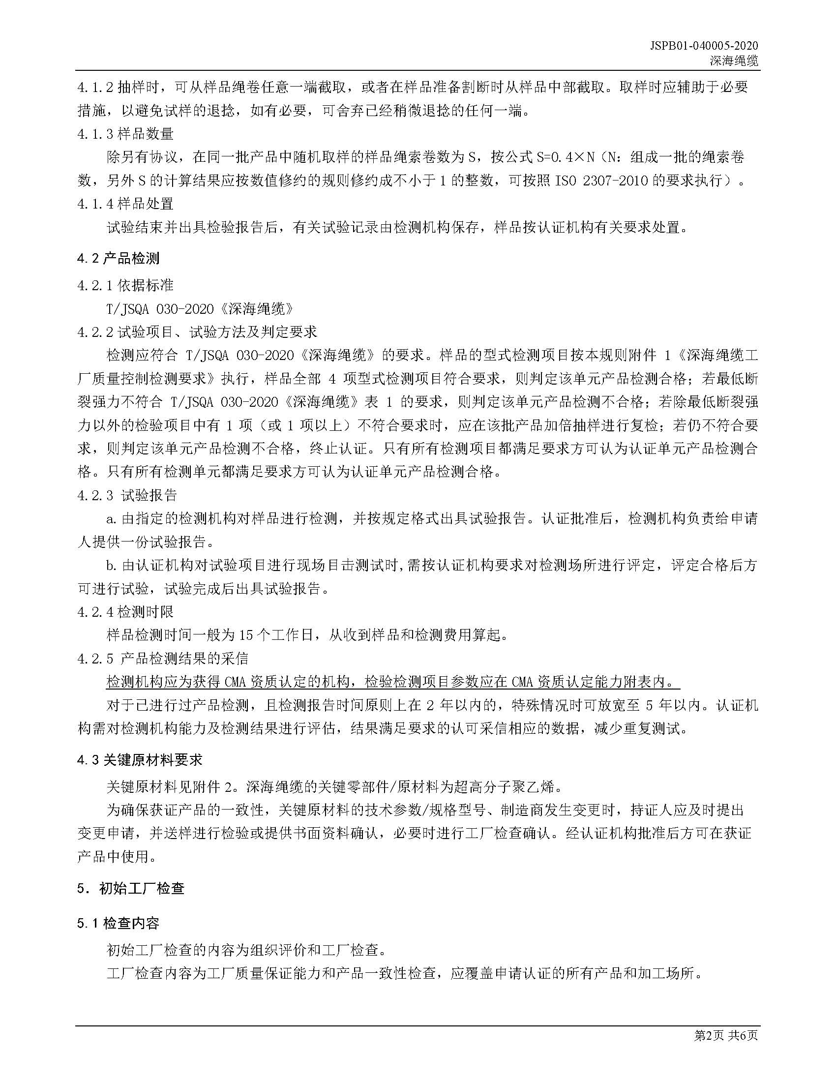 JSPB01-040005-2020深海绳缆产品认证规则