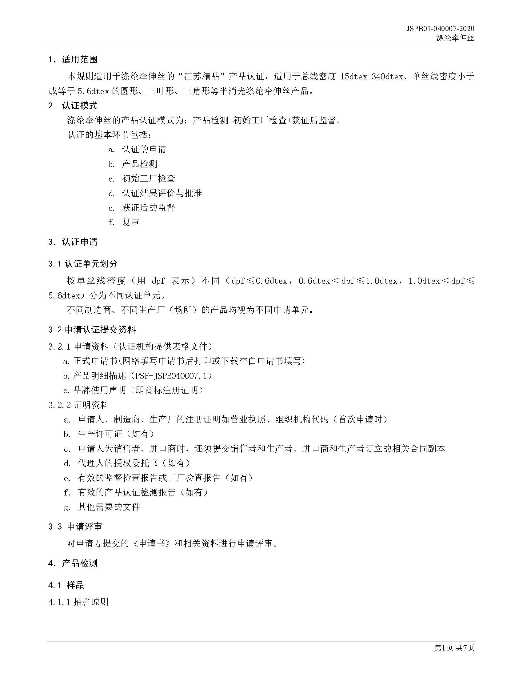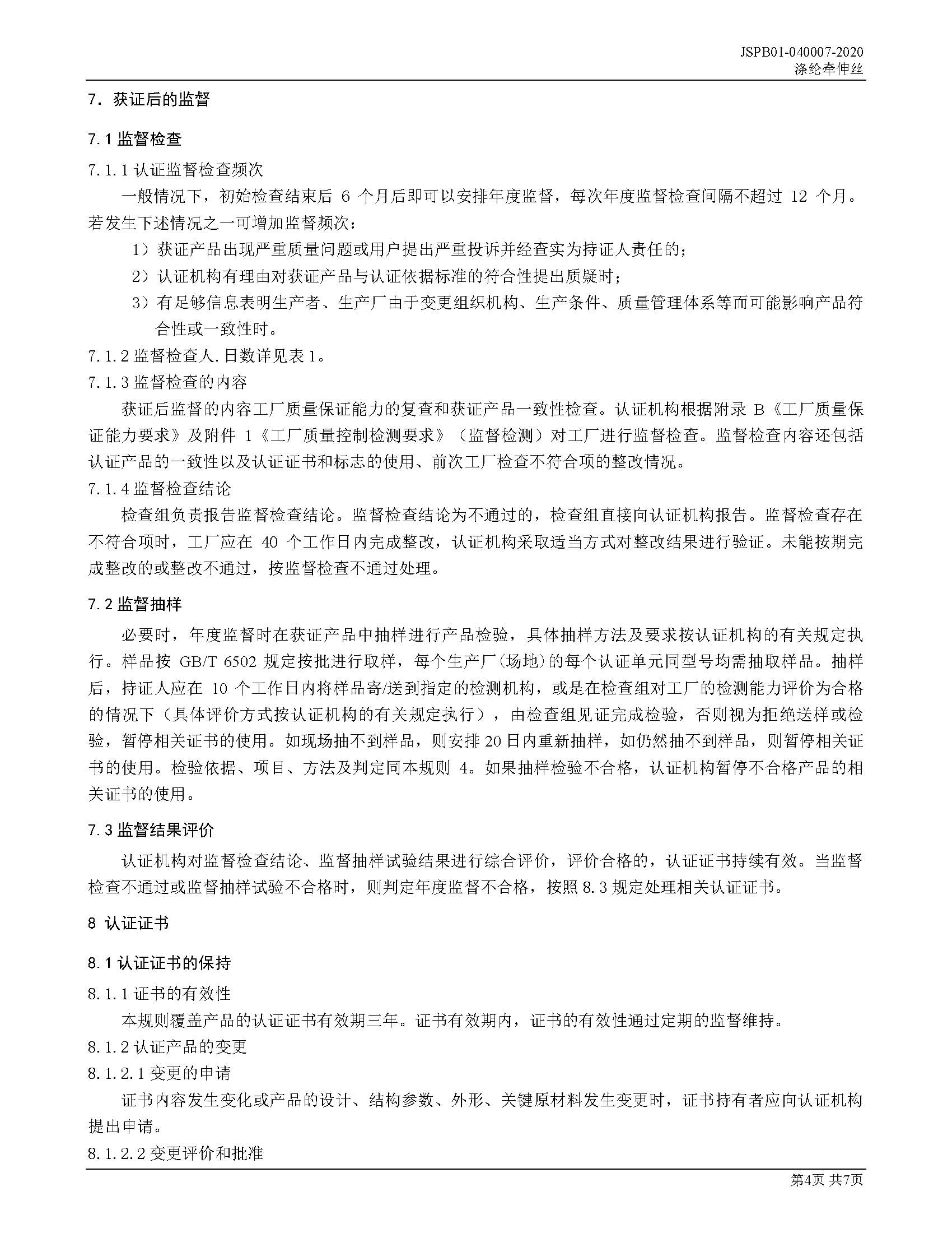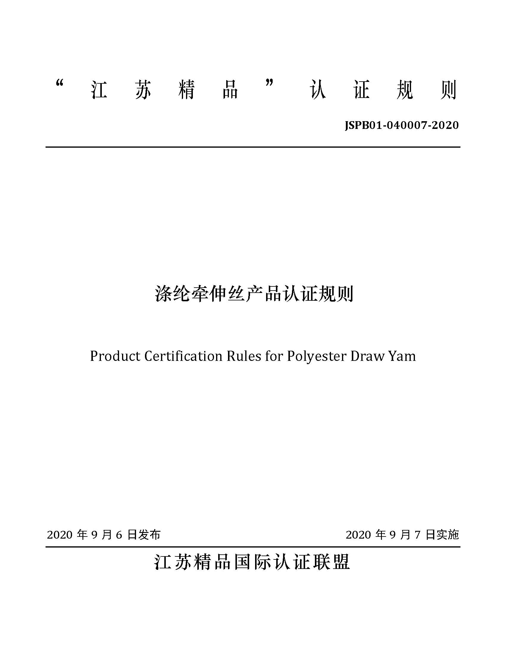 JSPB01-040007-2020涤纶牵伸丝产品认证规则