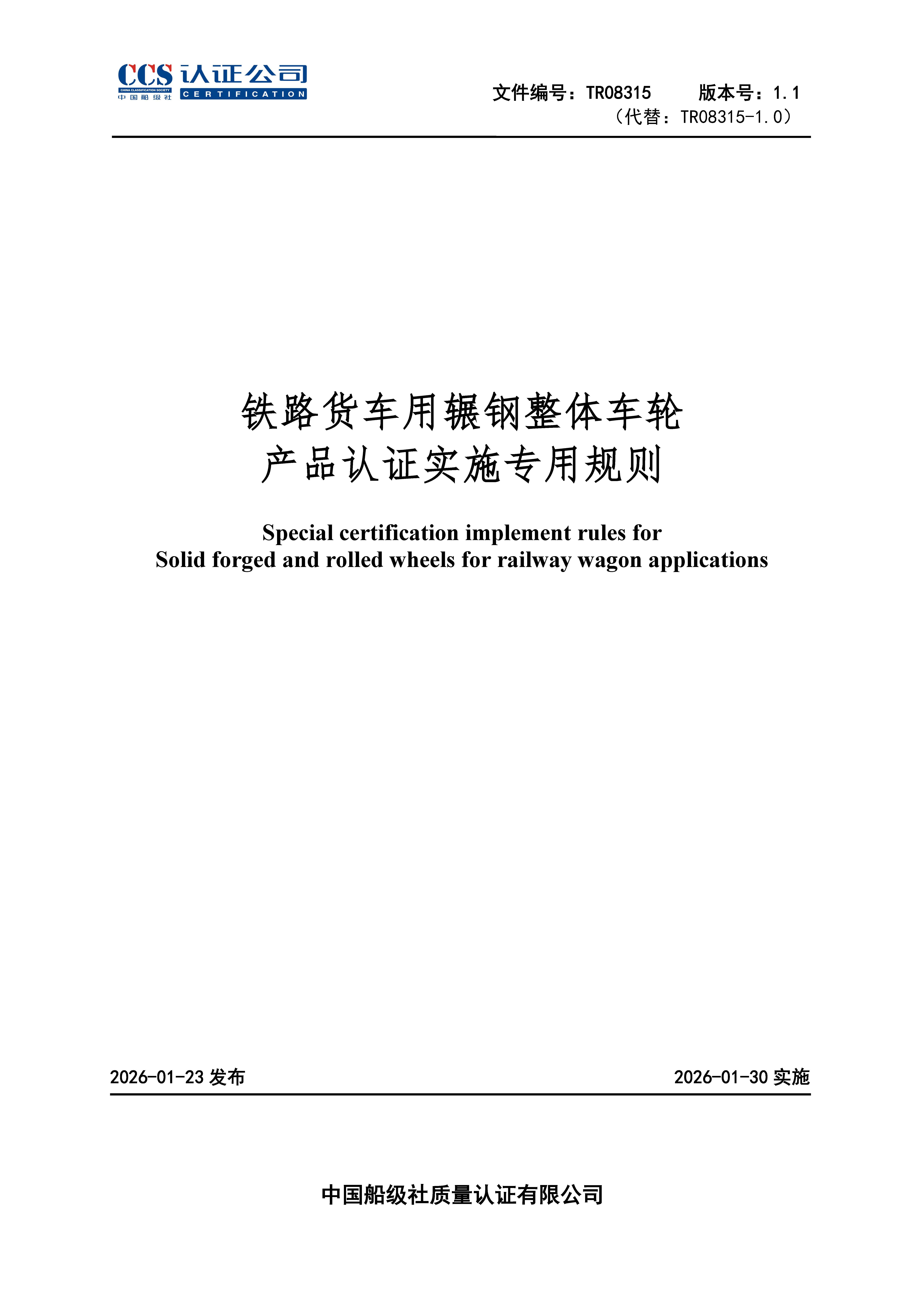 TR08315-1.1铁路货车用辗钢整体车轮产品认证实施专用规则