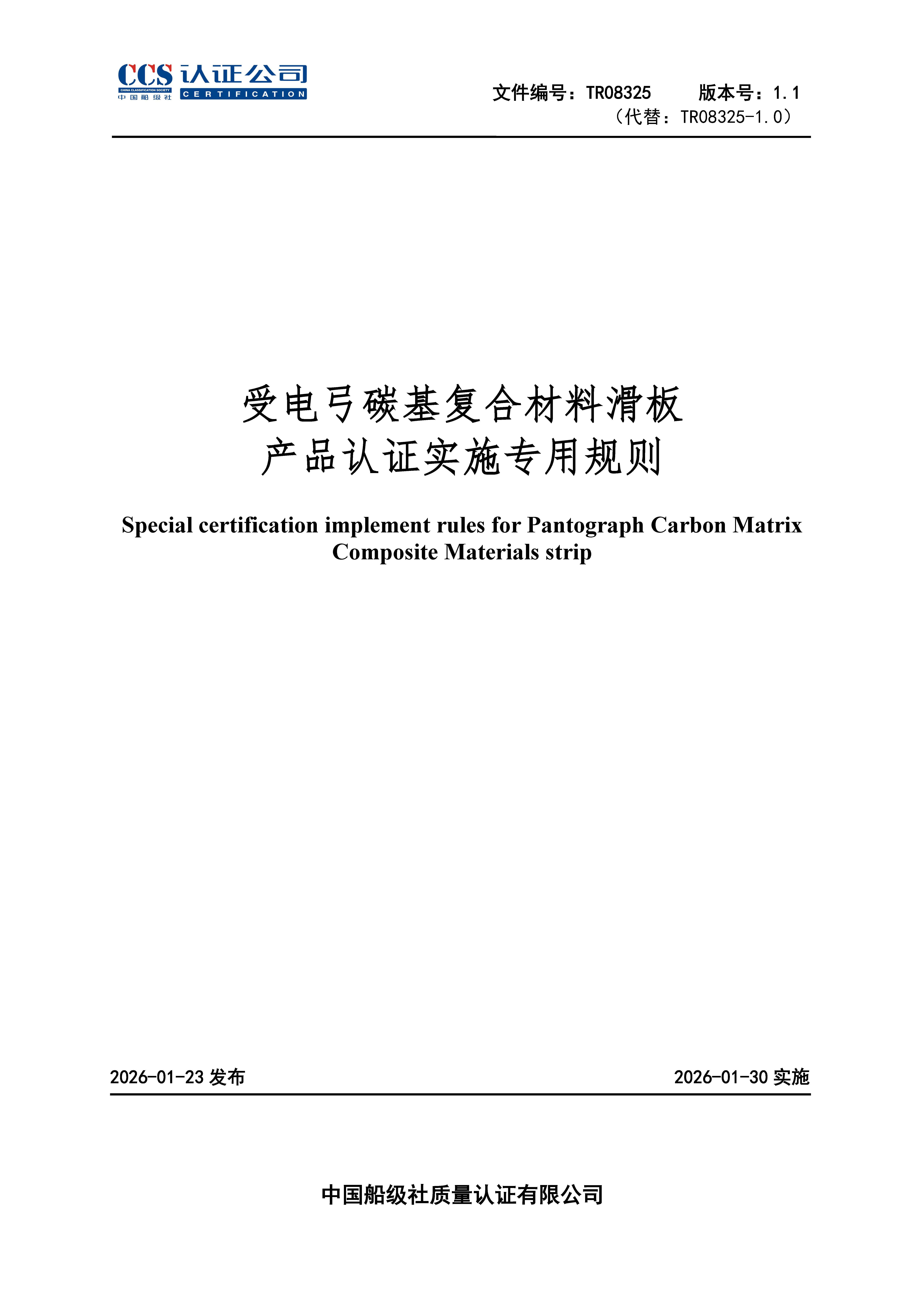 TR08325-1.1-受电弓碳基复合材料滑板产品认证实施专用规则