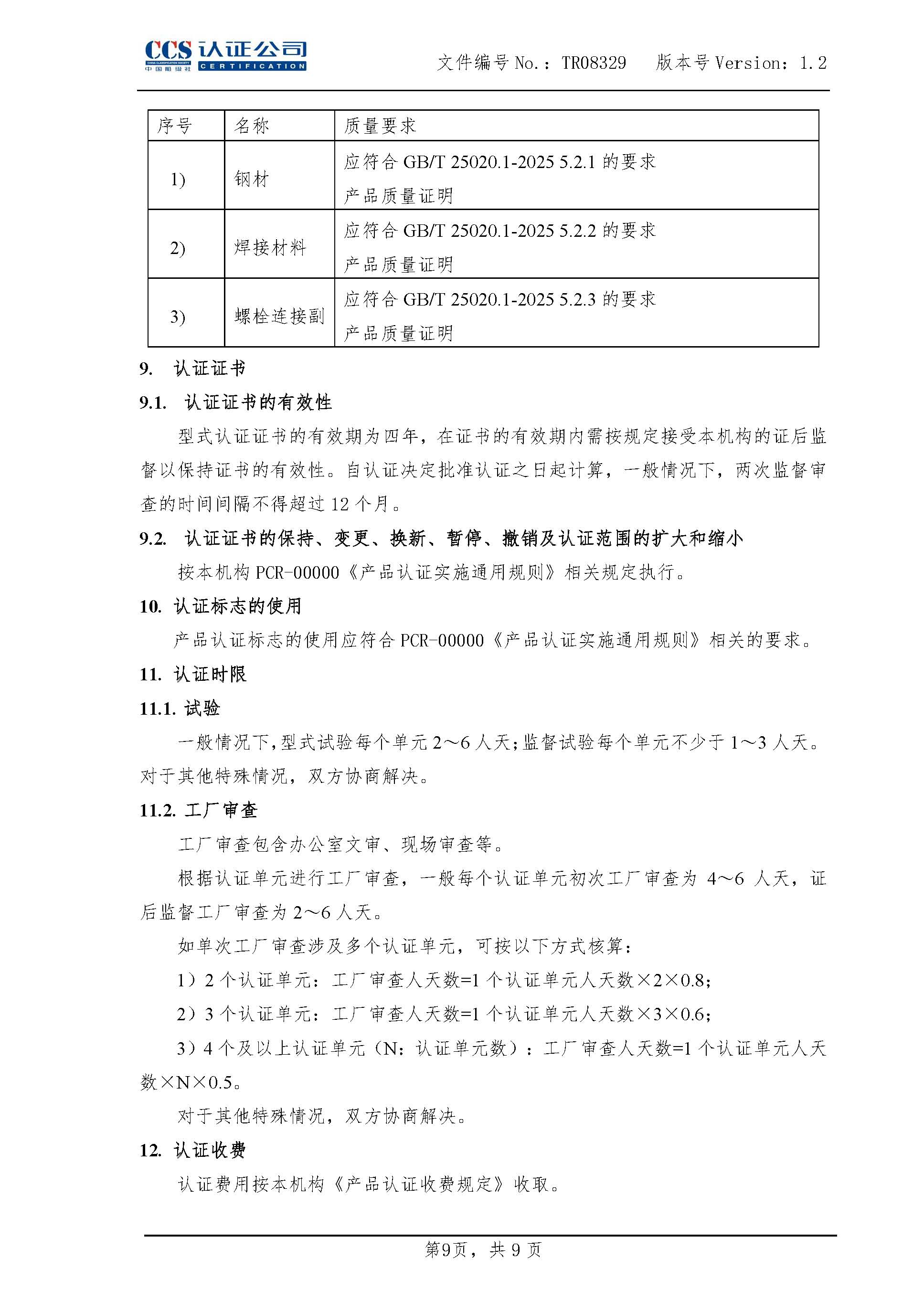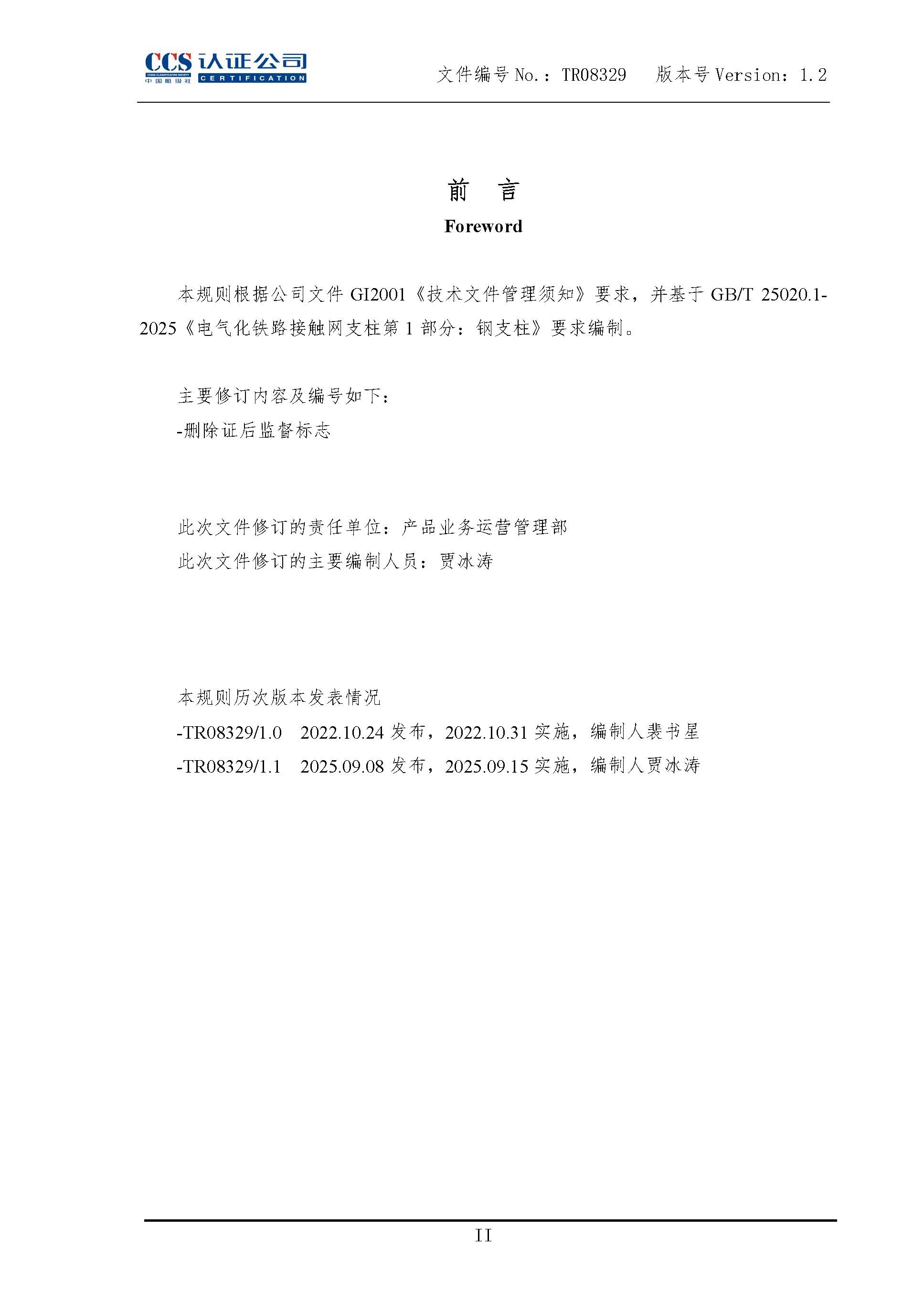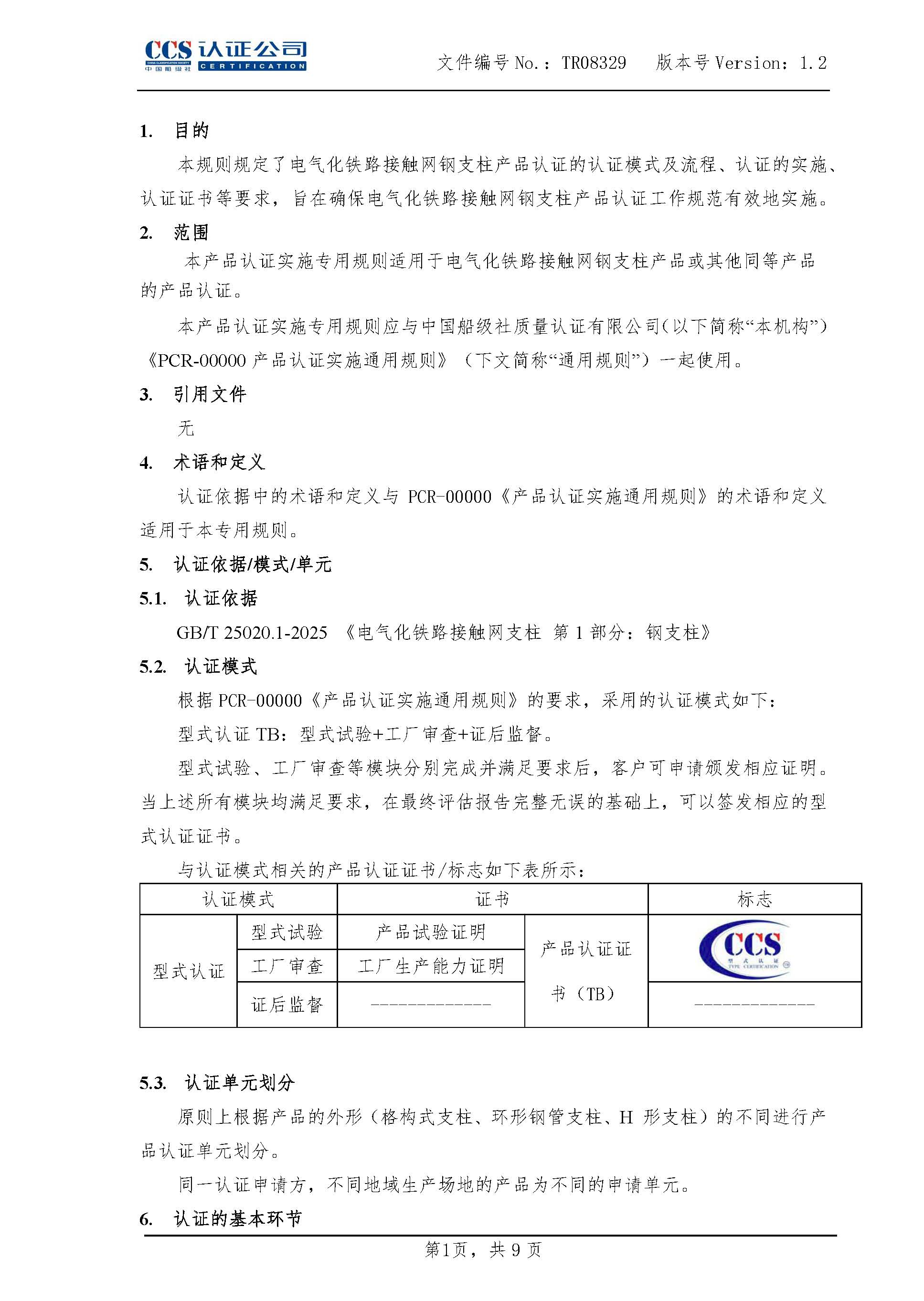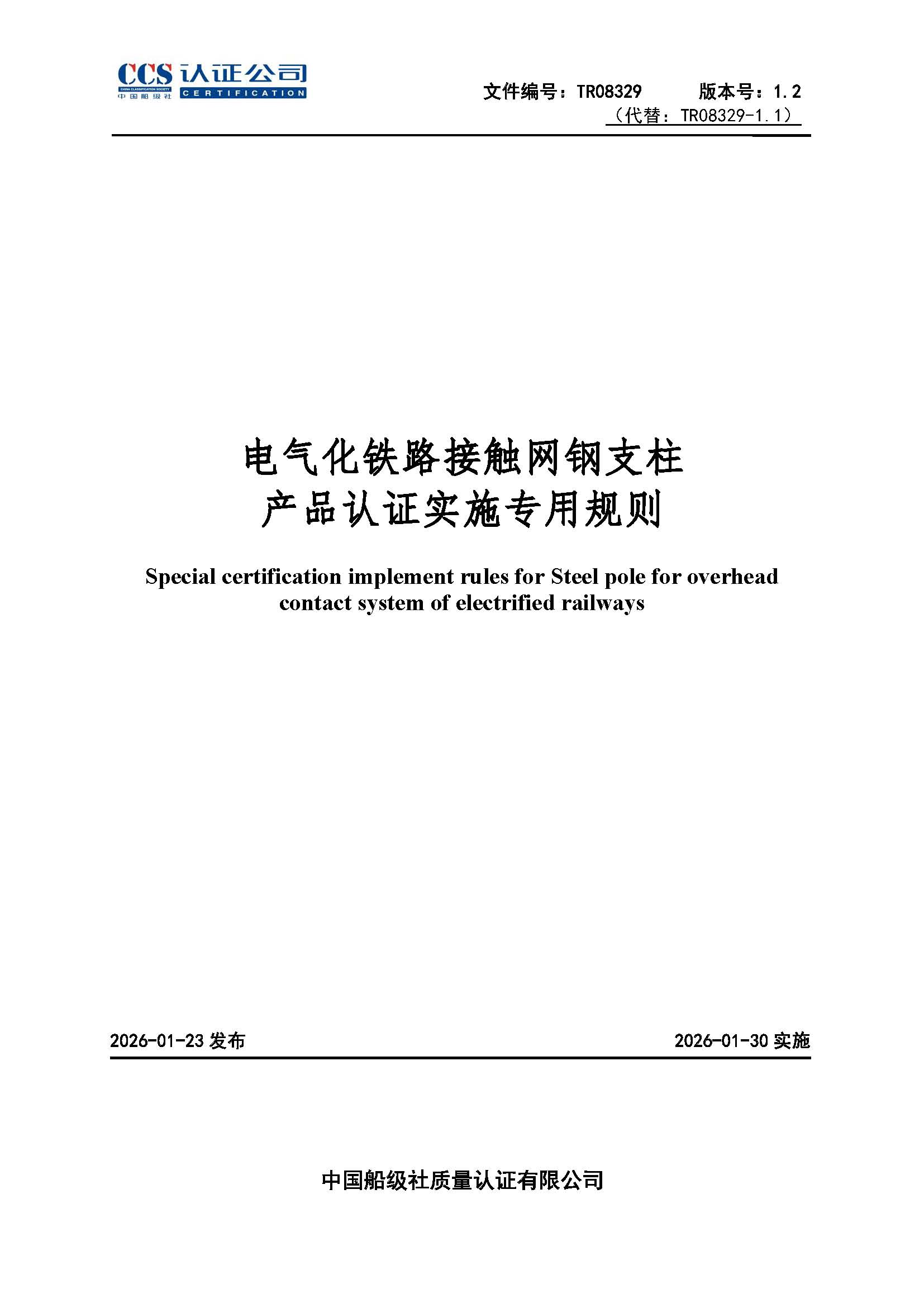 TR08329-1.2 电气化铁路接触网钢支柱产品认证实施专用规则
