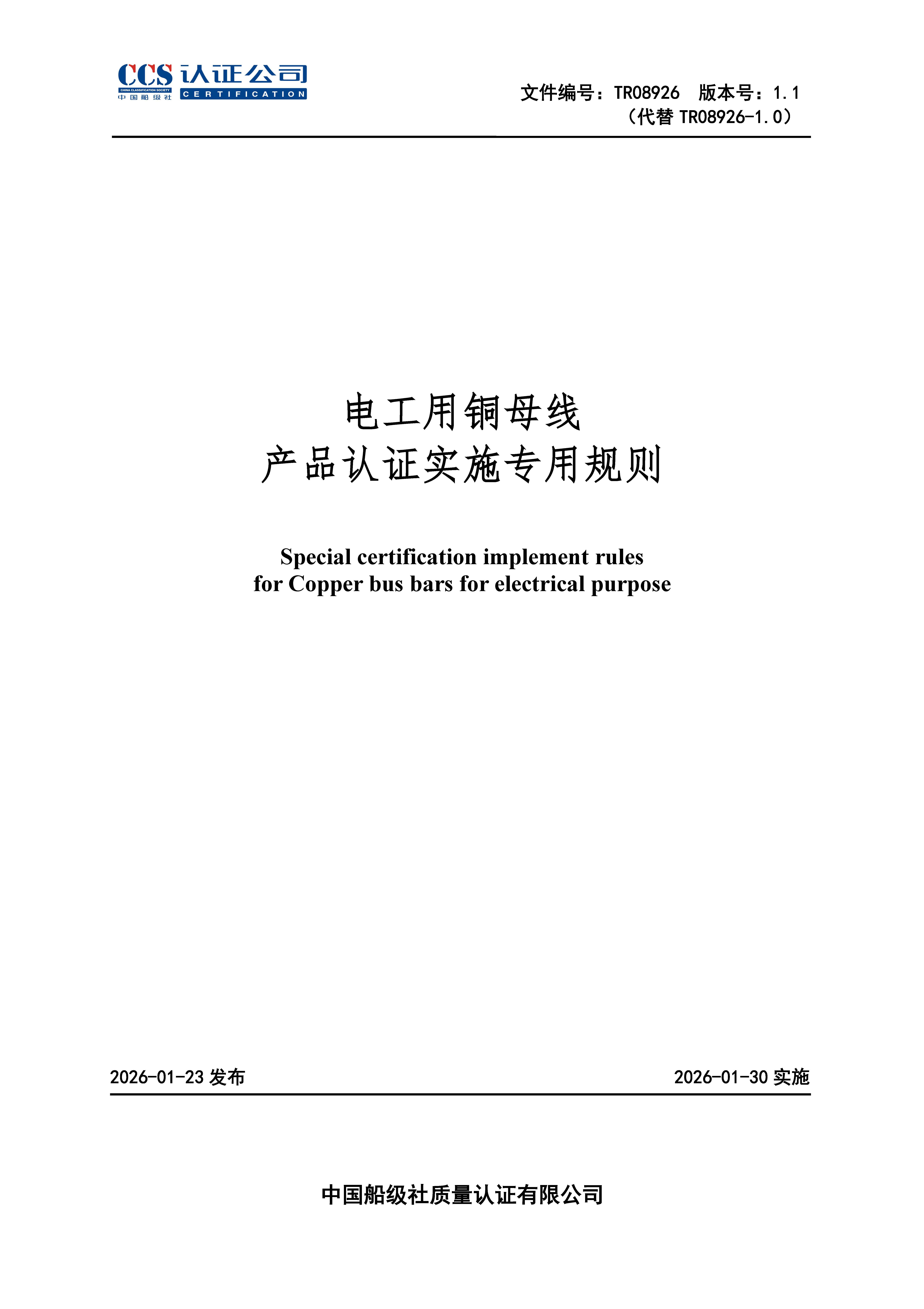 TR08926-1.1电工用铜母线产品认证实施专用规则