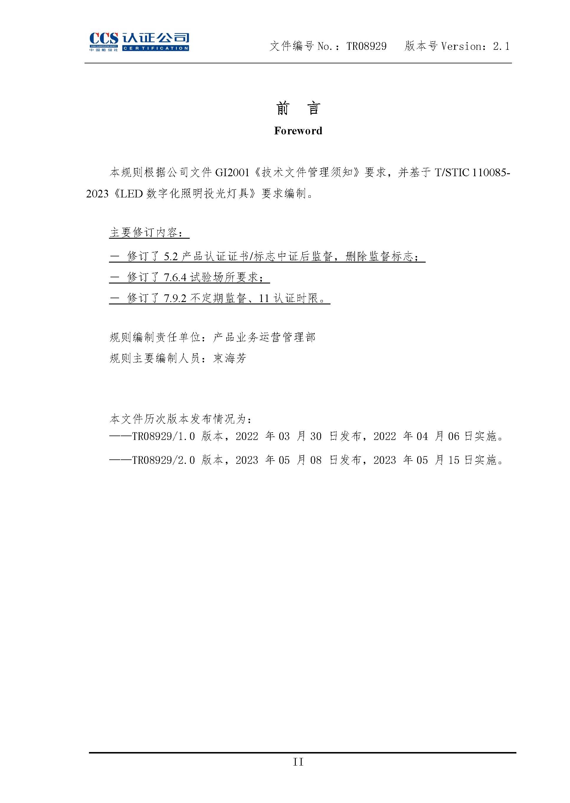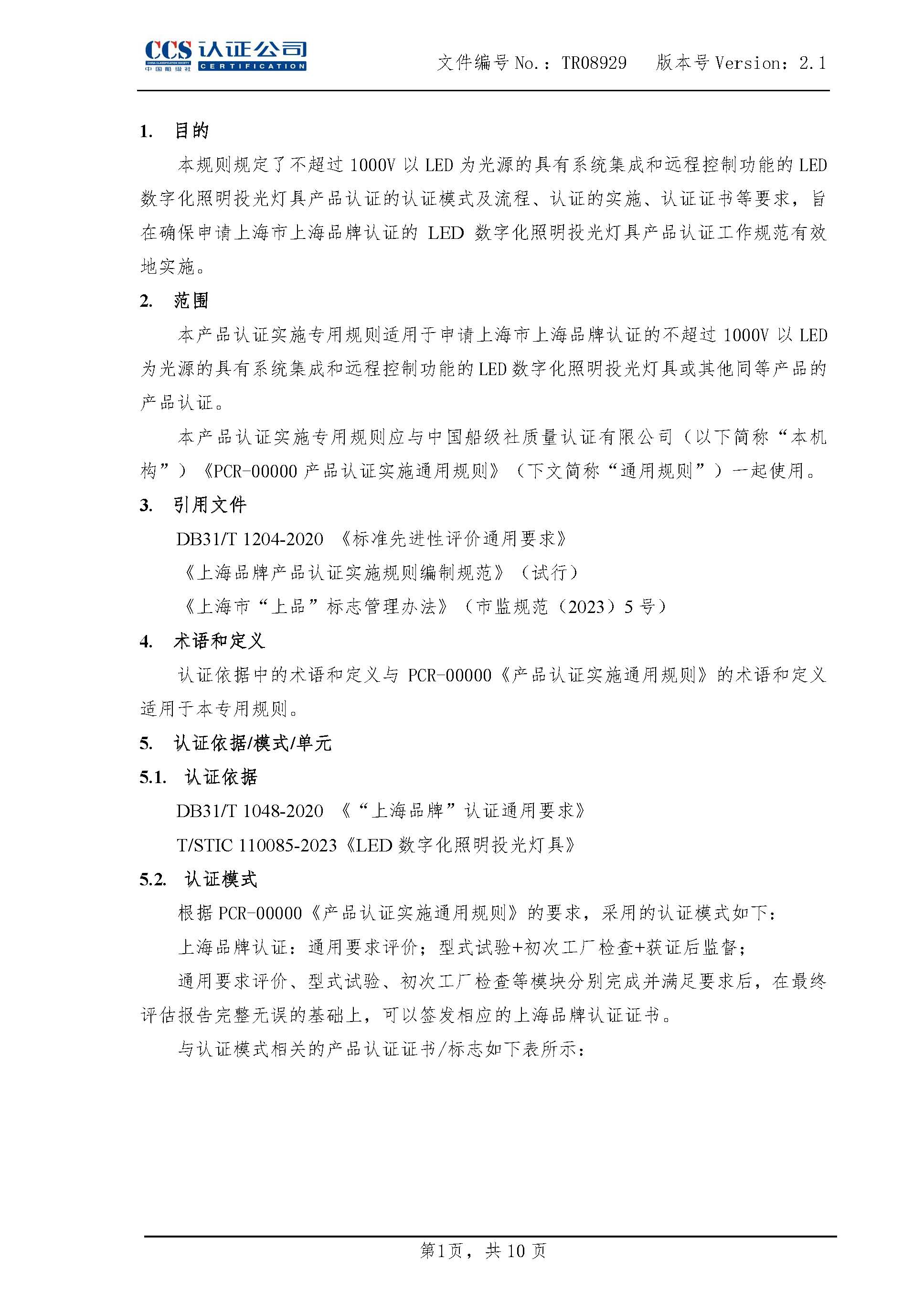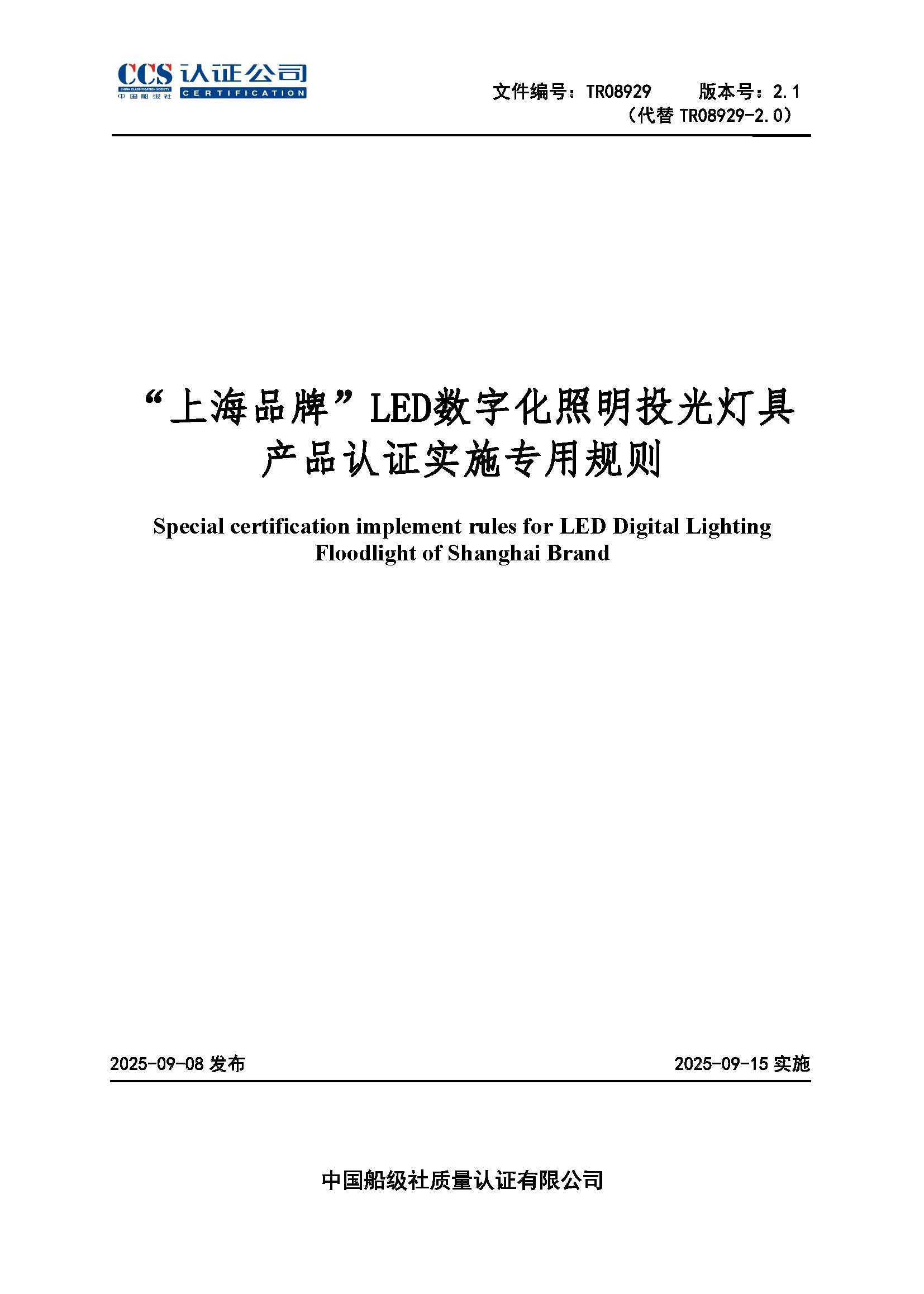 TR08929-2.2“上海品牌”LED数字化照明投光灯具产品认证实施专用规则