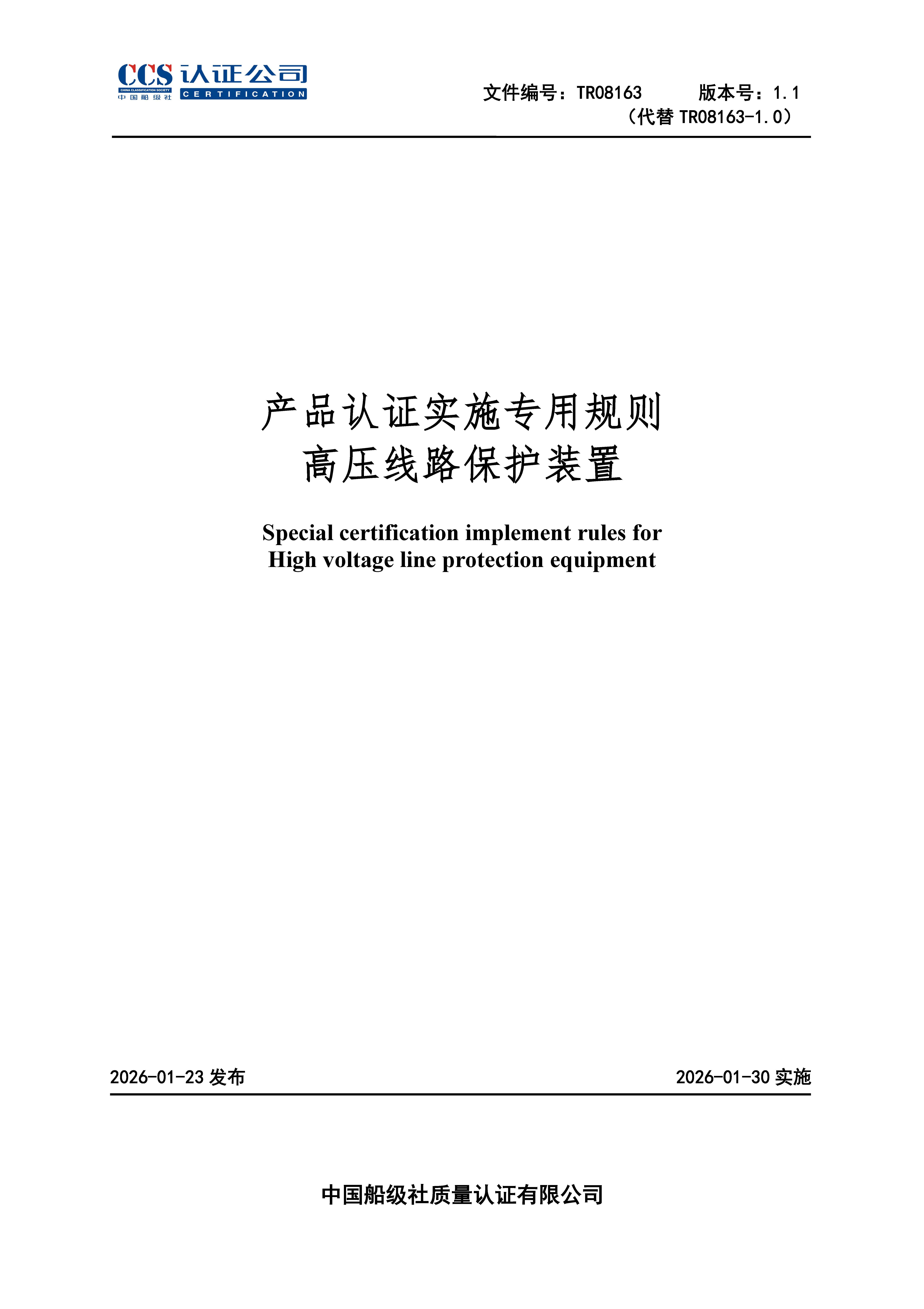 TR08163-1.1-产品认证实施专用规则高压线路保护装置