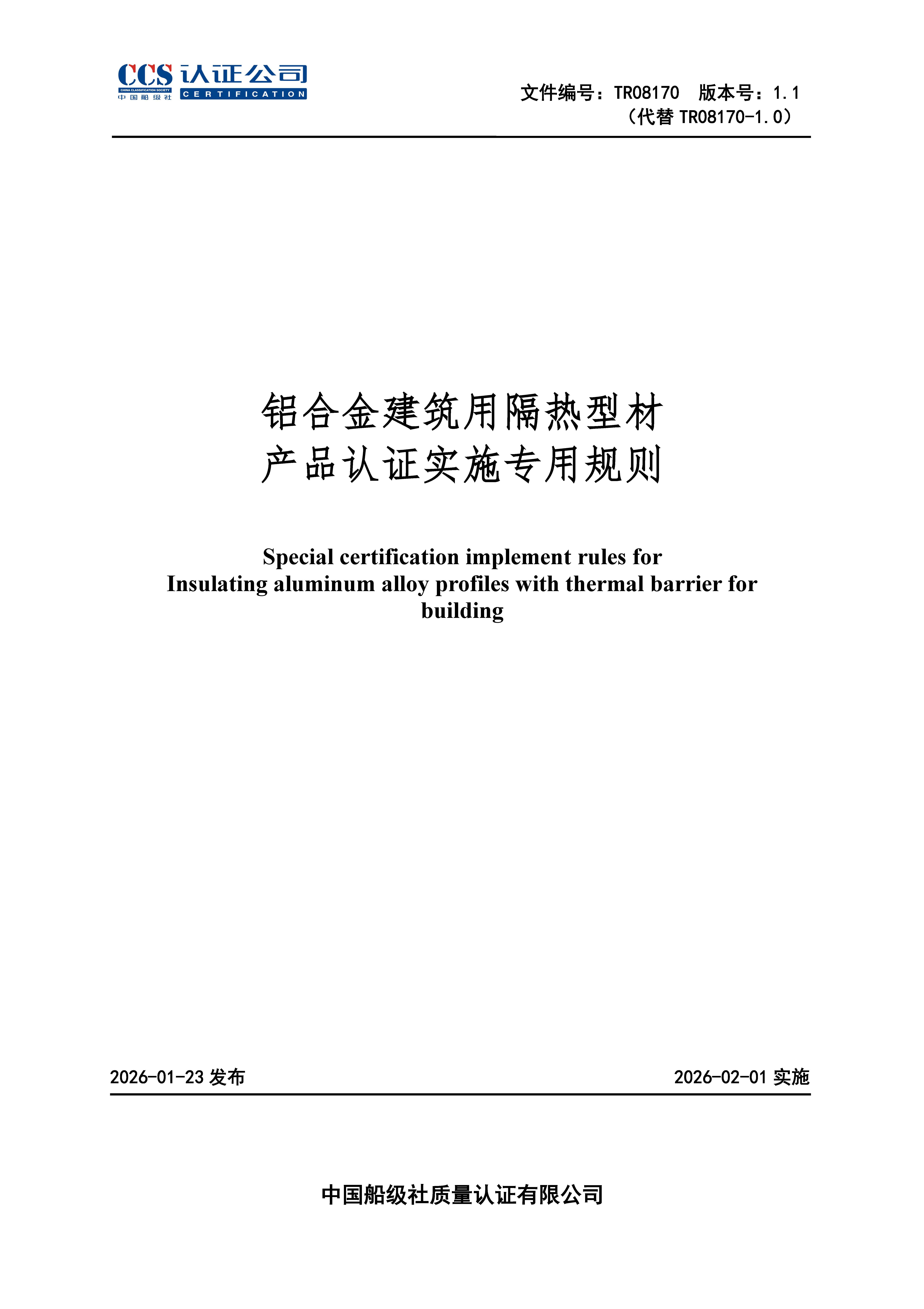 TR08170-1.1-铝合金建筑用隔热型材产品认证实施专用规则