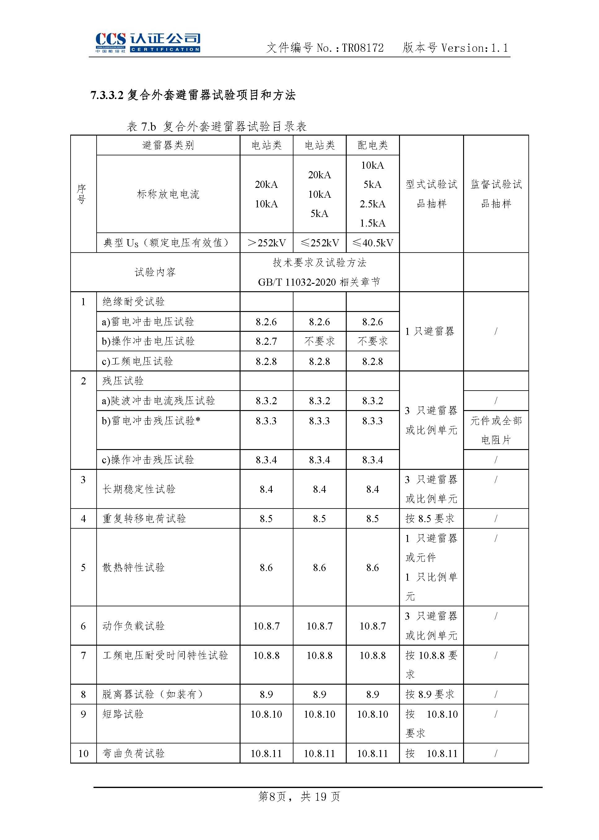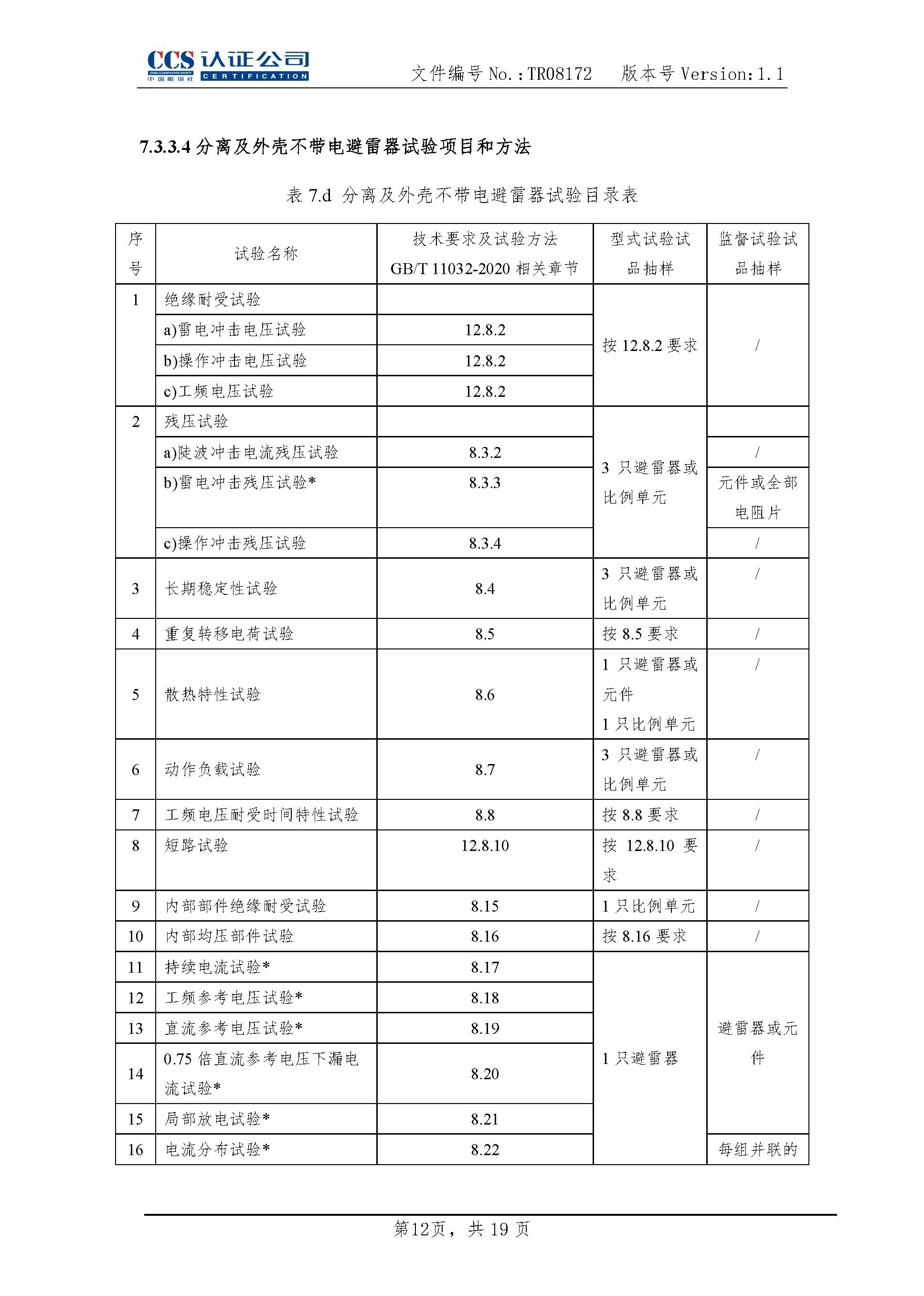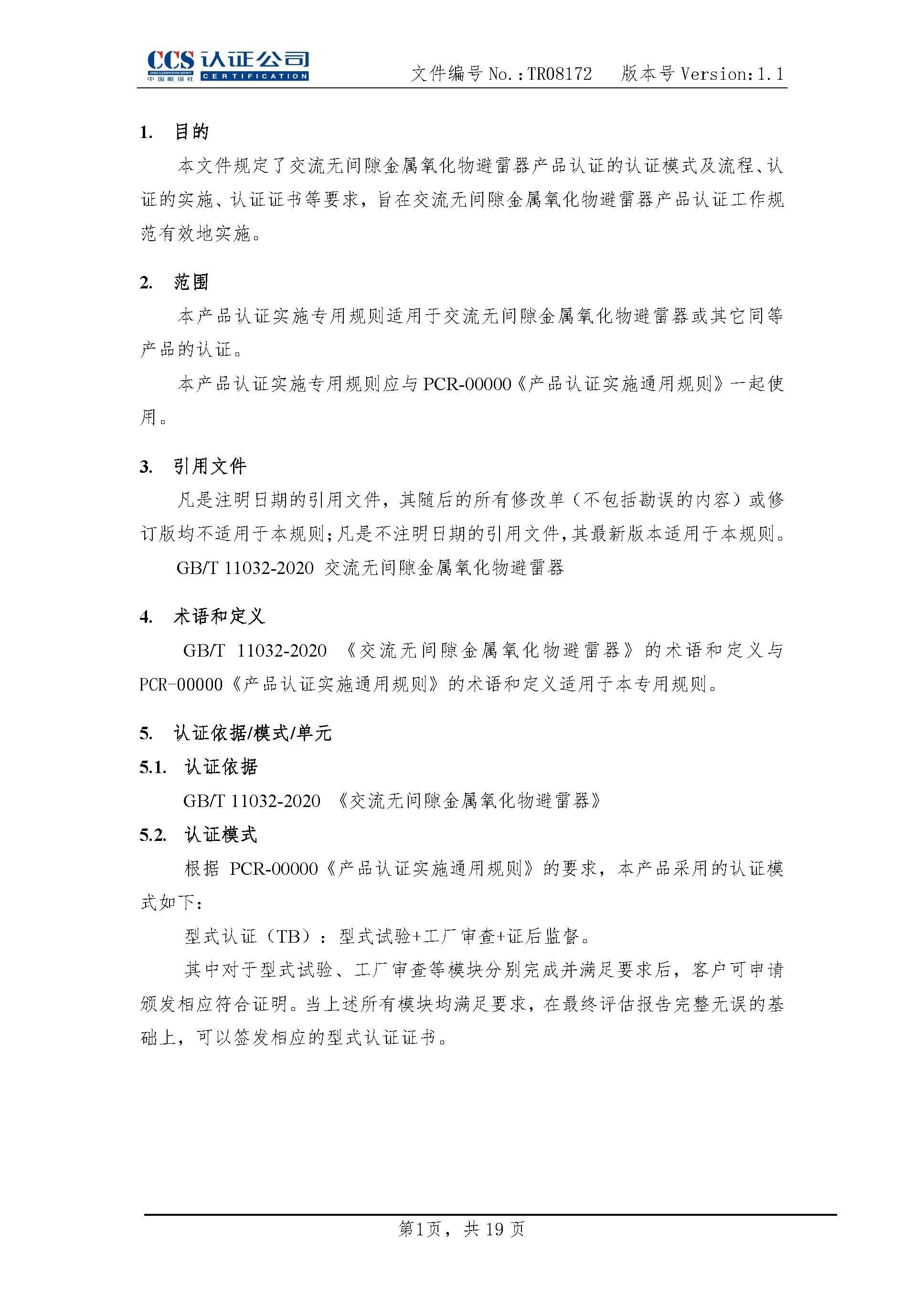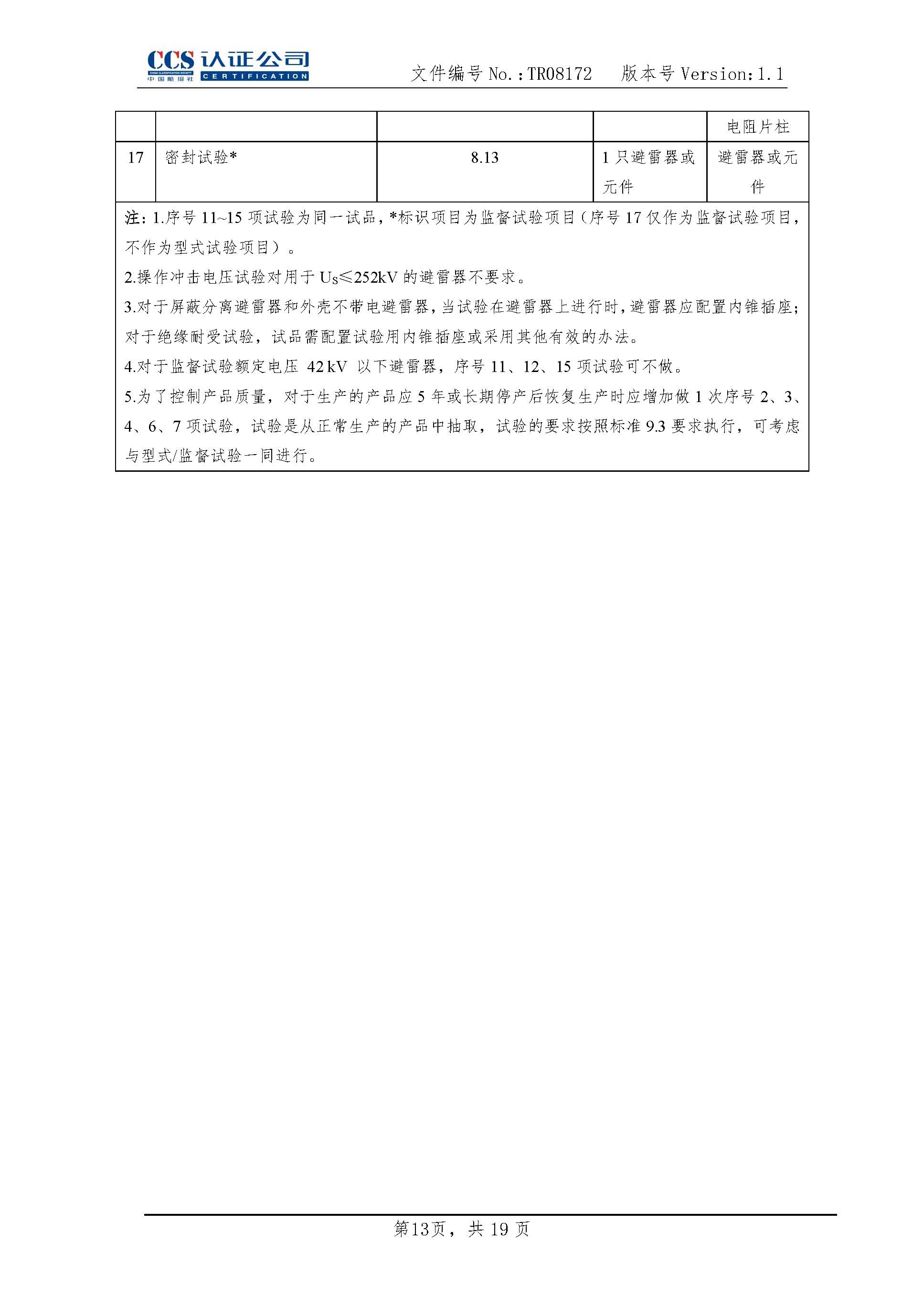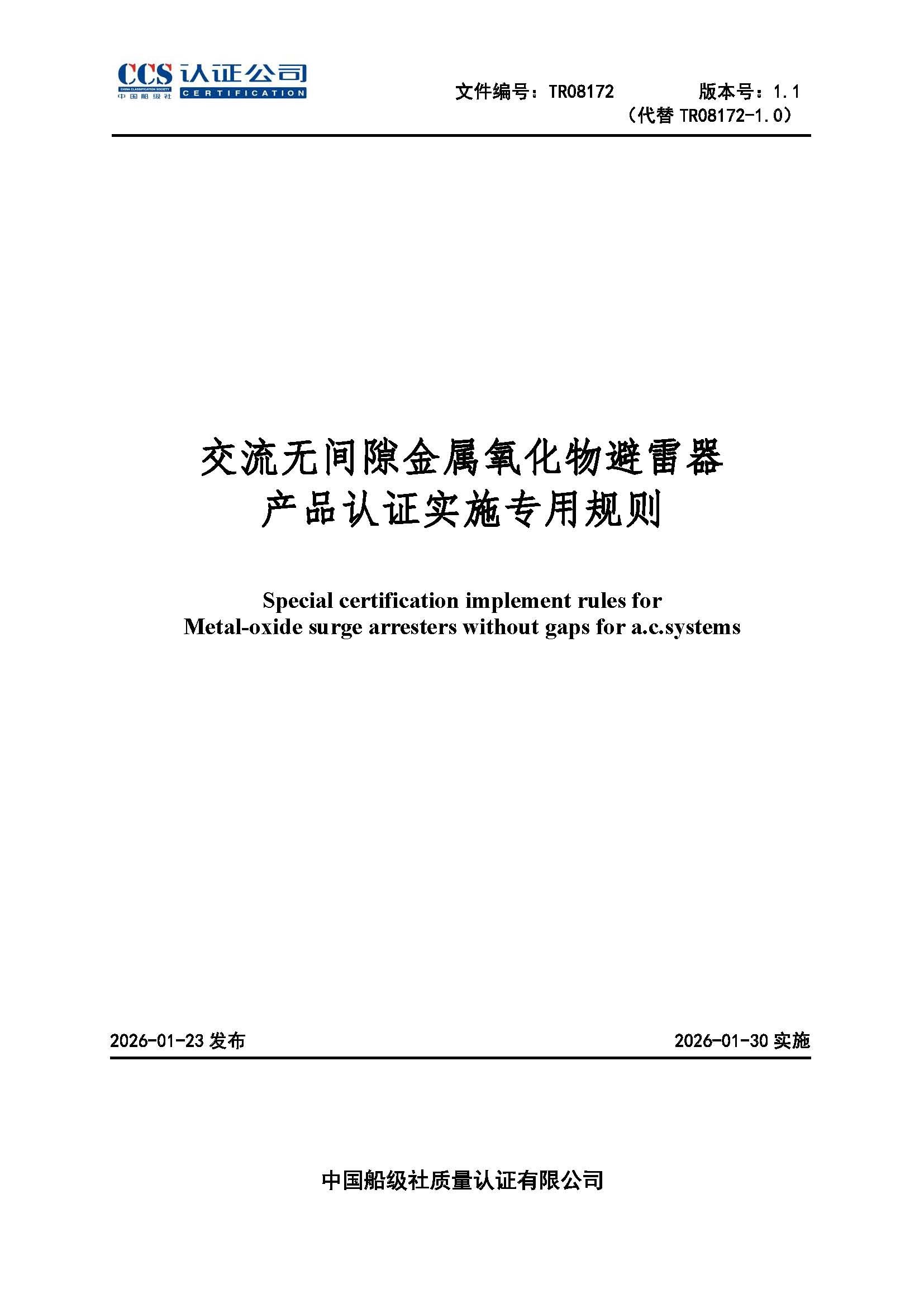 TR08172-1.1 交流无间隙金属氧化物避雷器产品认证实施专用规则