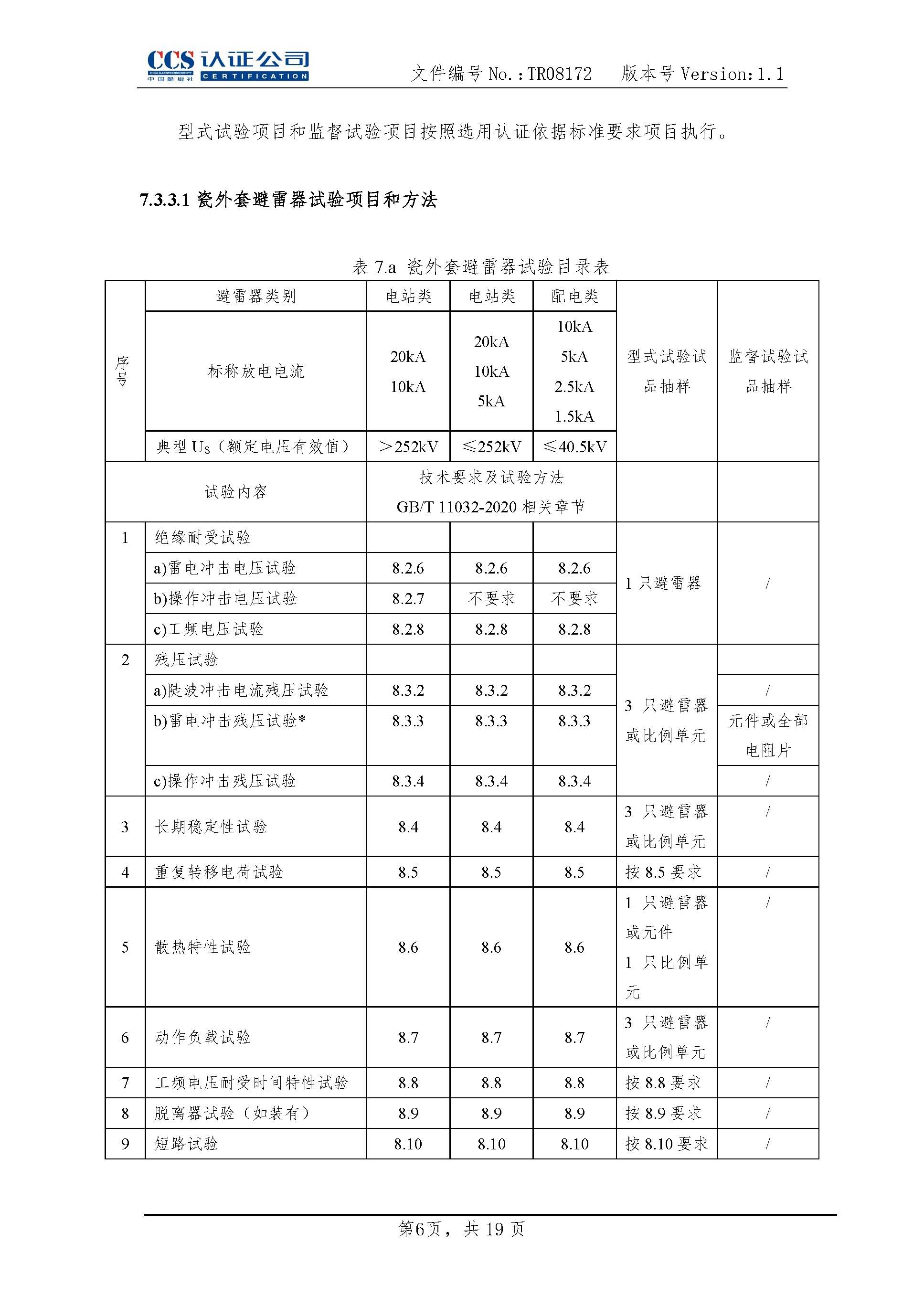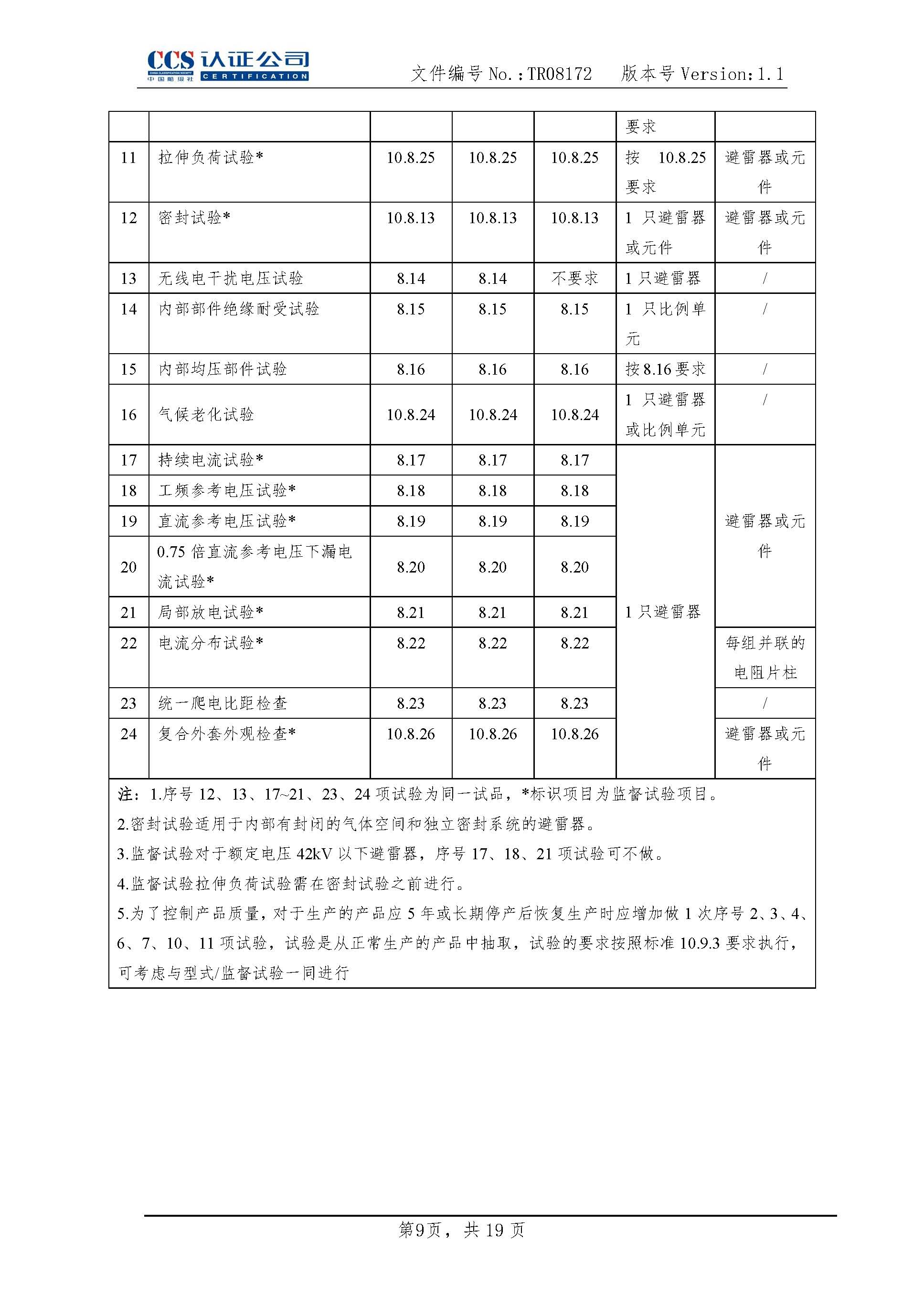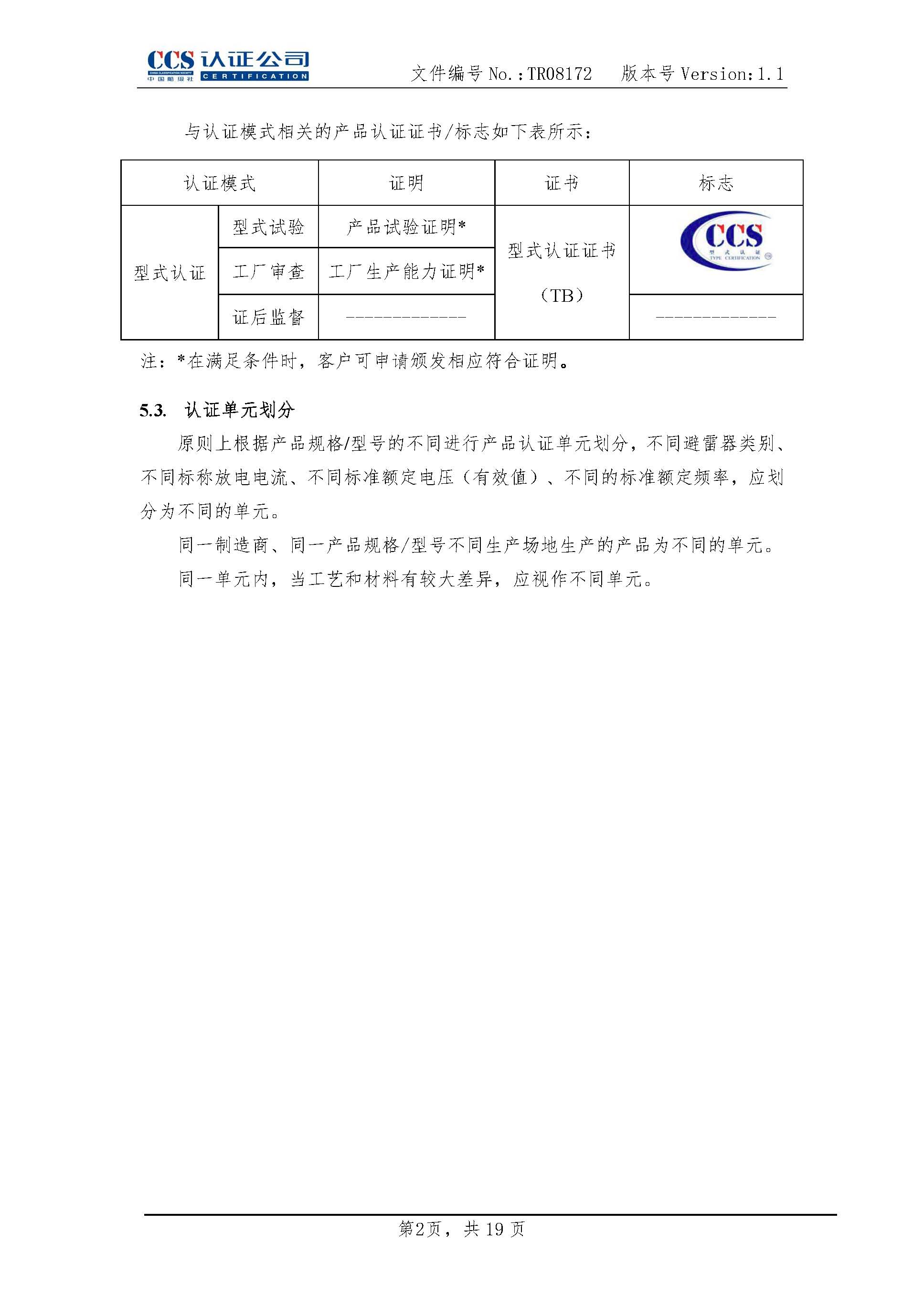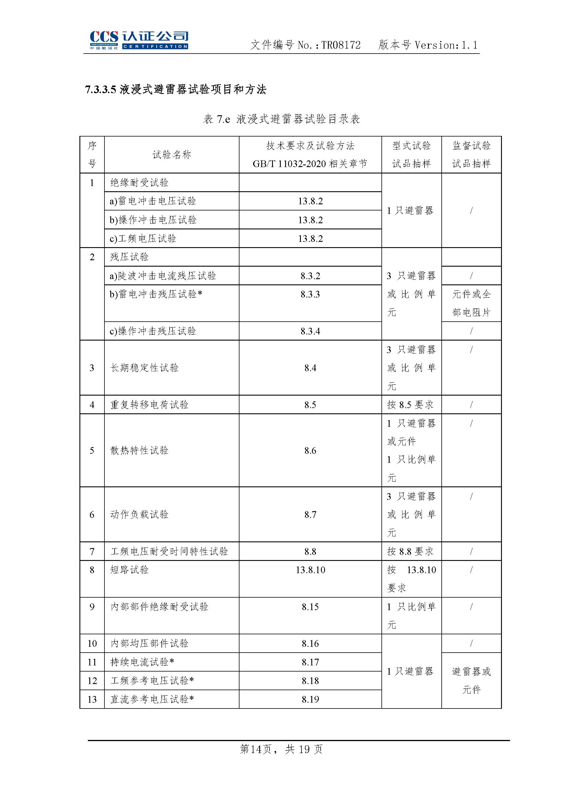 TR08172-1.1 交流无间隙金属氧化物避雷器产品认证实施专用规则