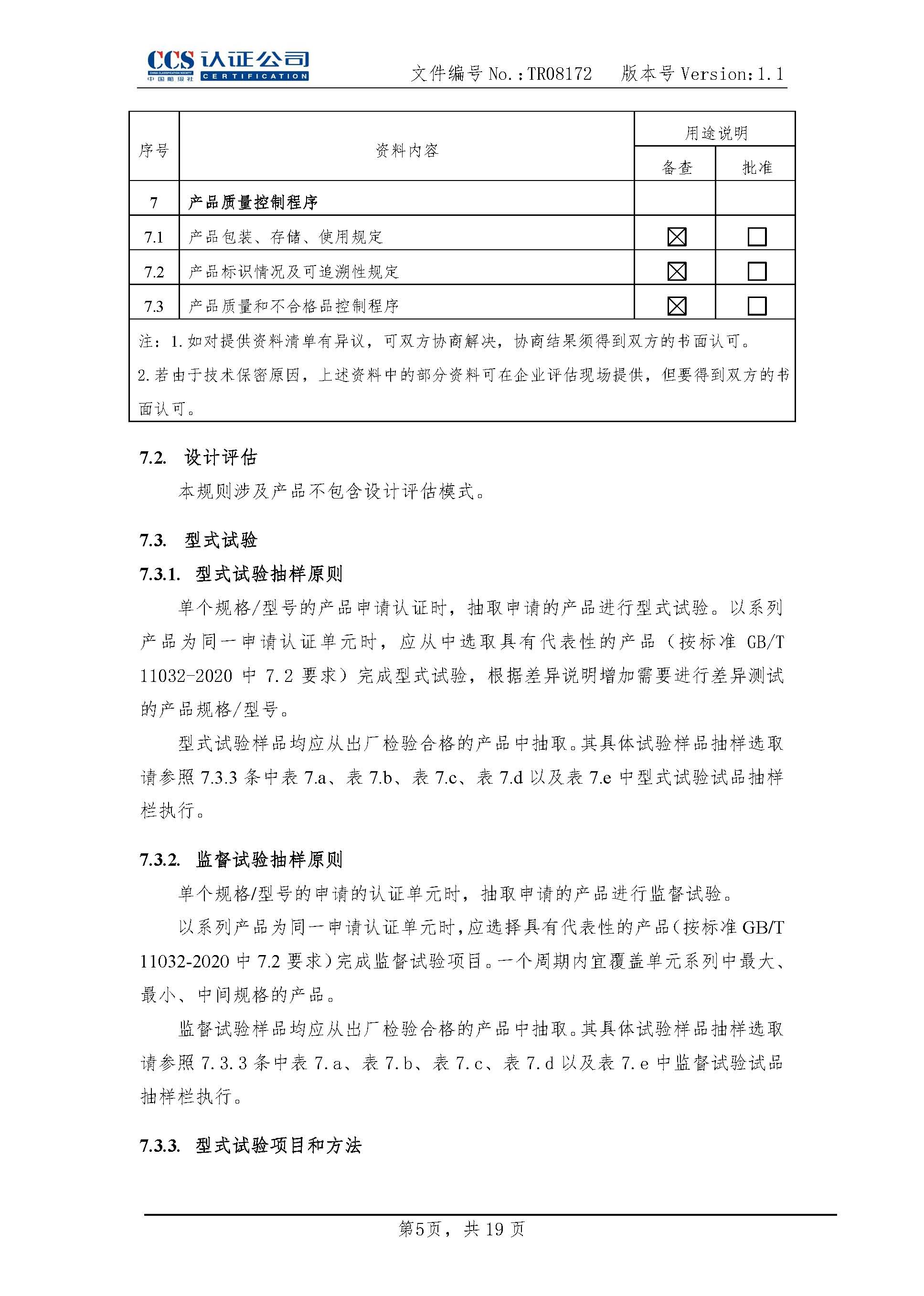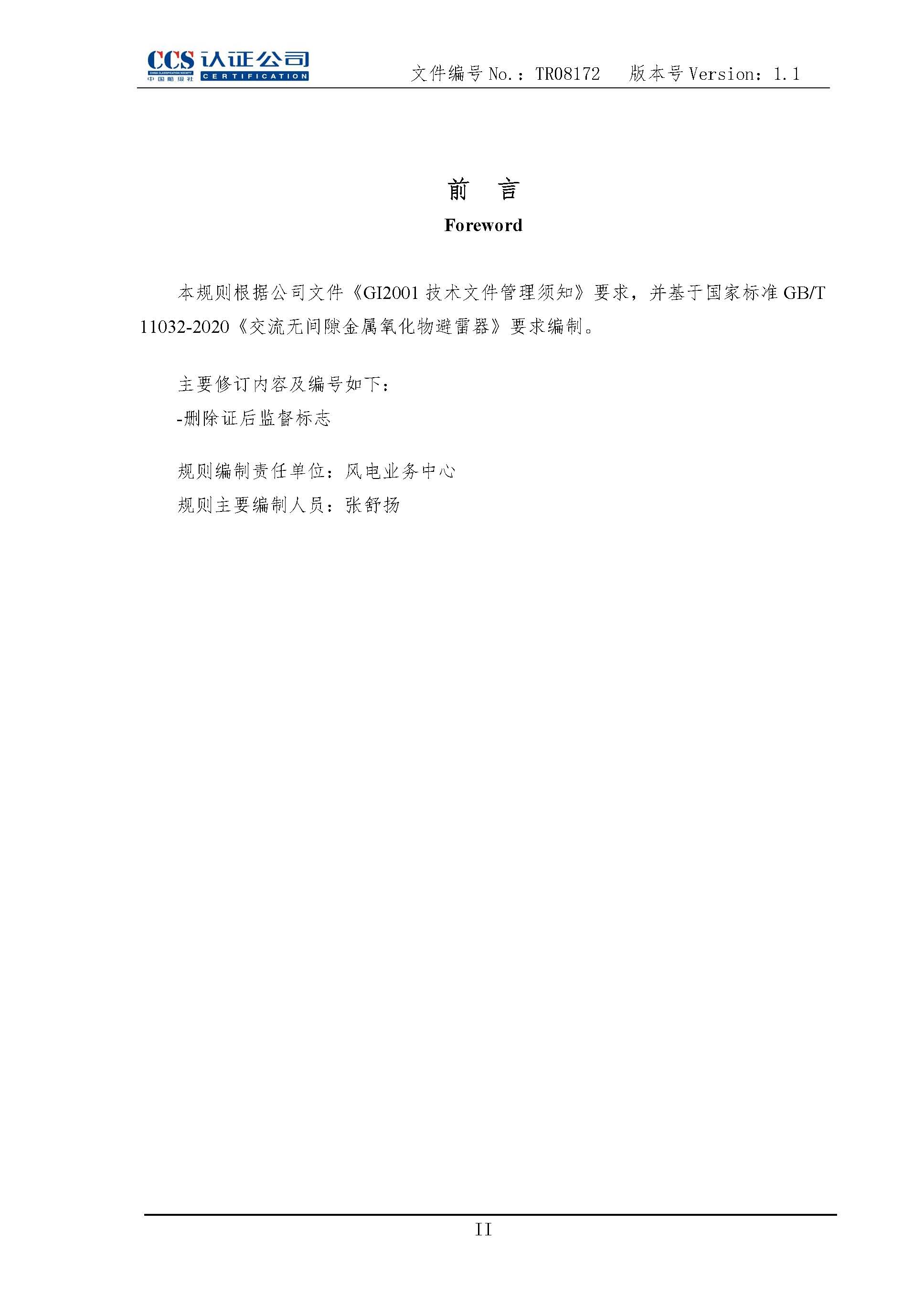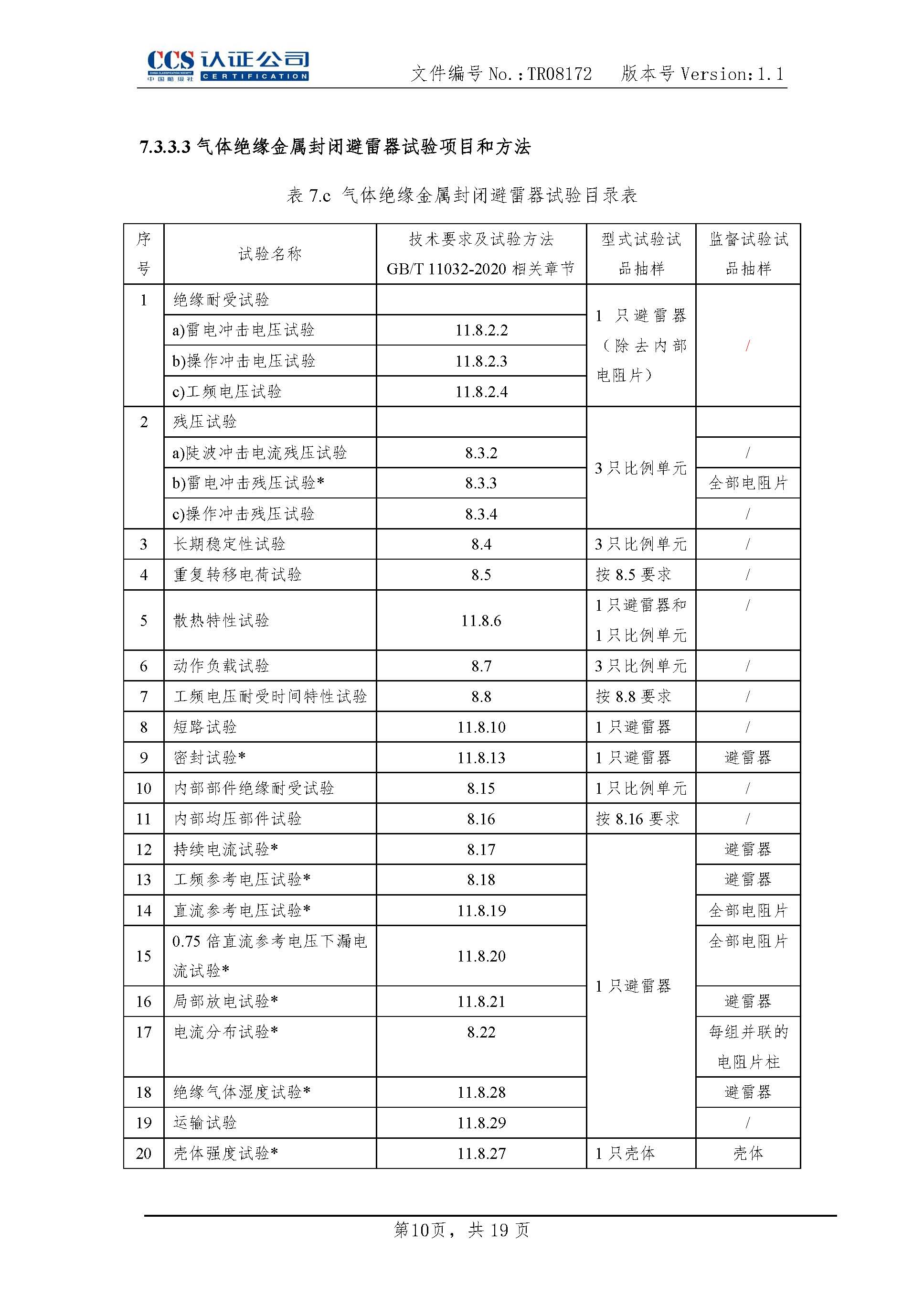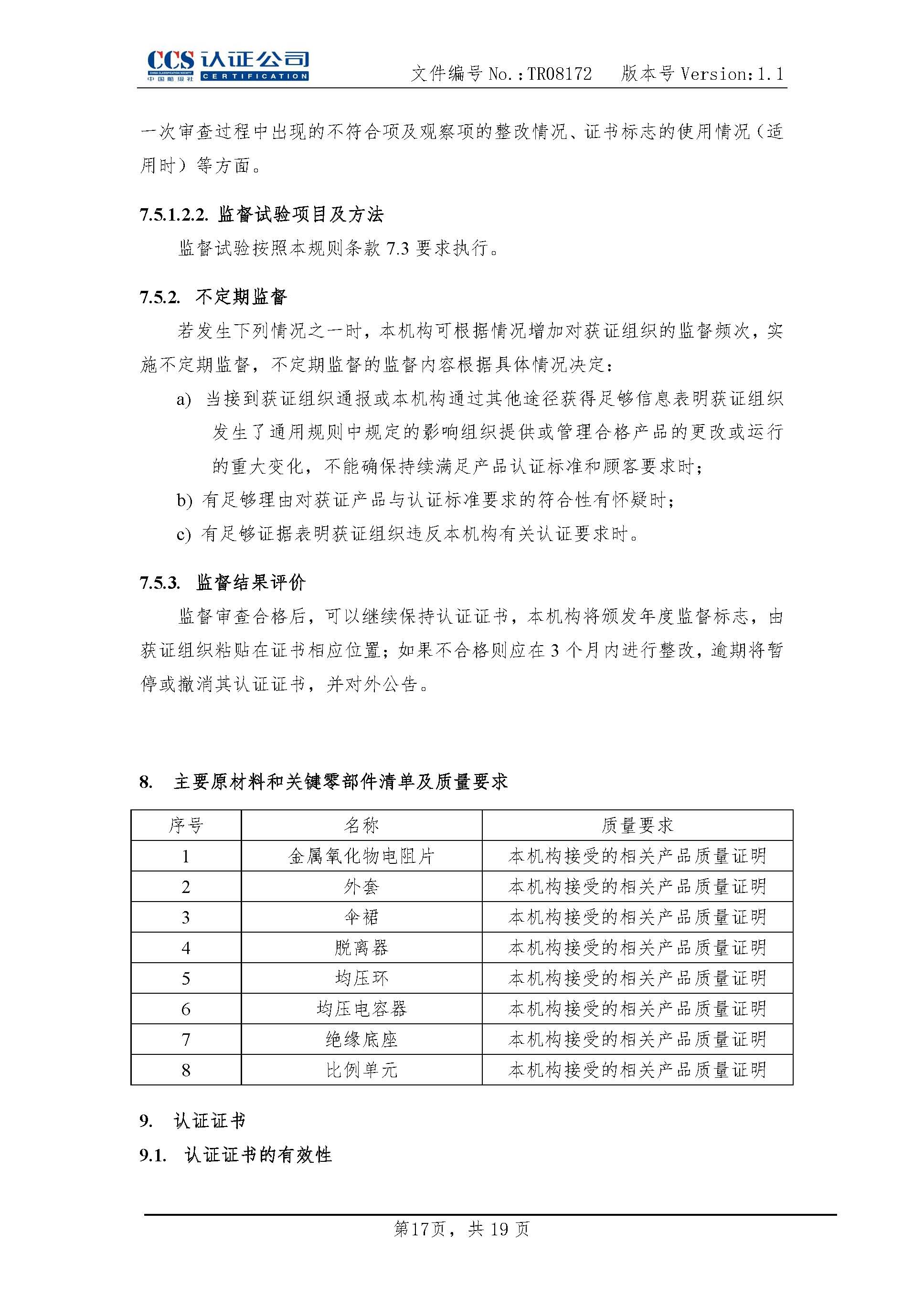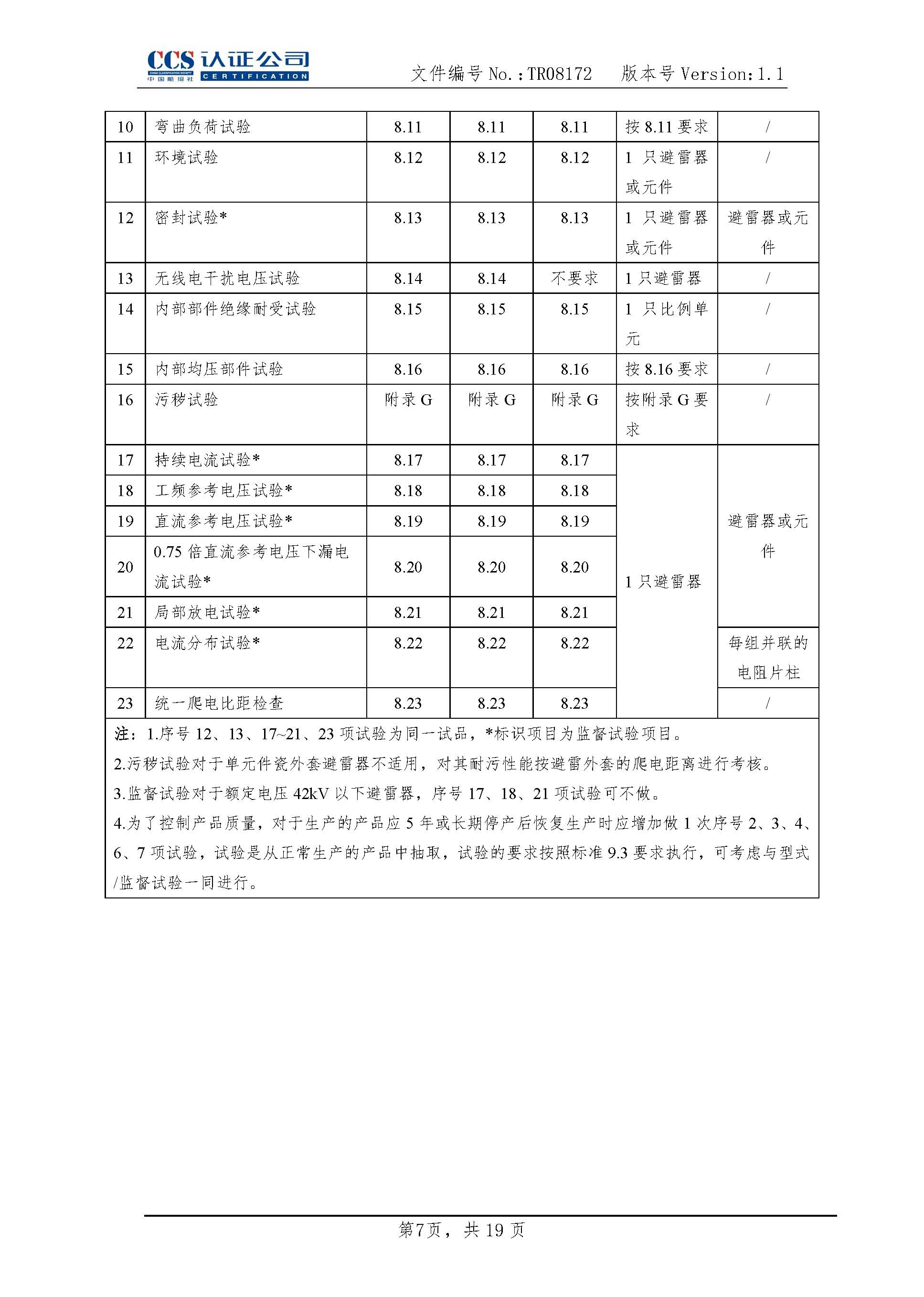 TR08172-1.1 交流无间隙金属氧化物避雷器产品认证实施专用规则