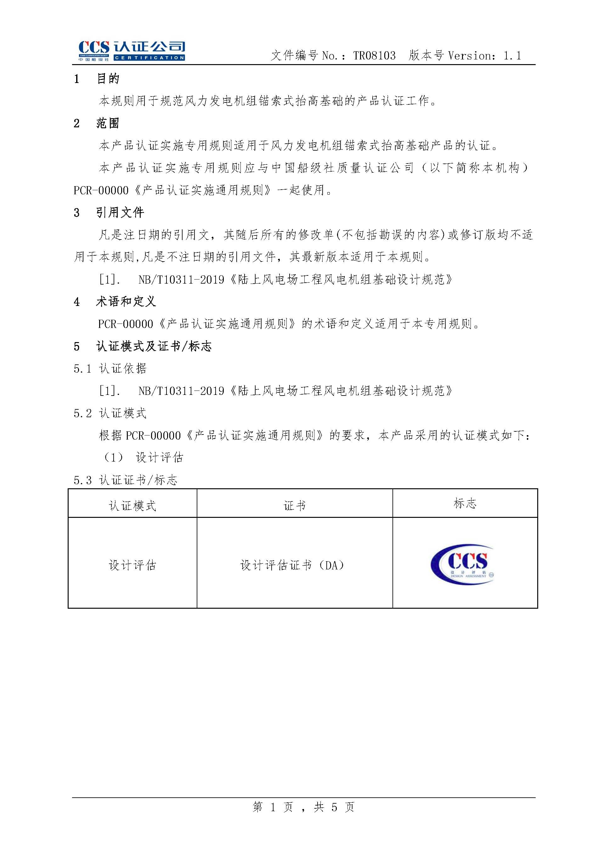 TR08103-1.1_风力发电机组锚索式抬高基础产品认证实施专用规