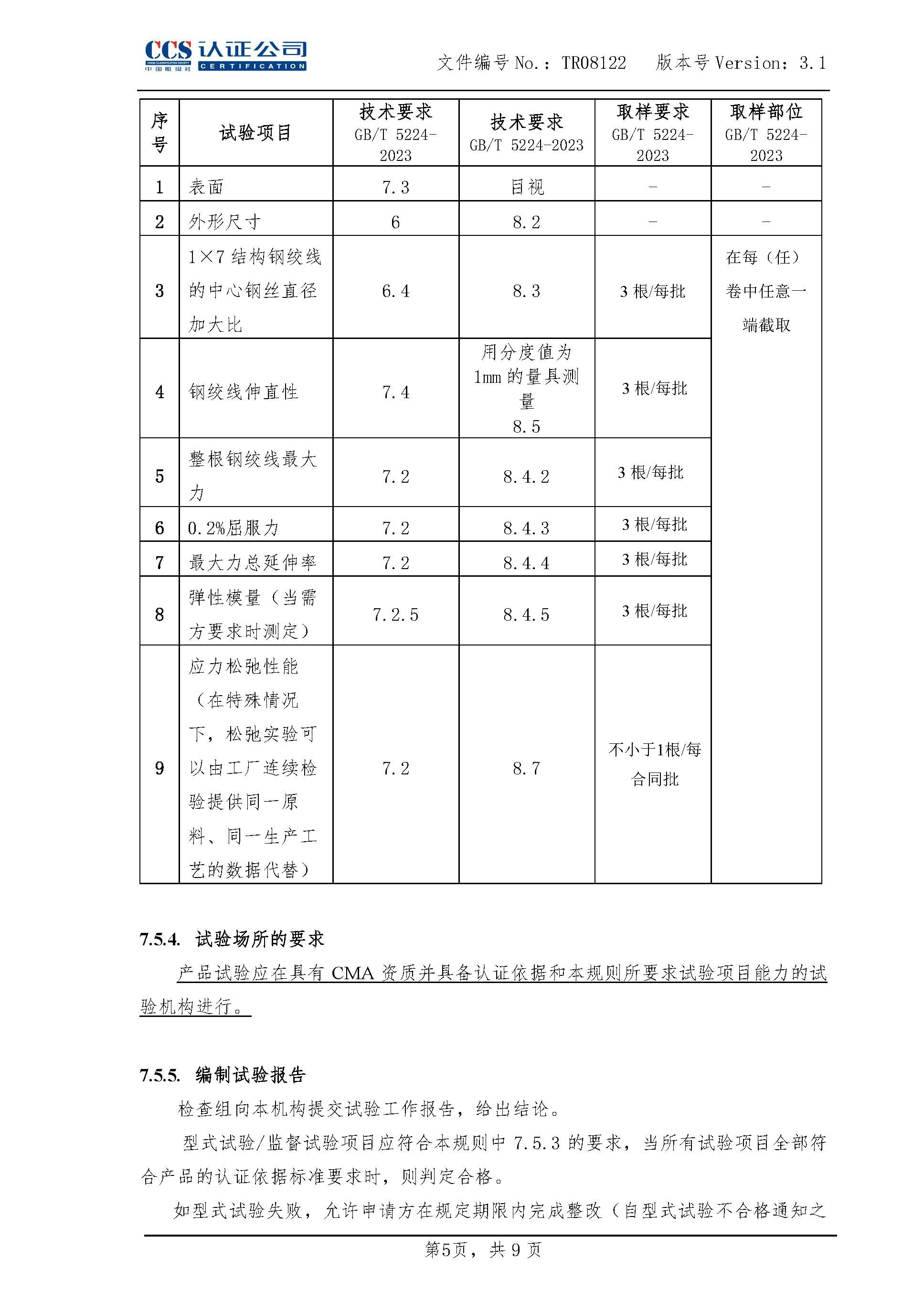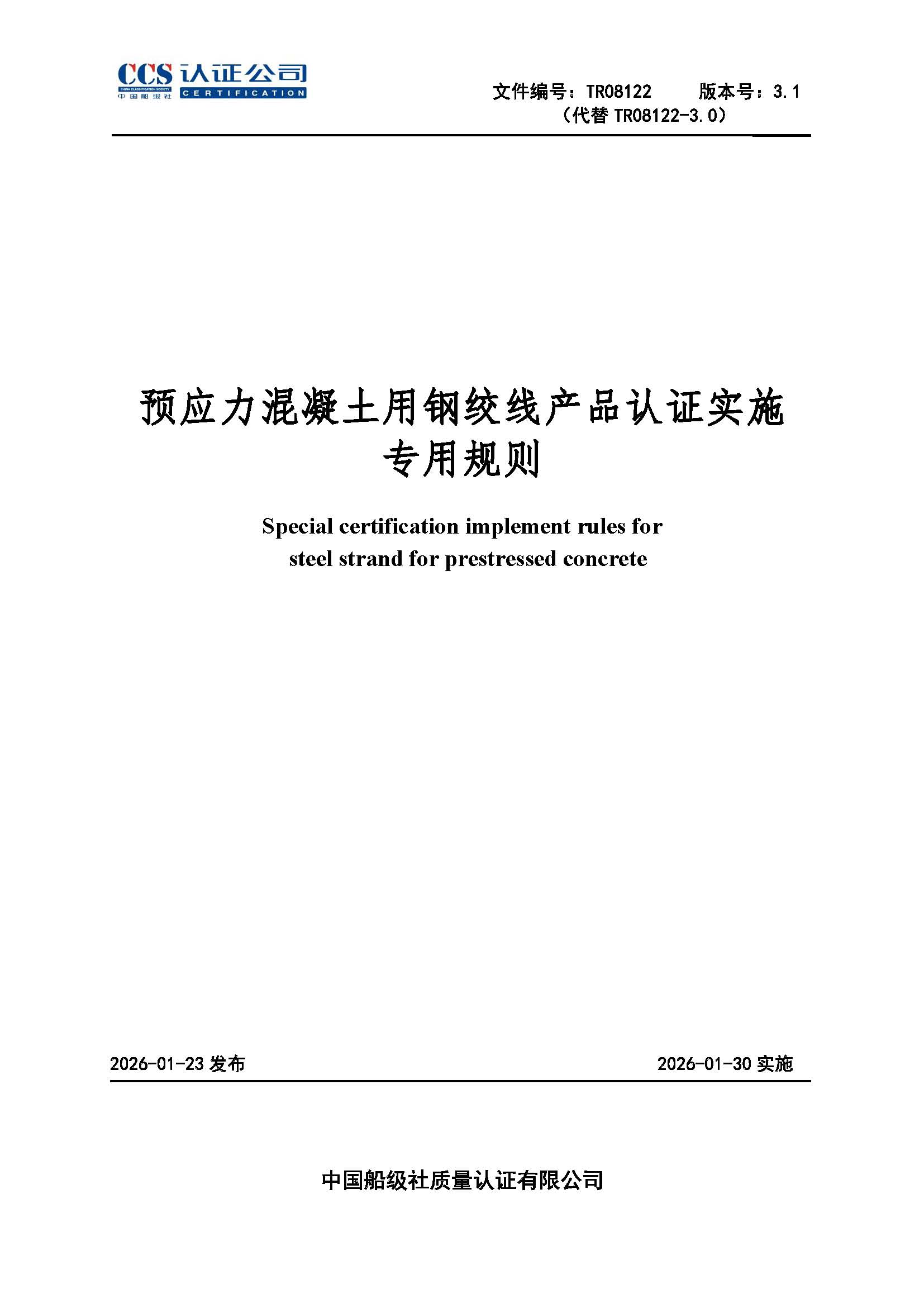 TR08122-3.1预应力混凝土用钢绞线产品认证实施专用规则