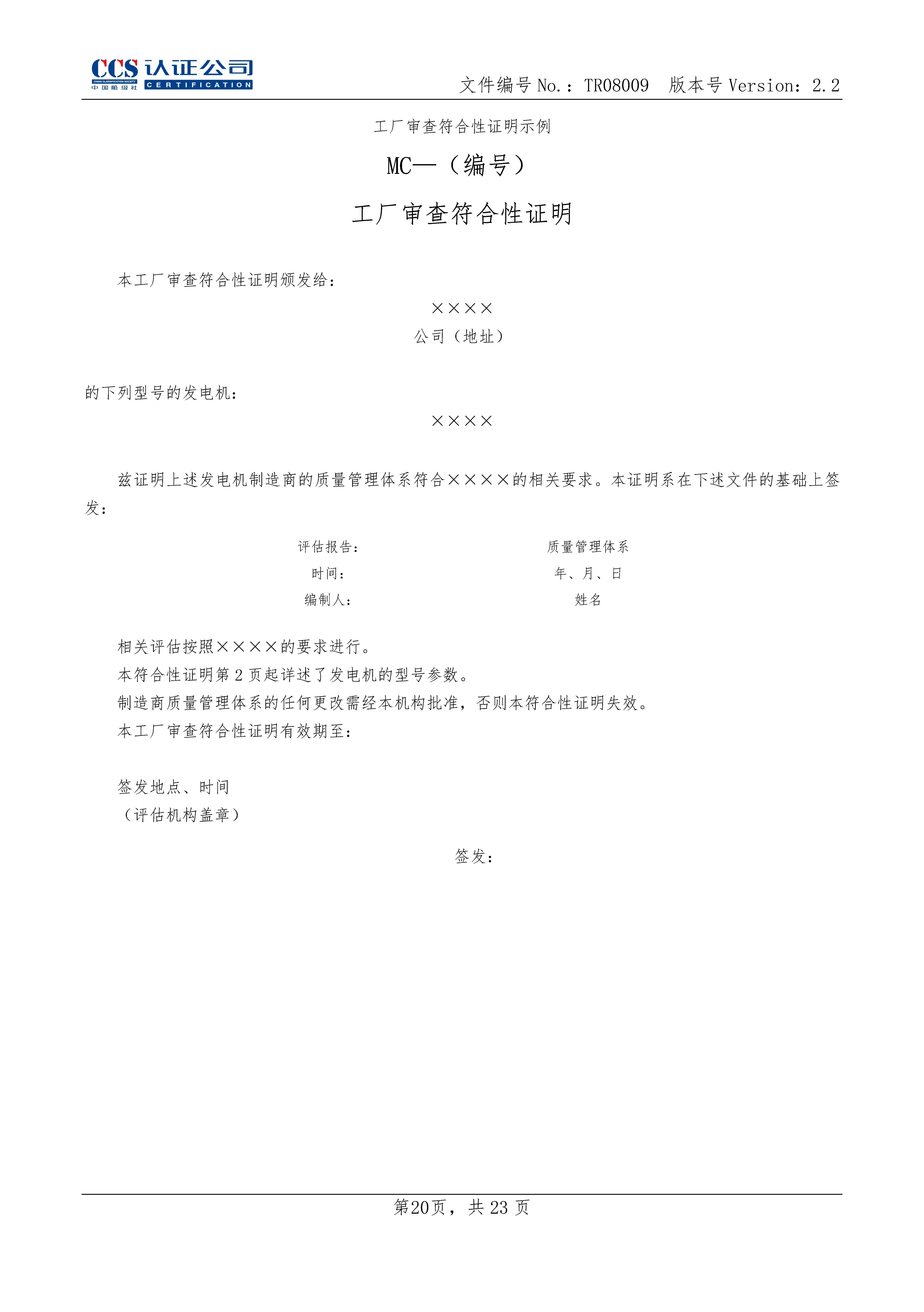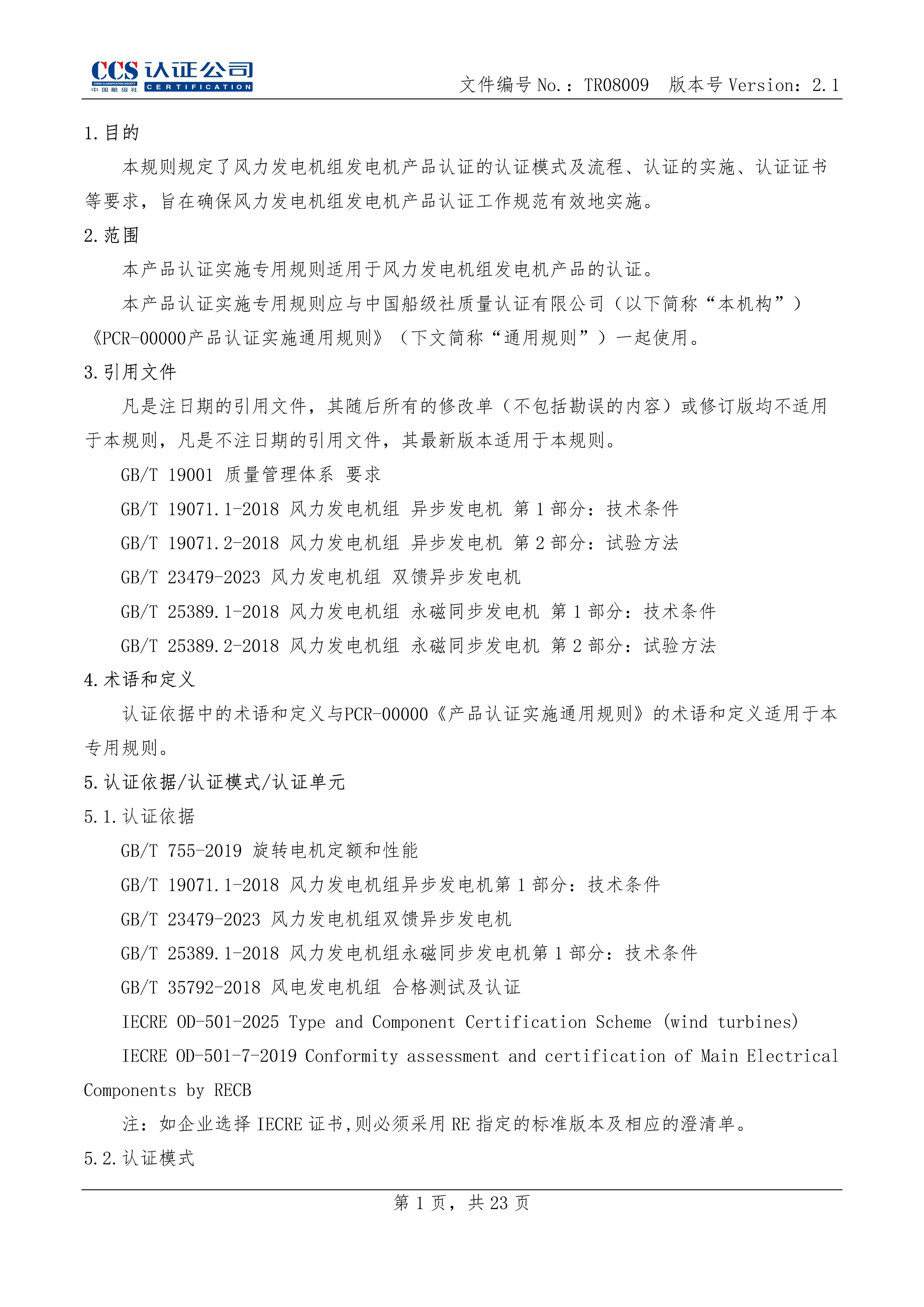 TR08009-2.2 风力发电机组发电机产品认证实施专用规则