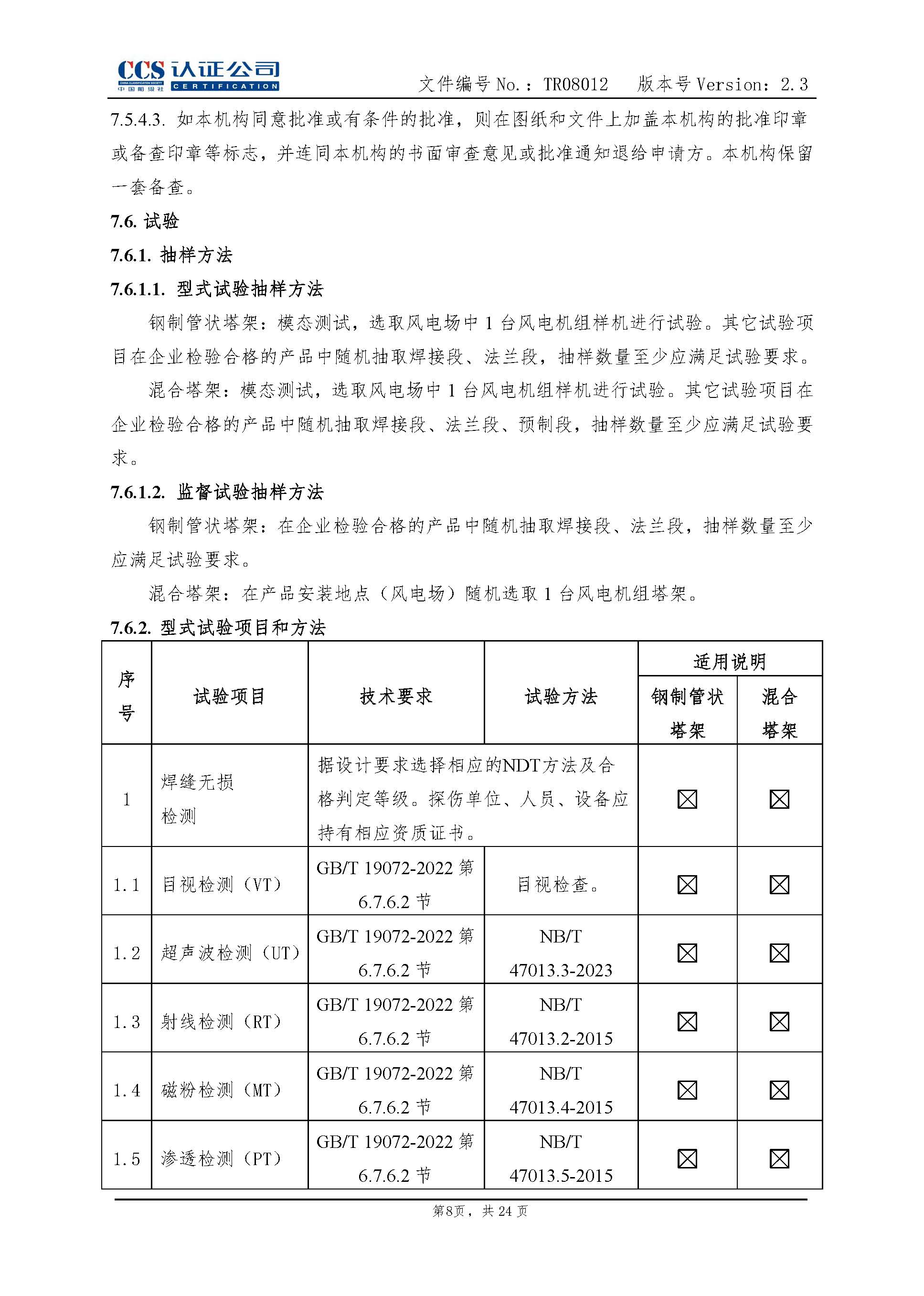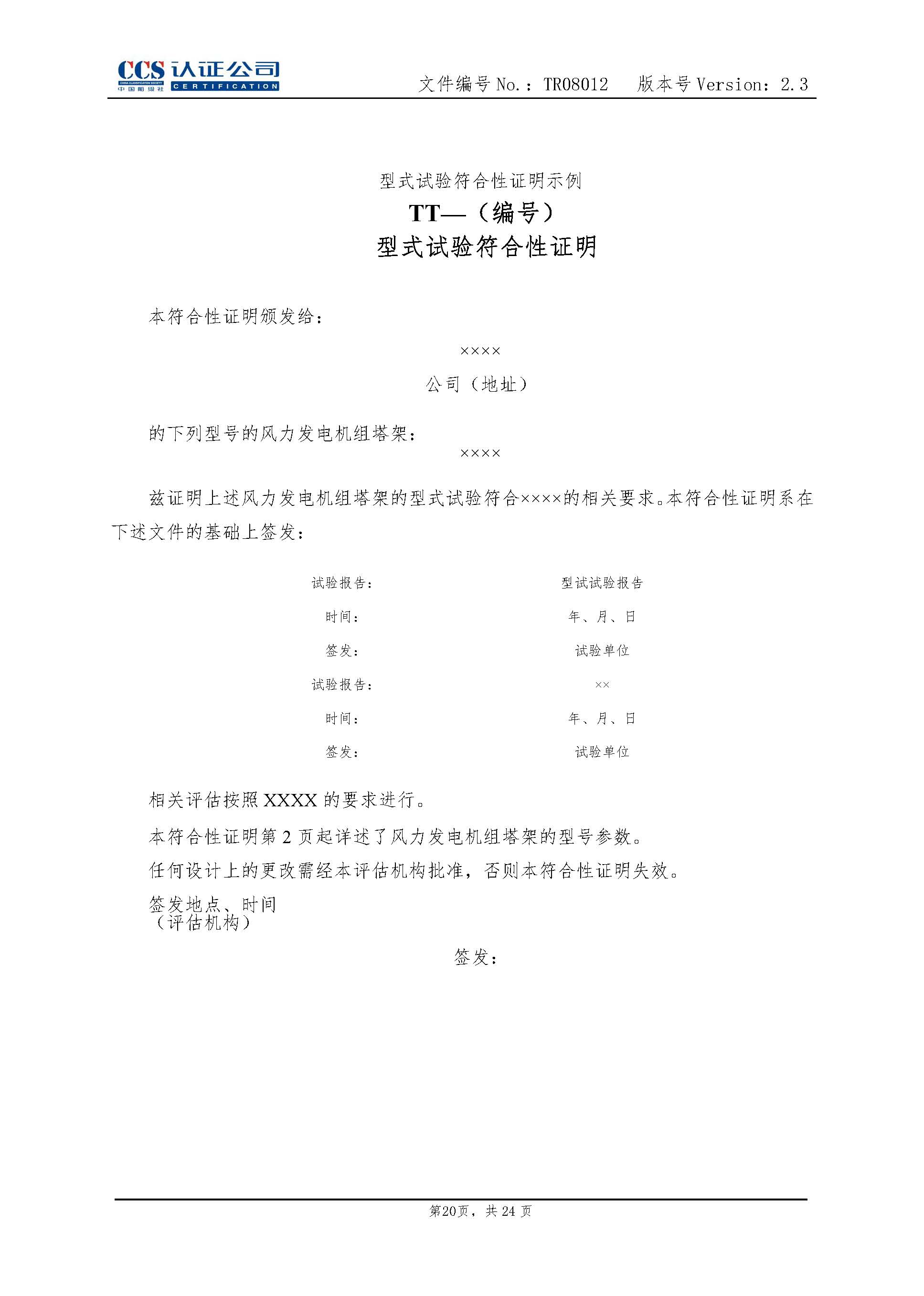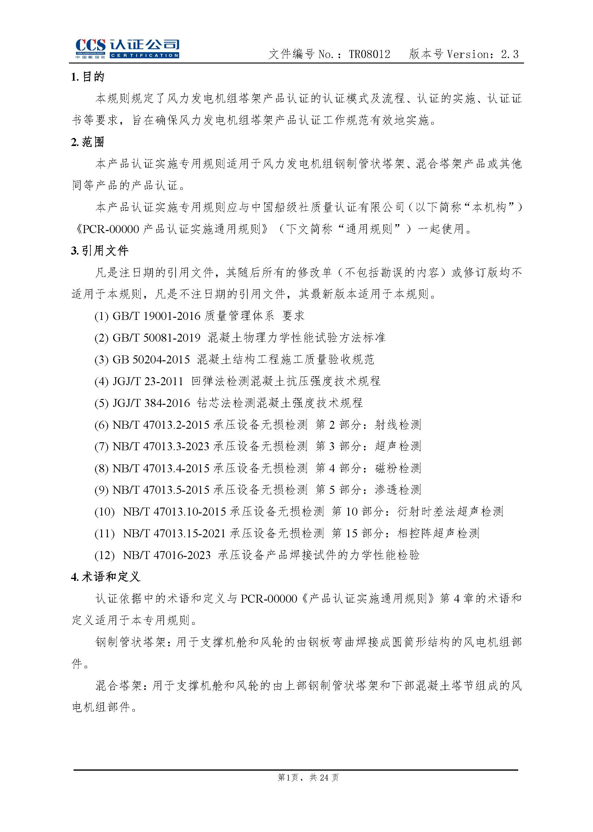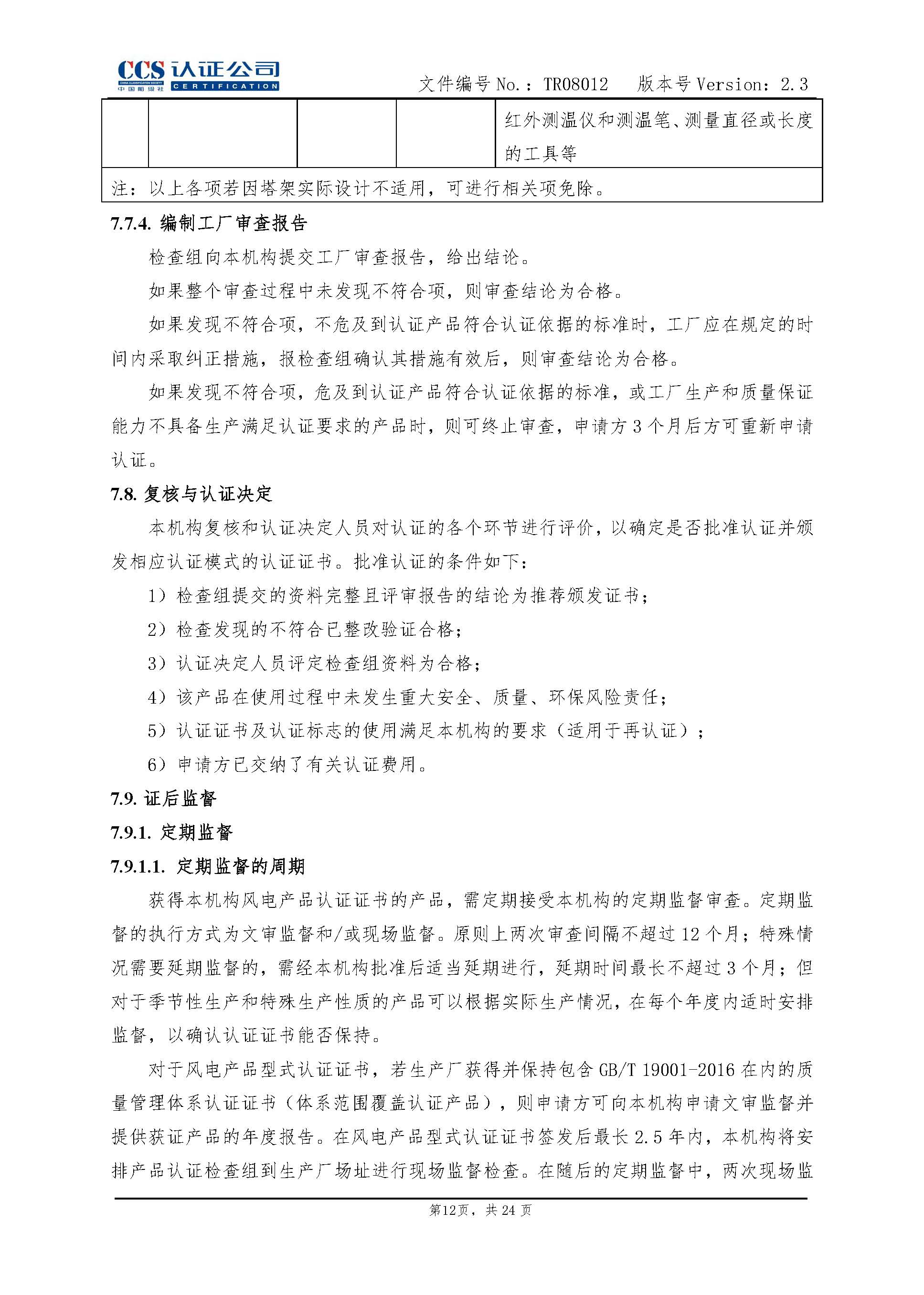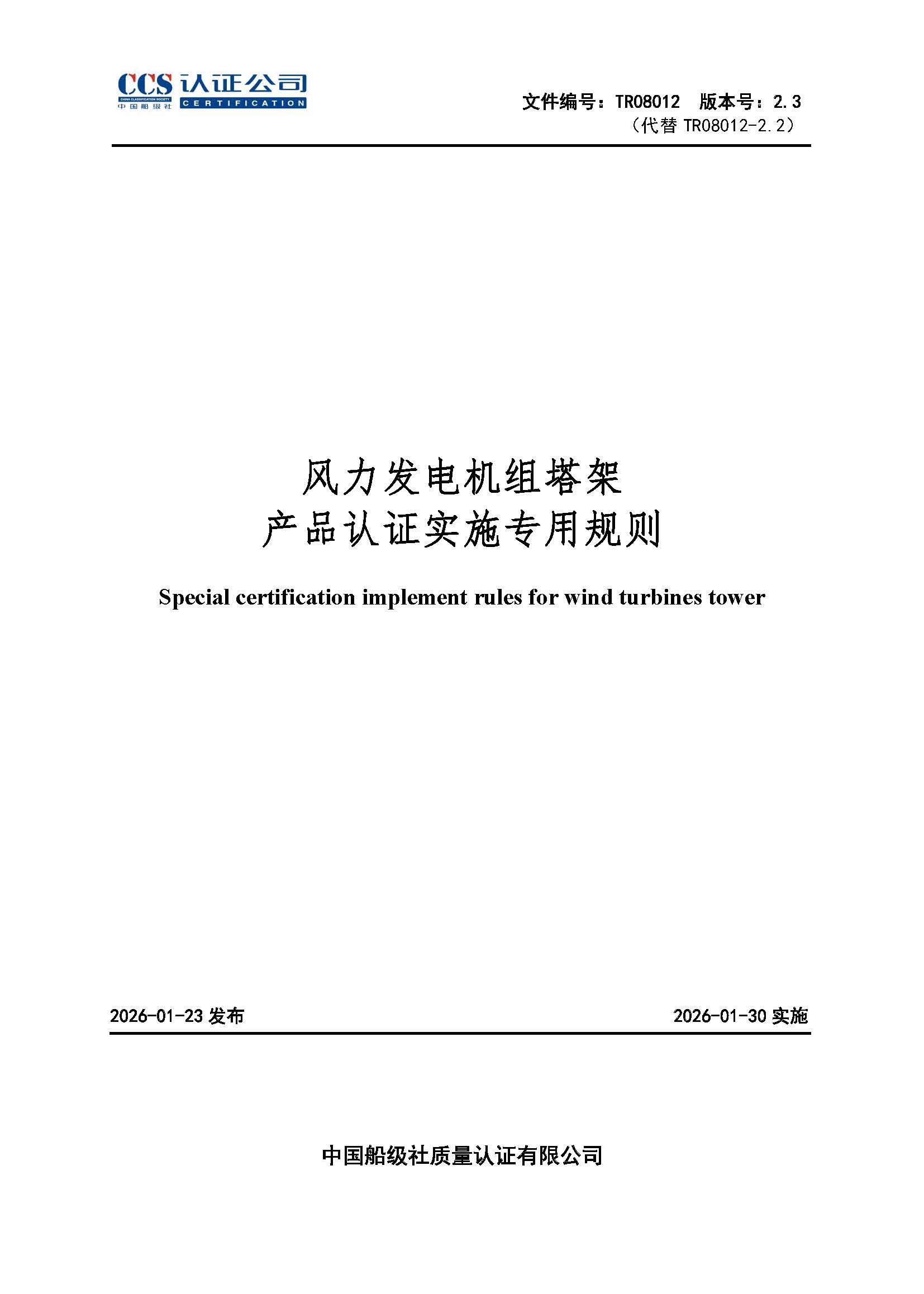 TR08012-2.3 风力发电机组塔架产品认证实施专用规则