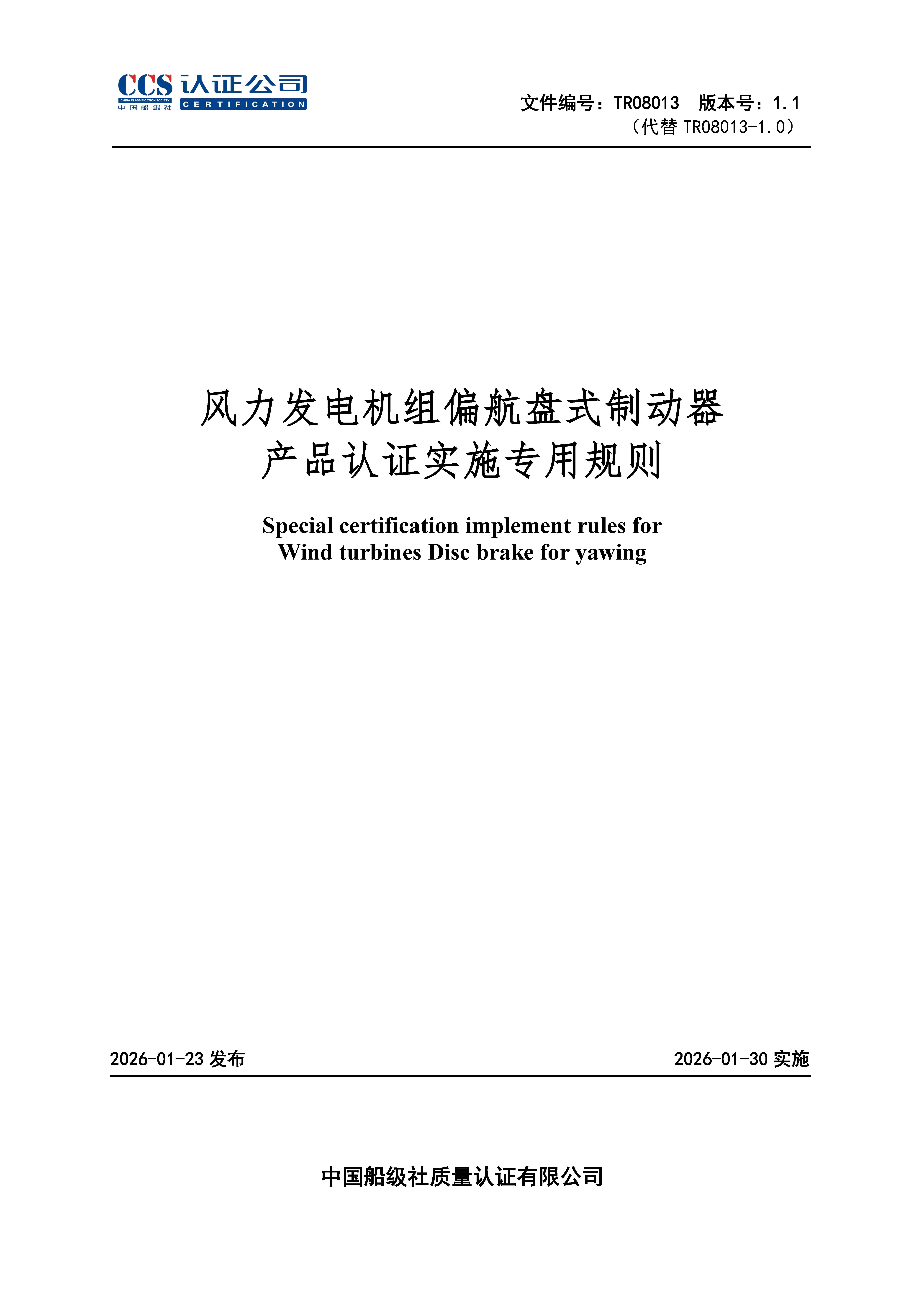 TR08013-1.1-风力发电机组偏航盘式制动器产品认证实施专用规则