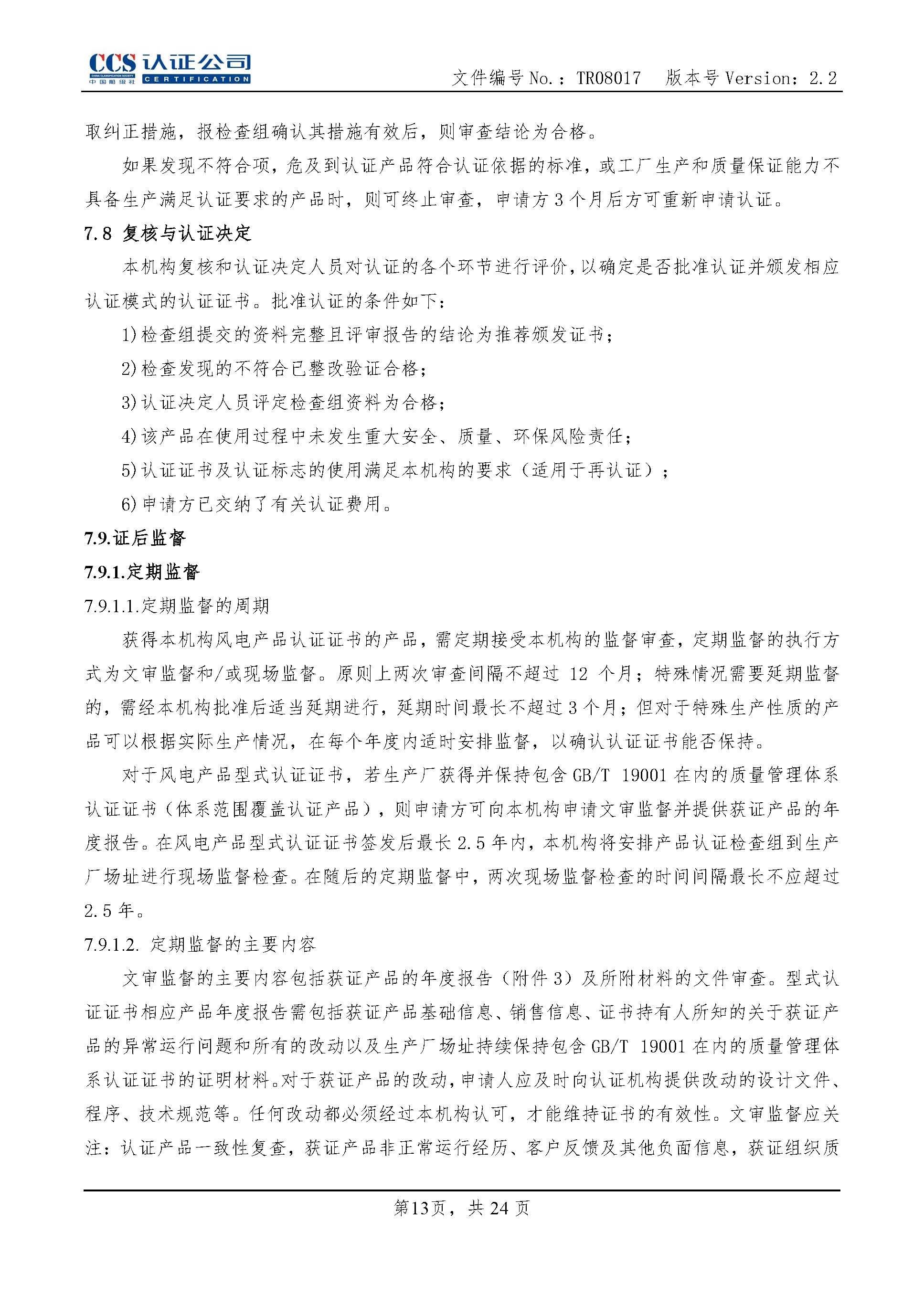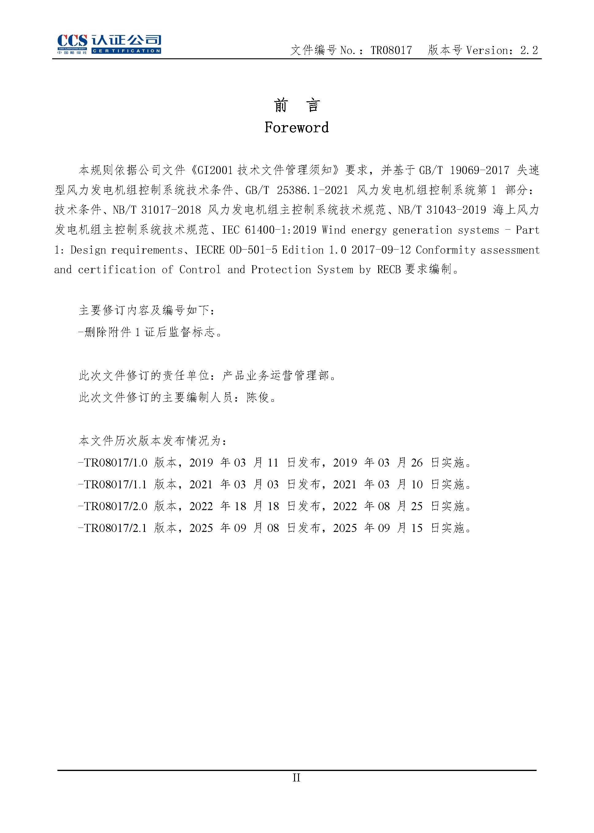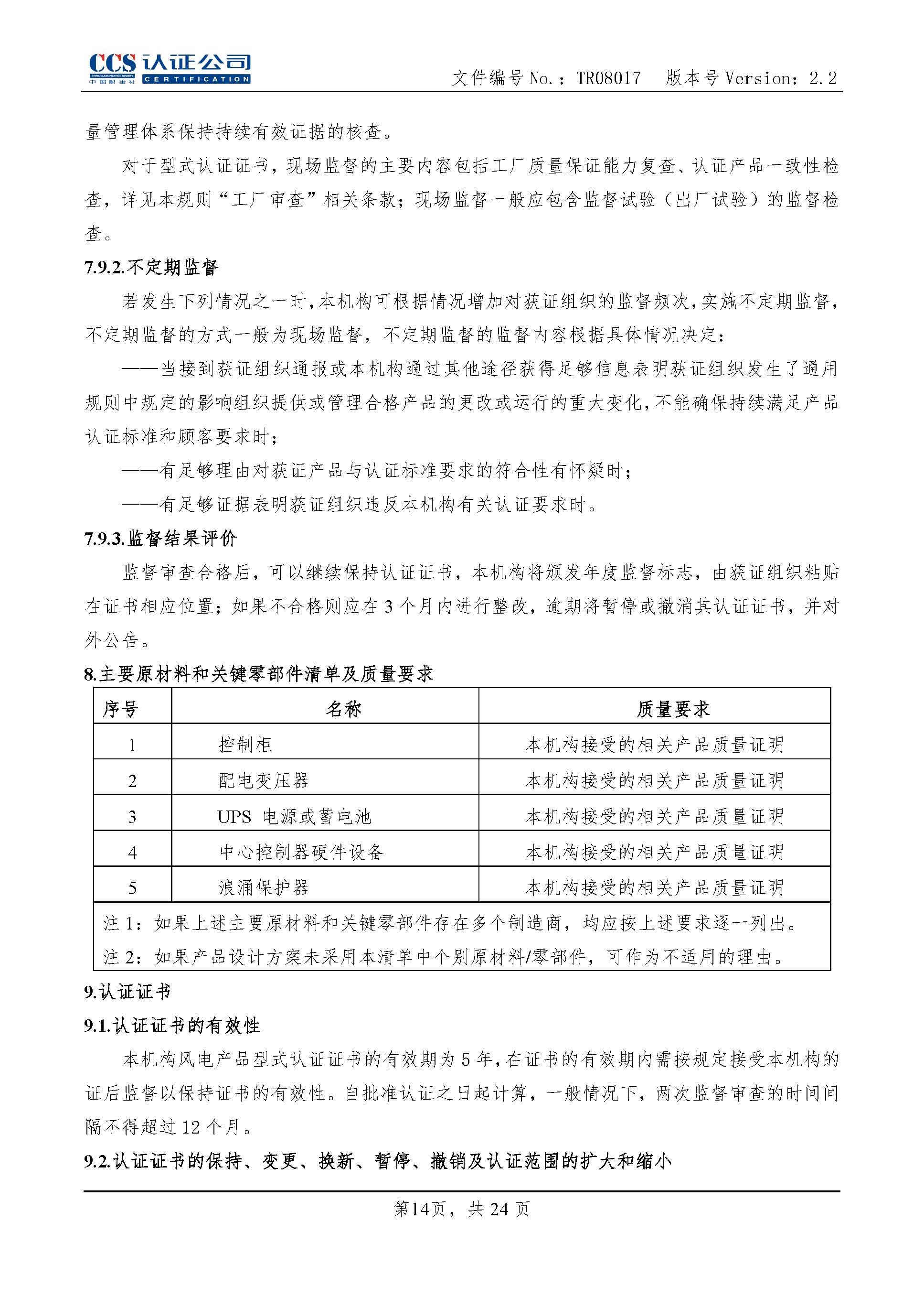 TR08017-2.2 风力发电机组控制器产品认证实施专用规则
