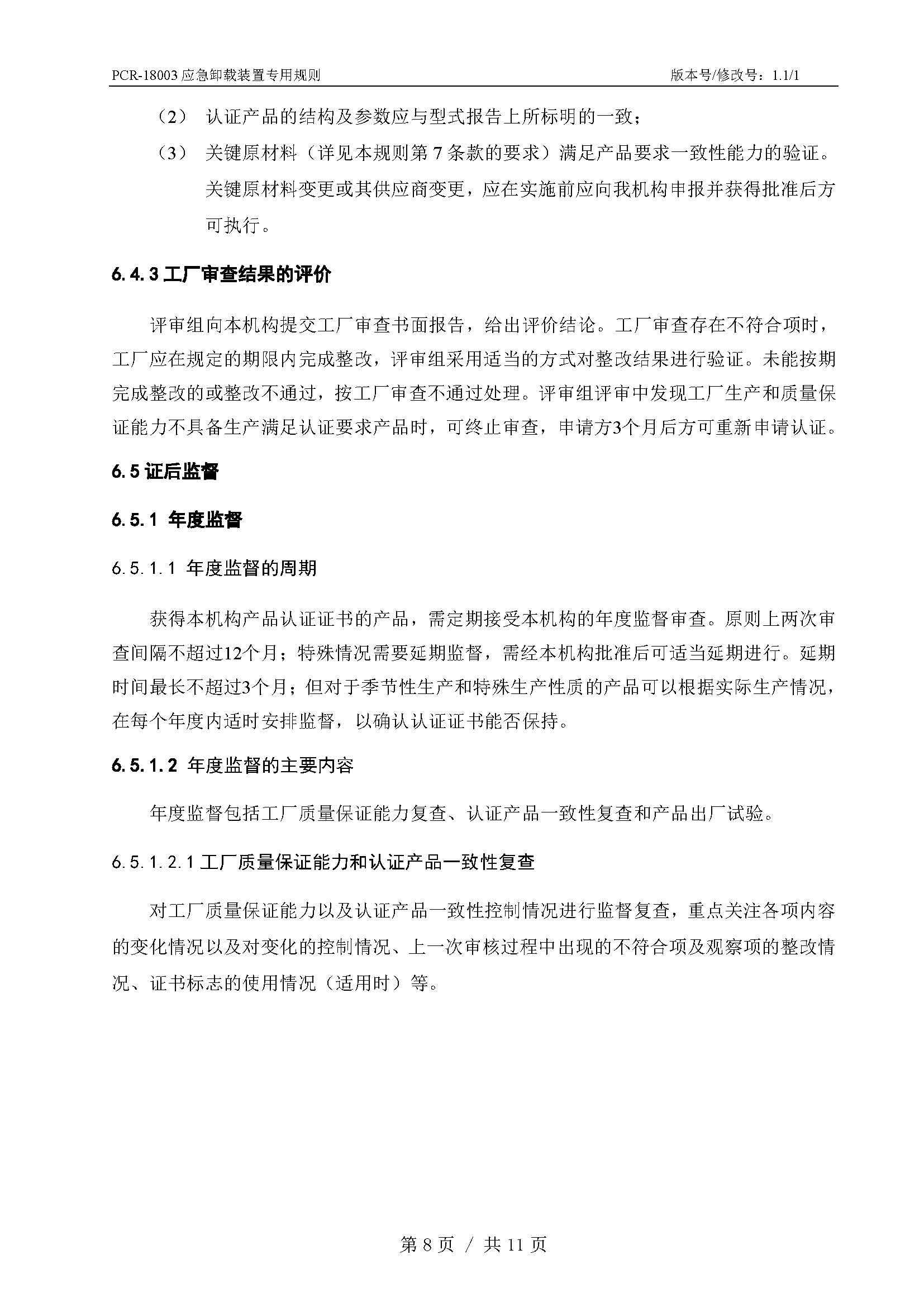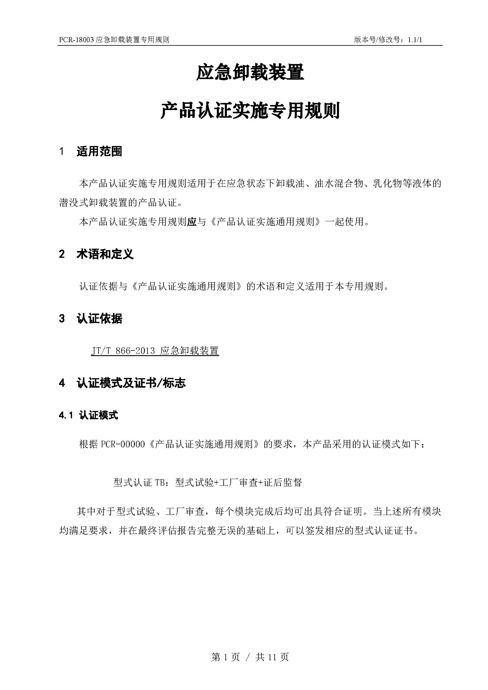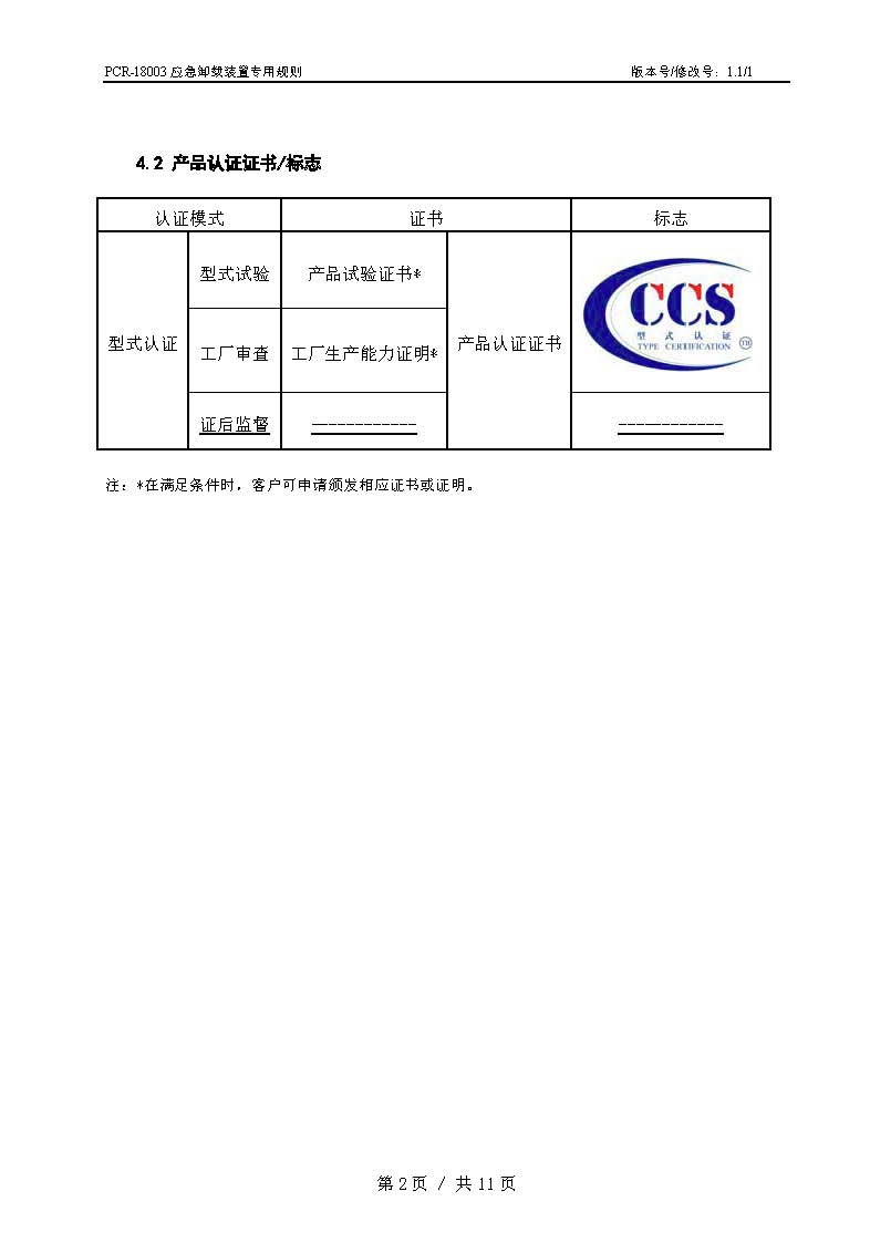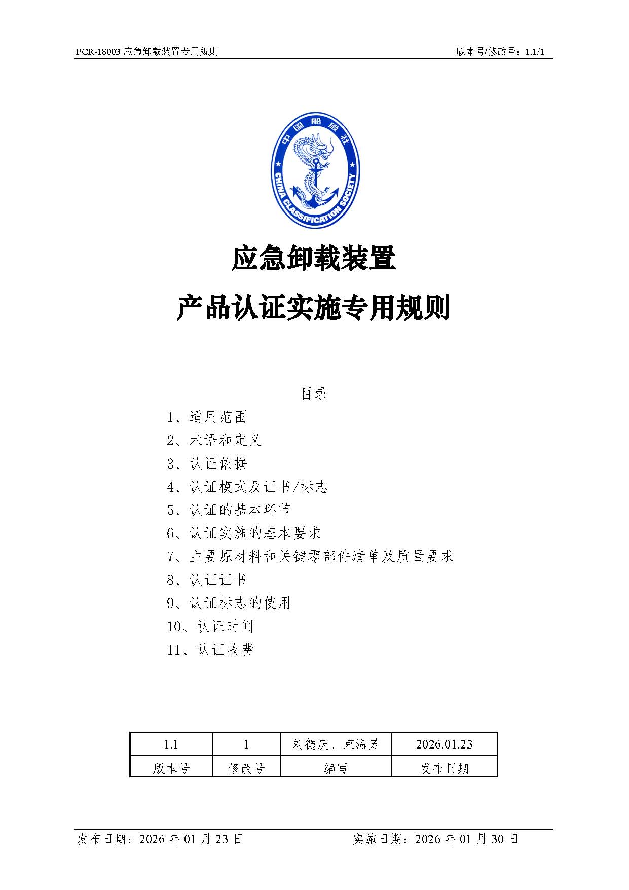 PCR-18003应急卸载装置产品认证实施专用规则1.1