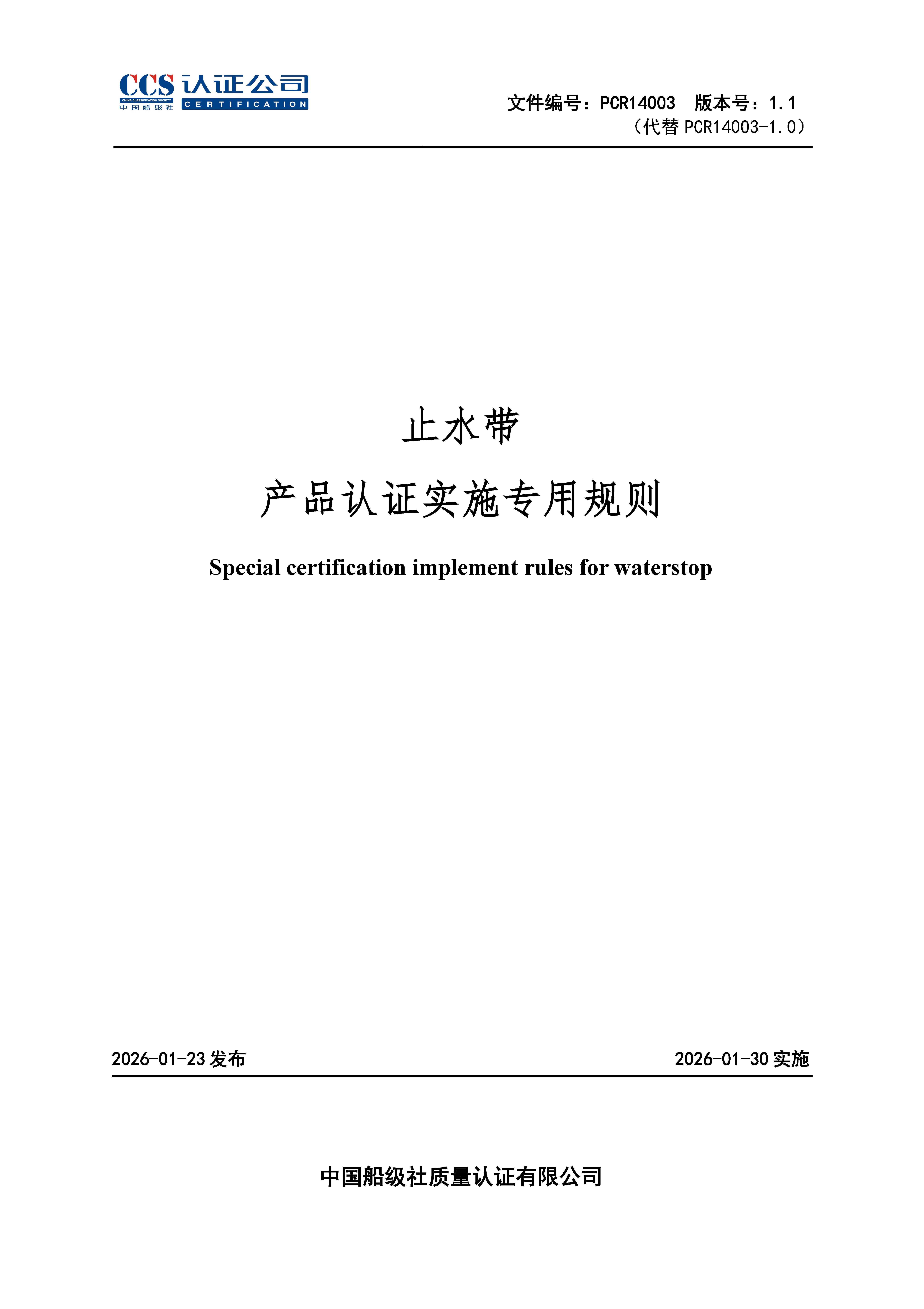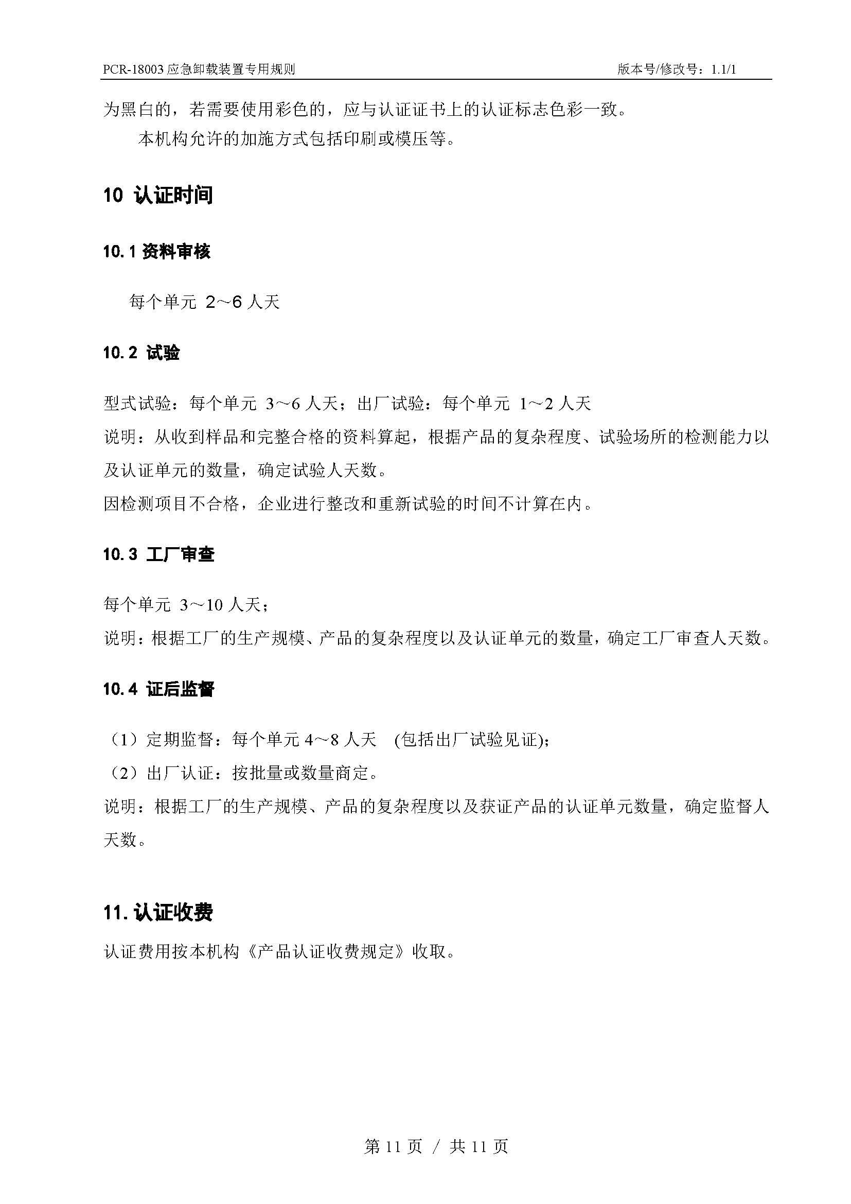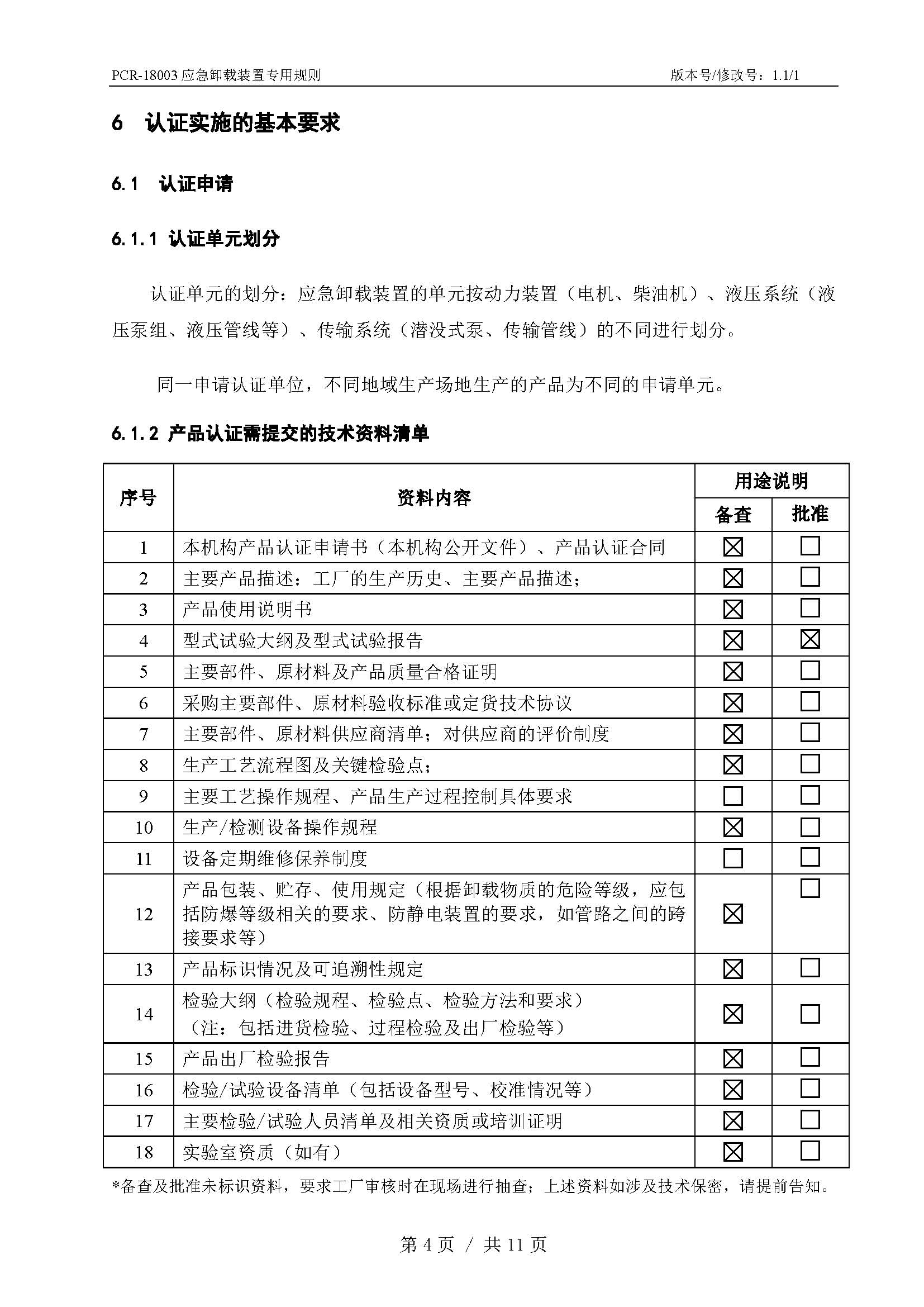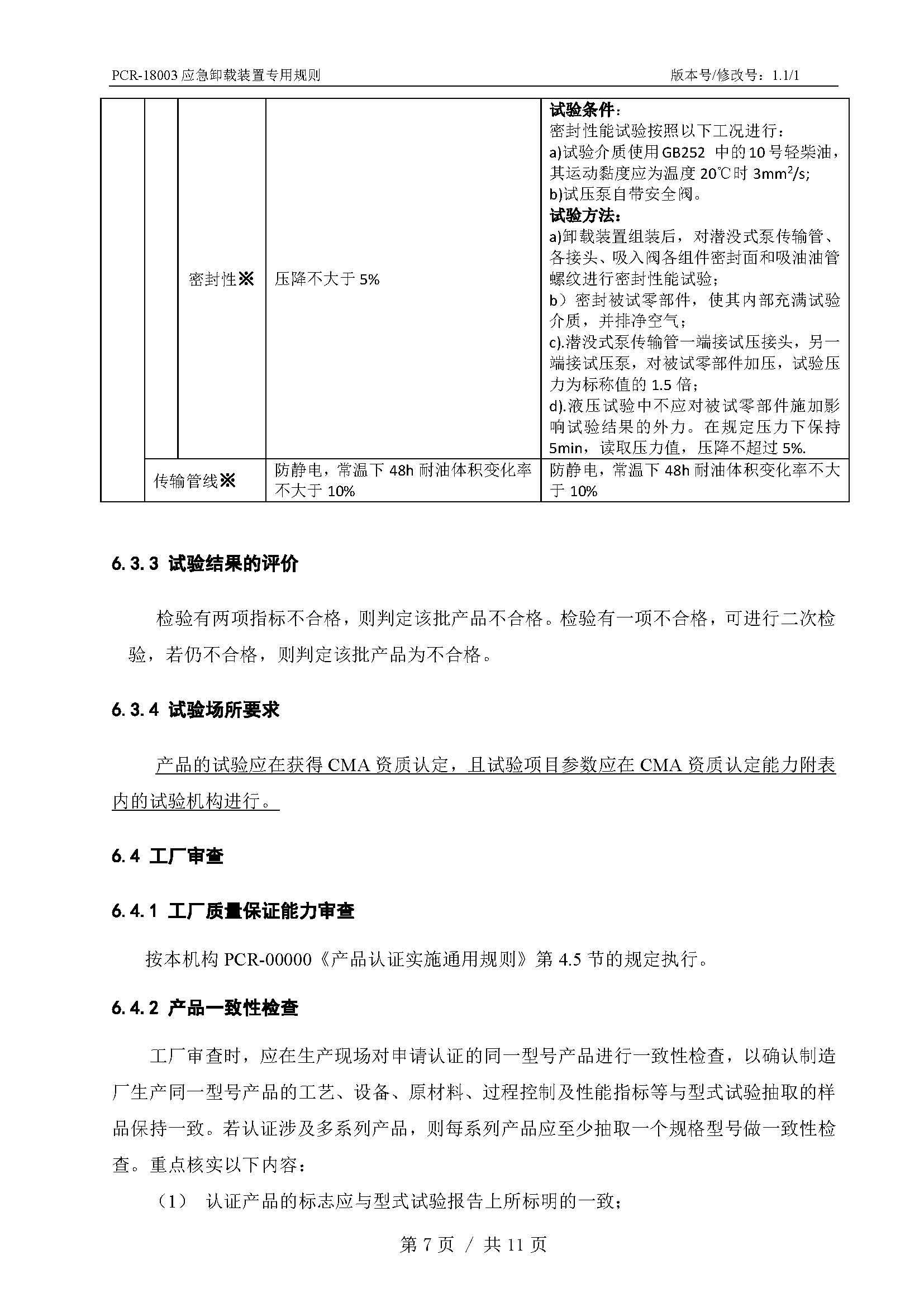 PCR-18003应急卸载装置产品认证实施专用规则1.1