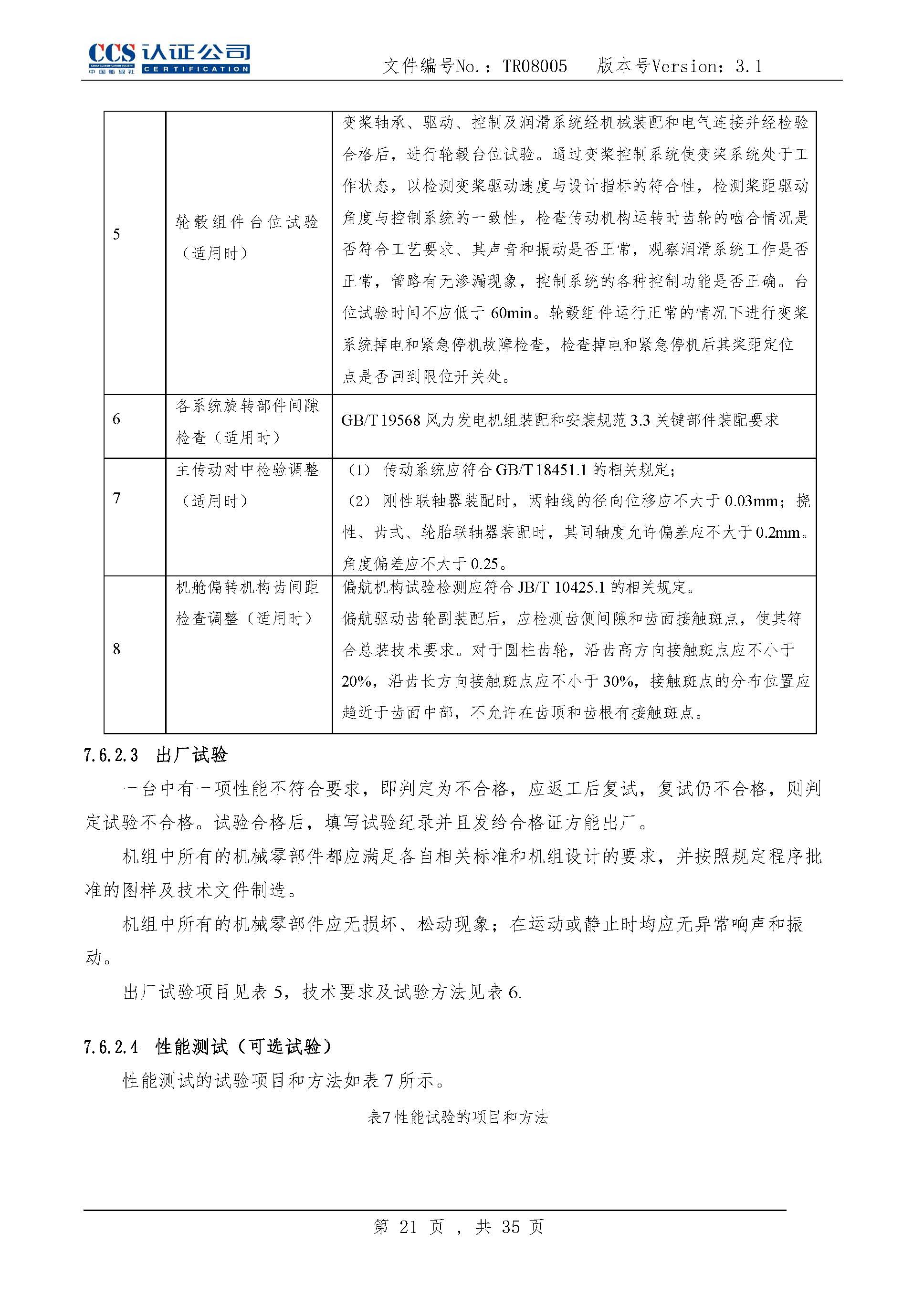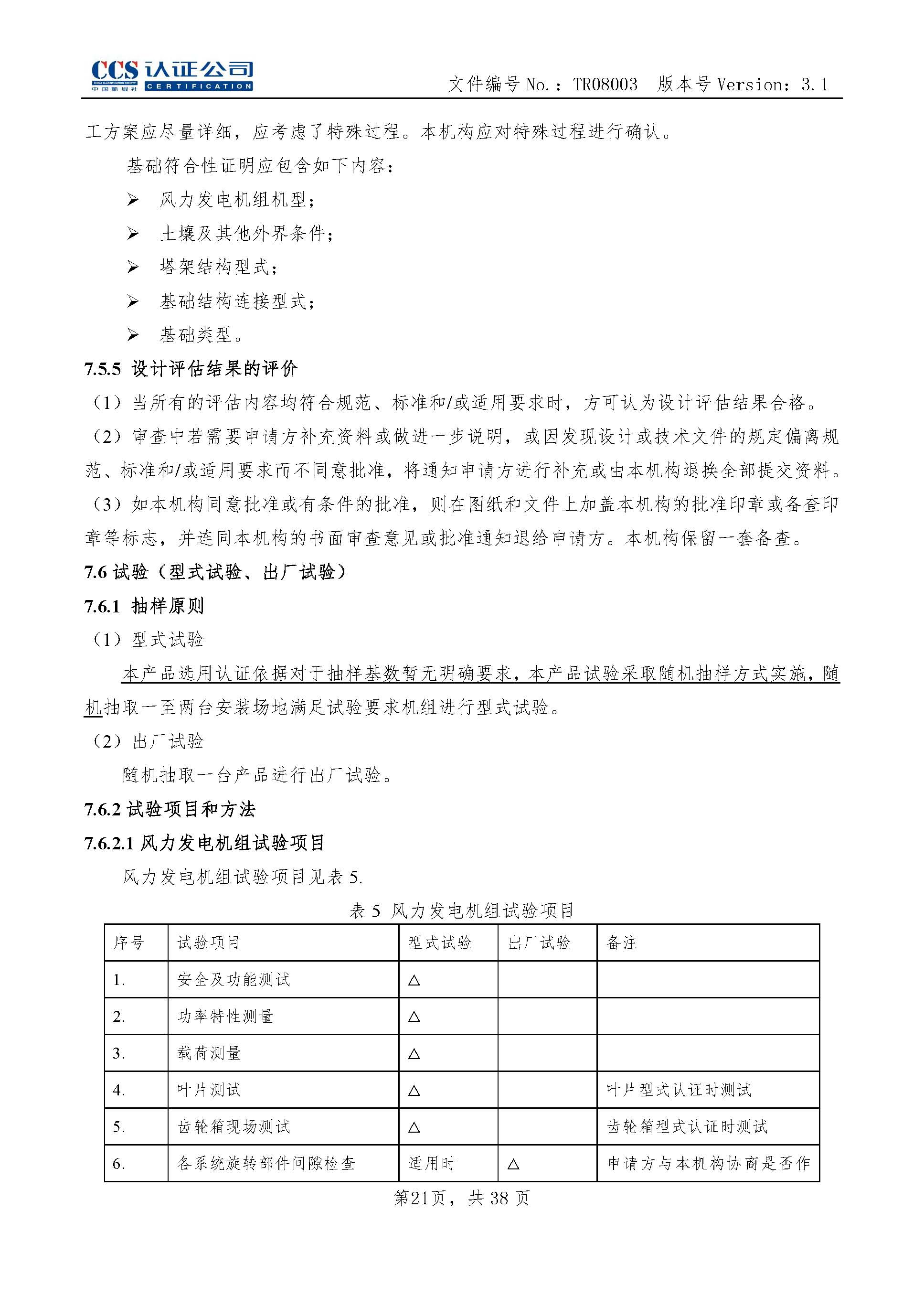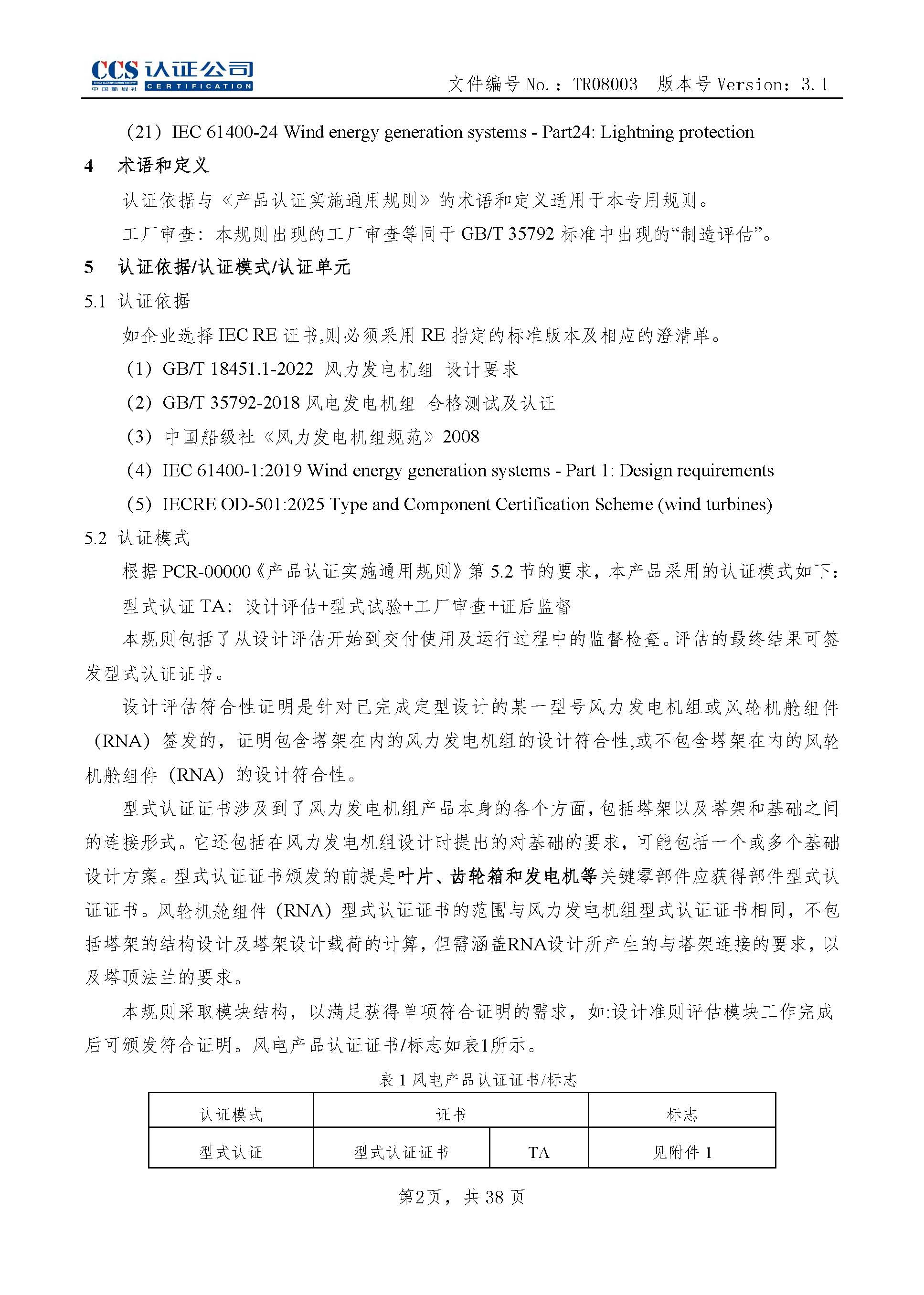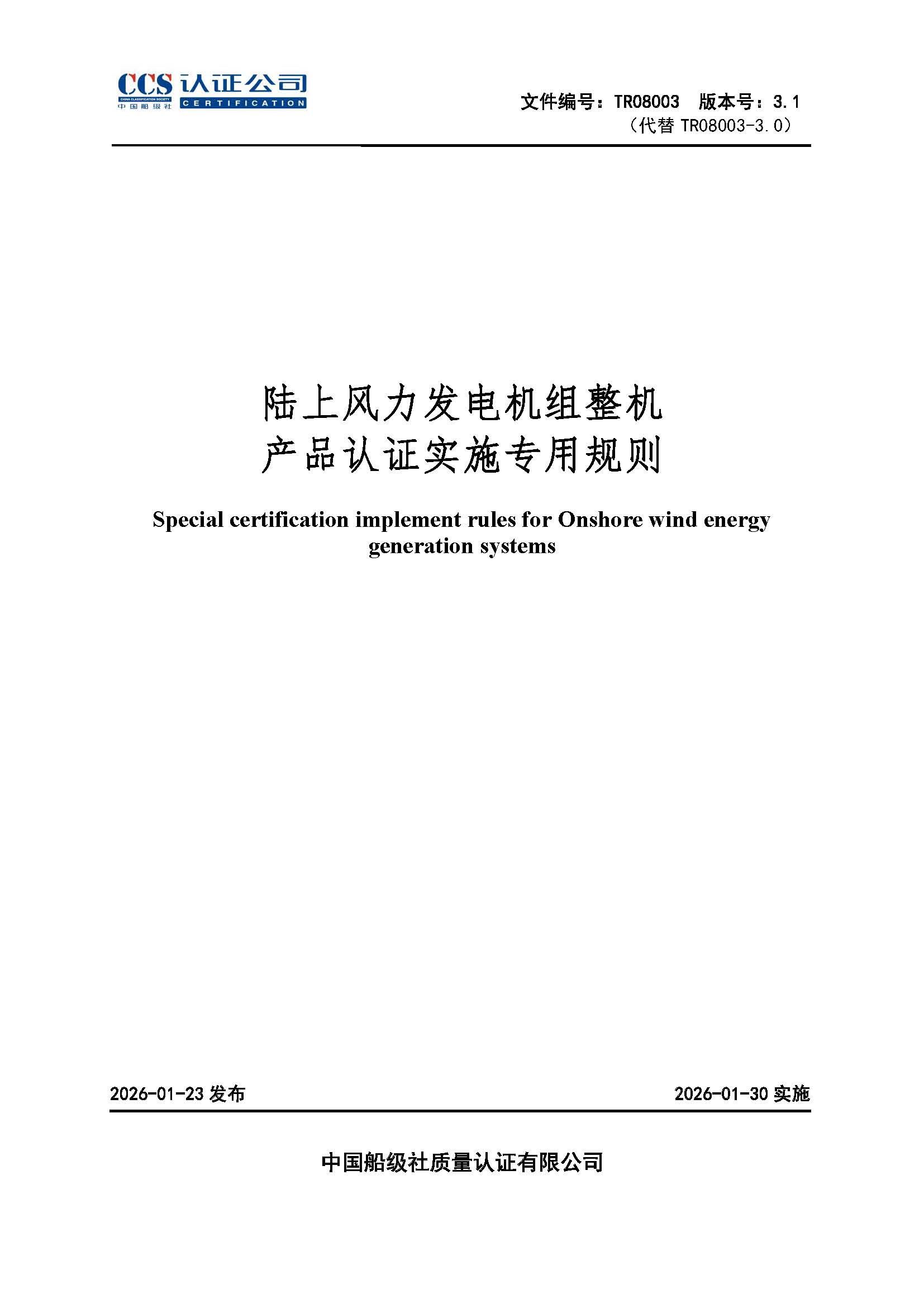 TR08003-3.1 陆上风力发电机组整机产品认证实施专用规则