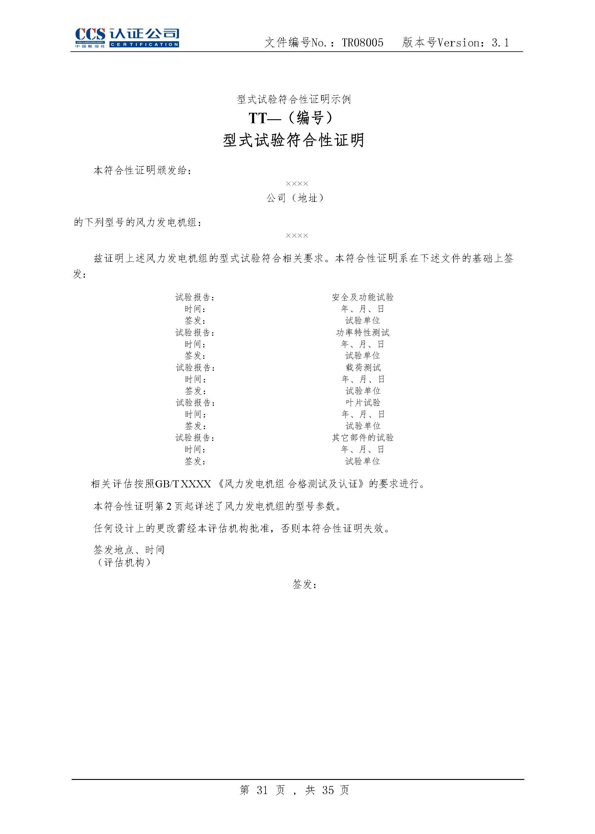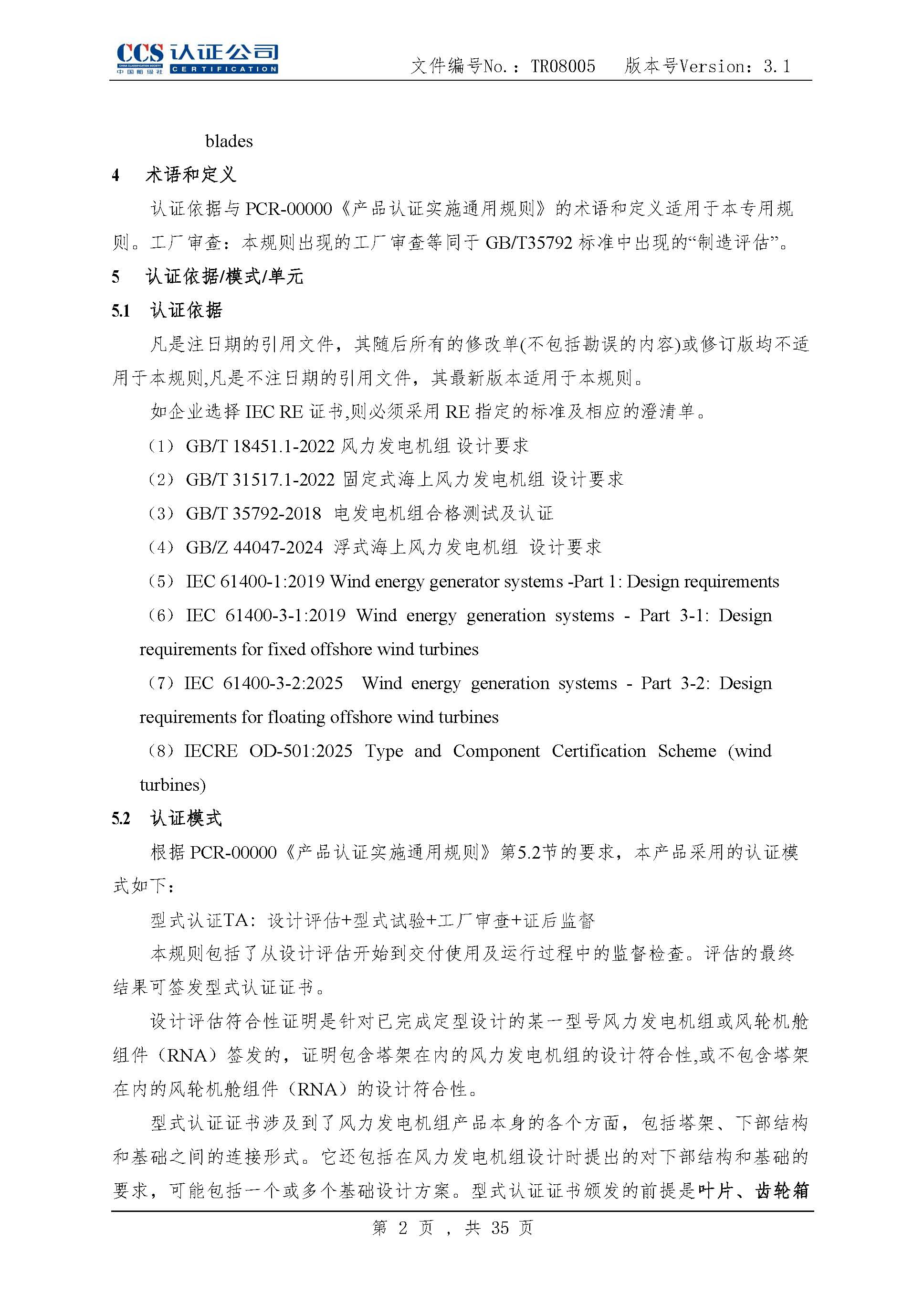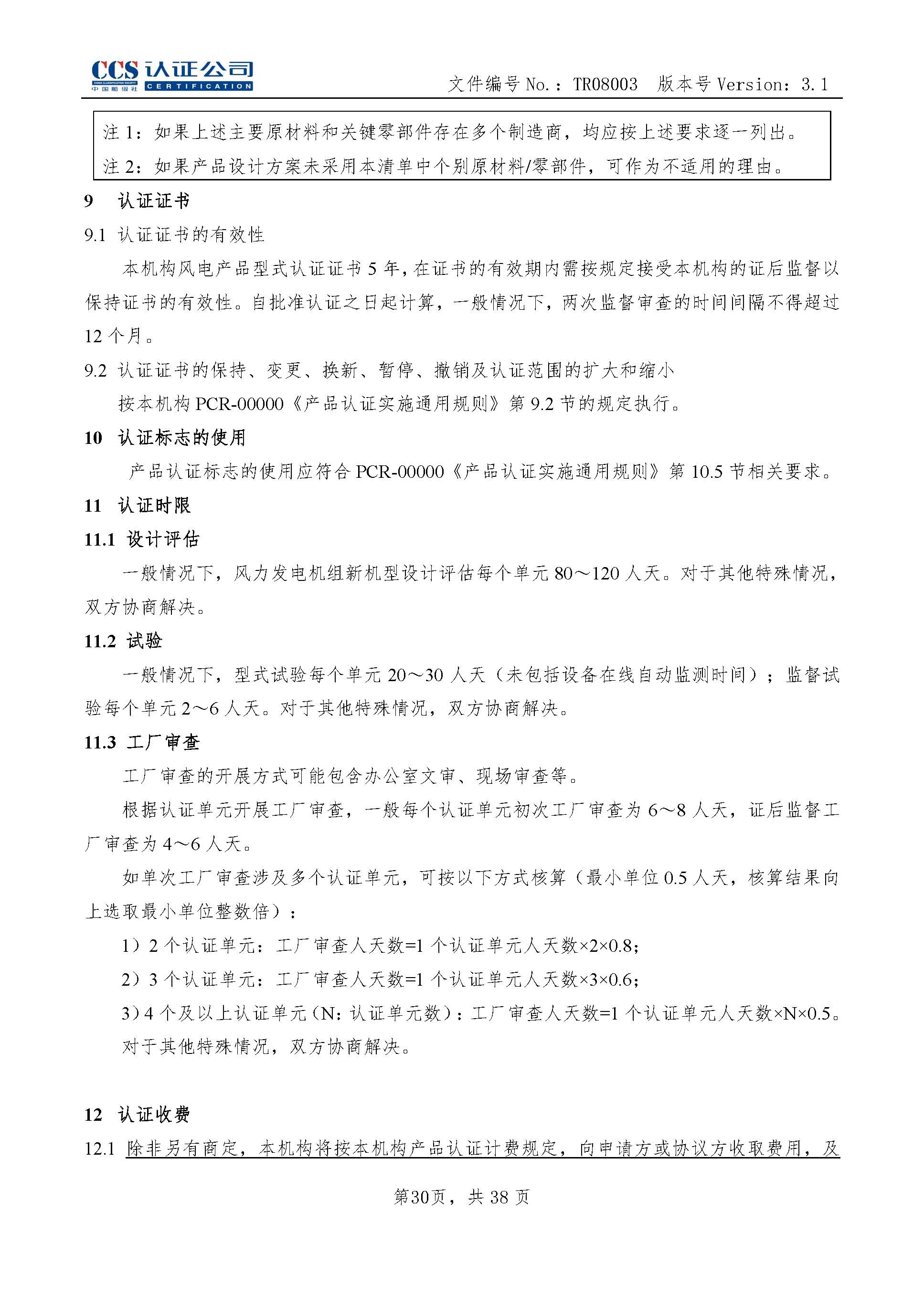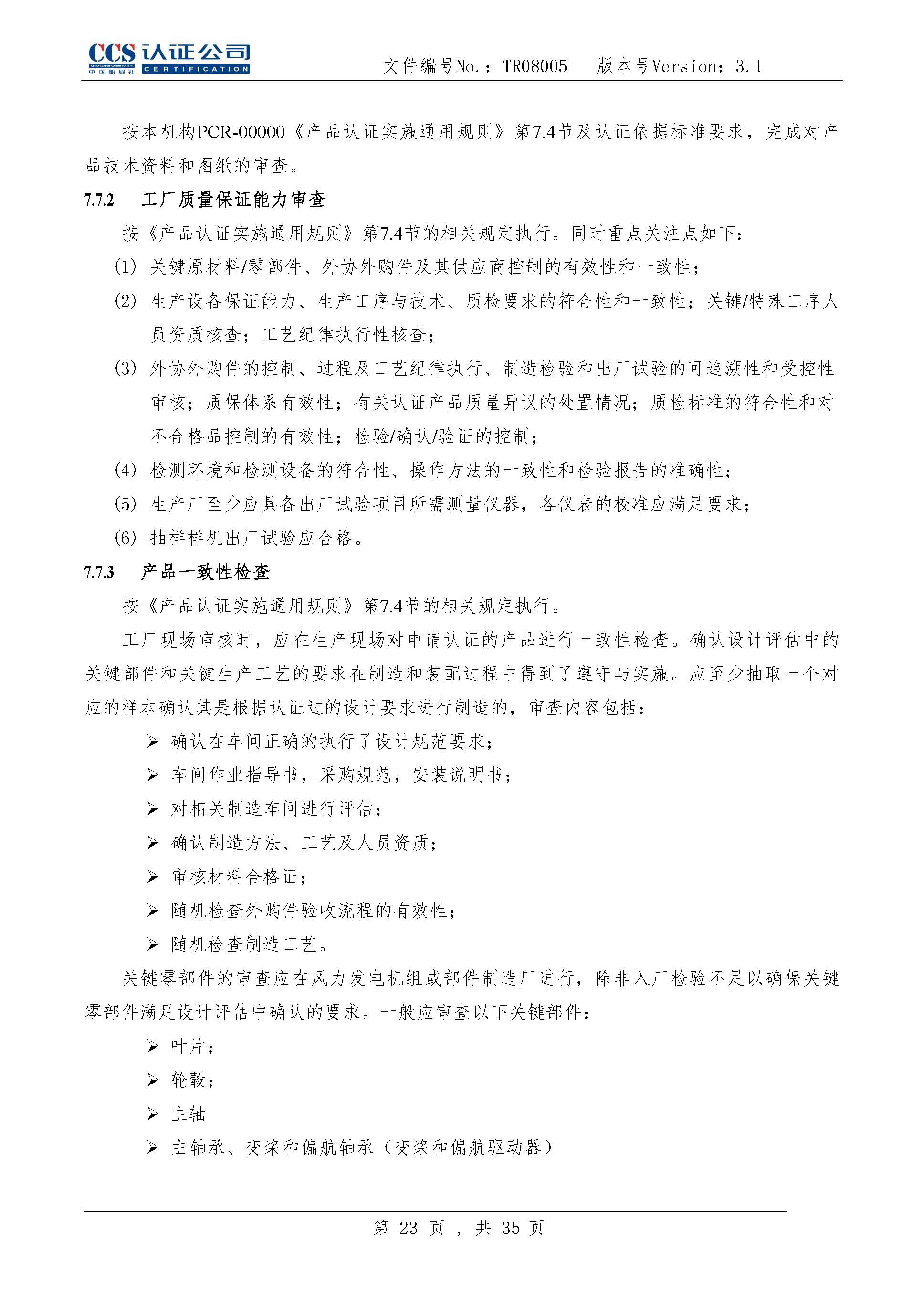 TR08003-3.1 陆上风力发电机组整机产品认证实施专用规则