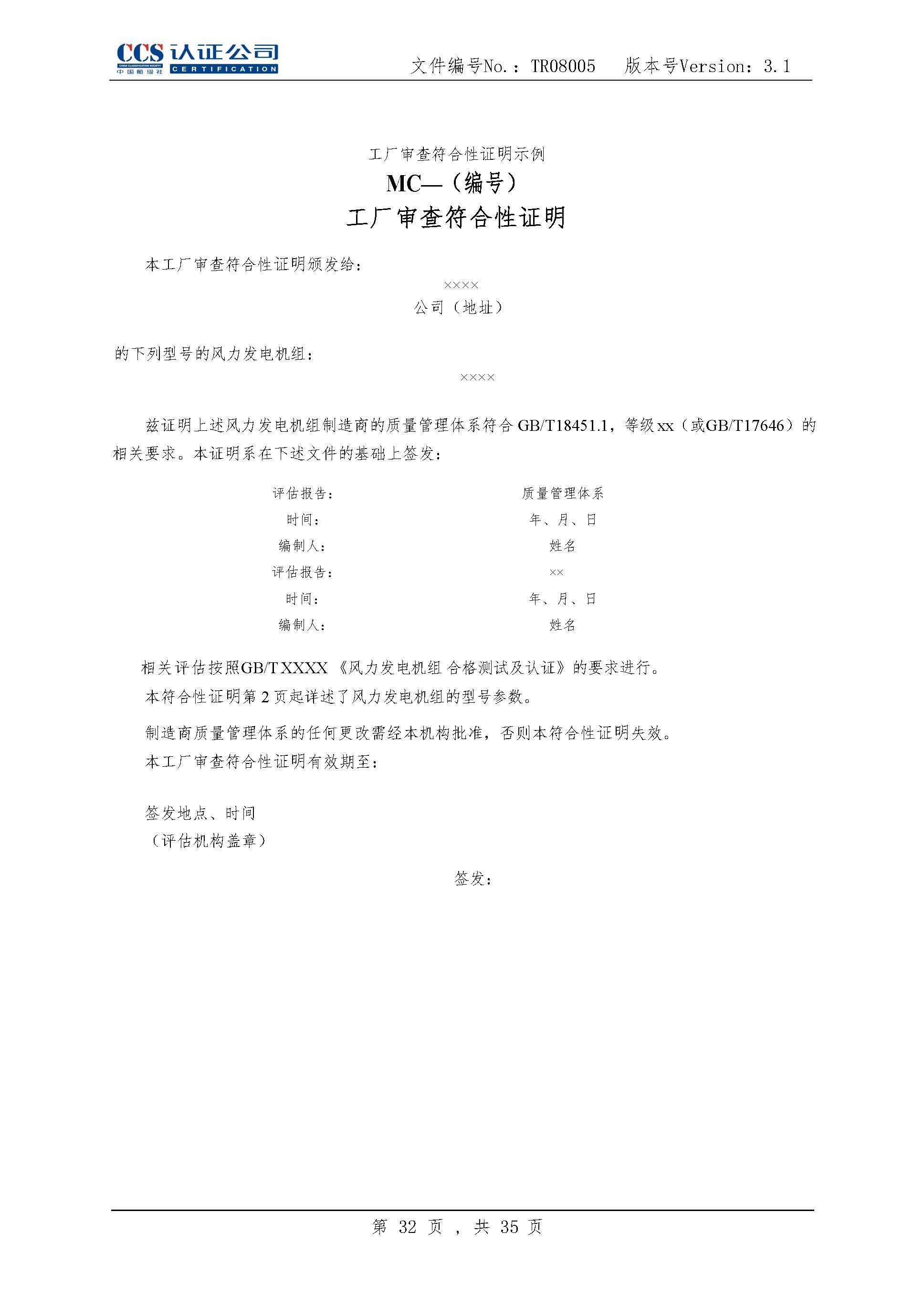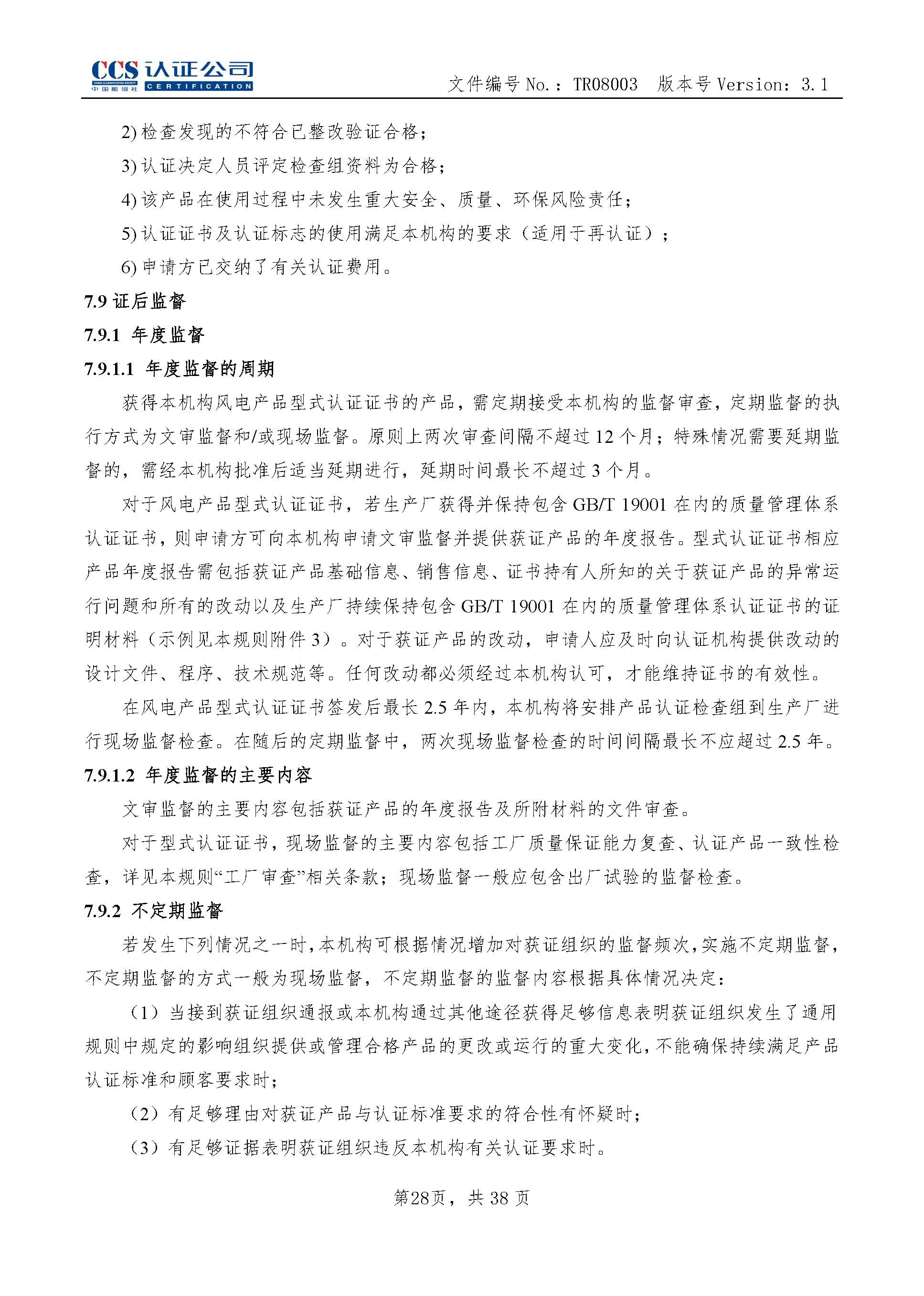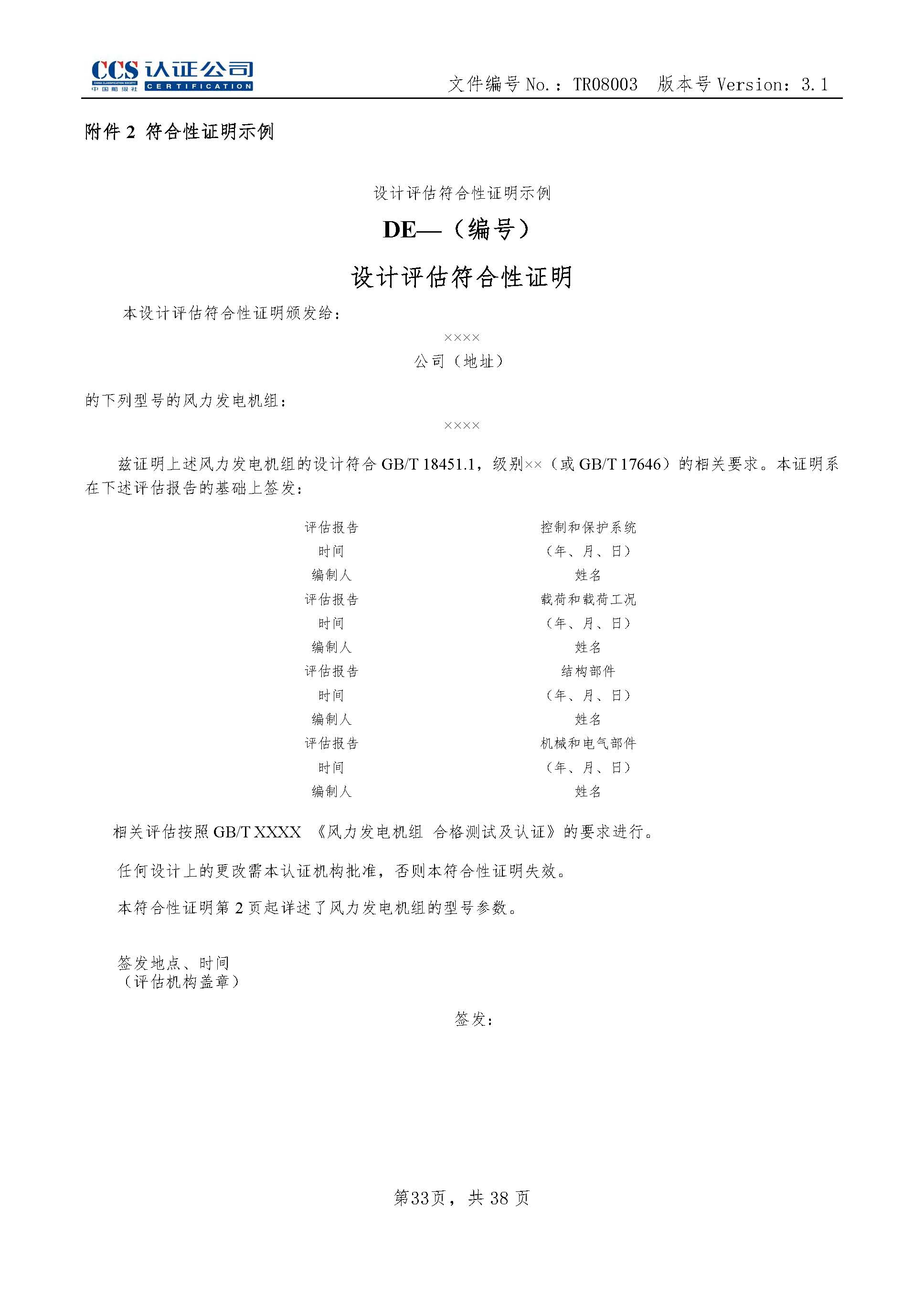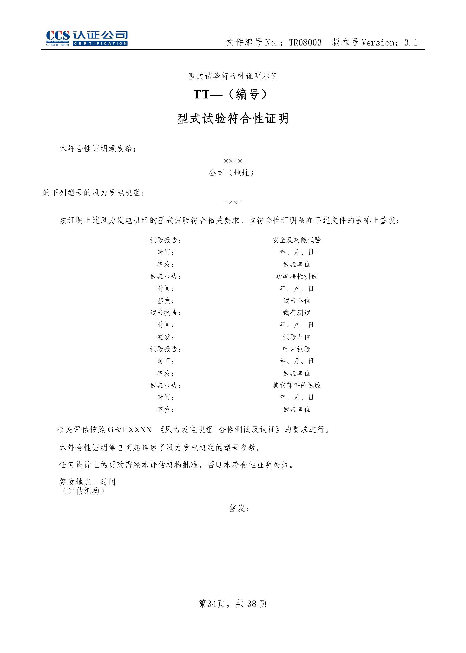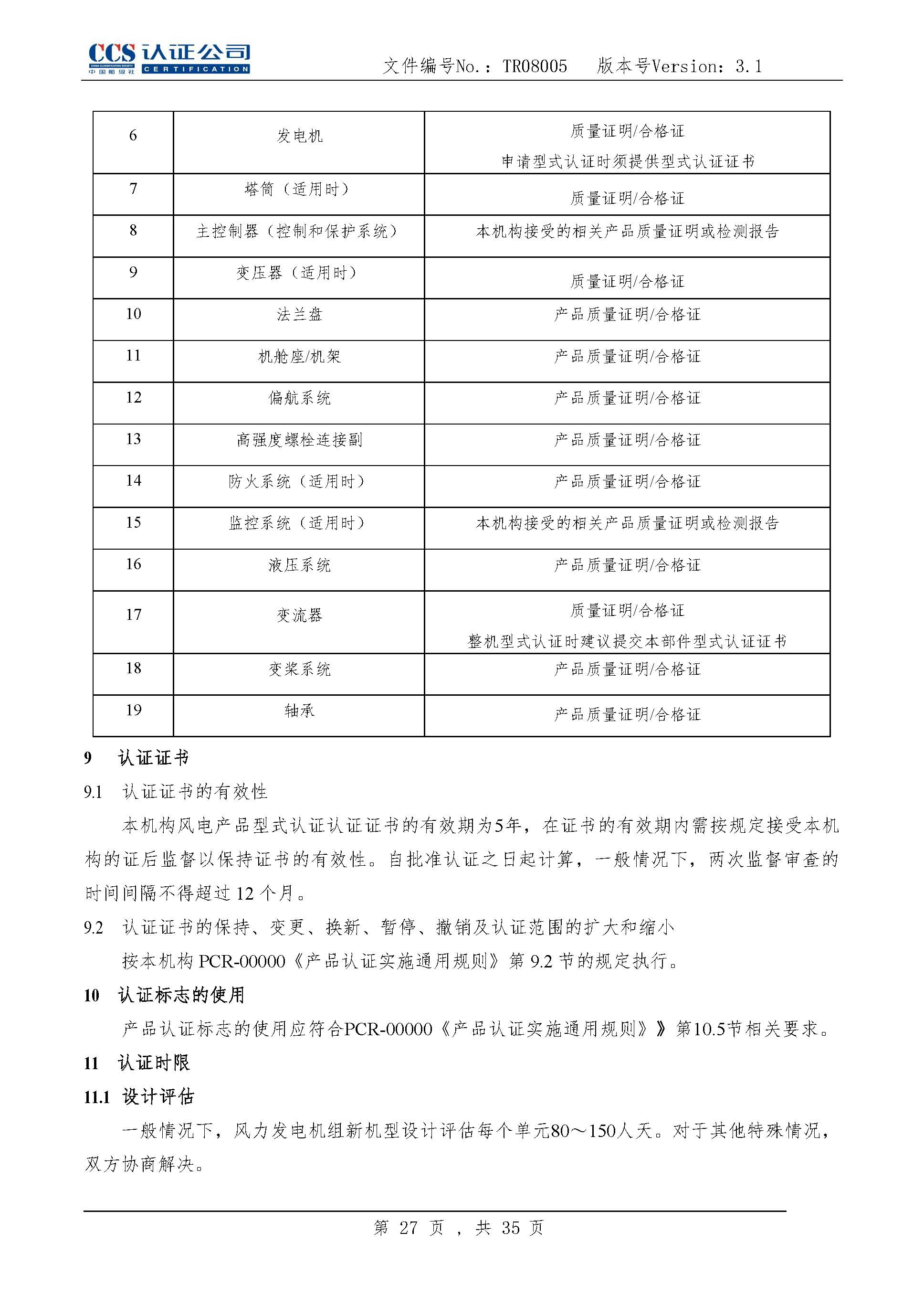 TR08003-3.1 陆上风力发电机组整机产品认证实施专用规则
