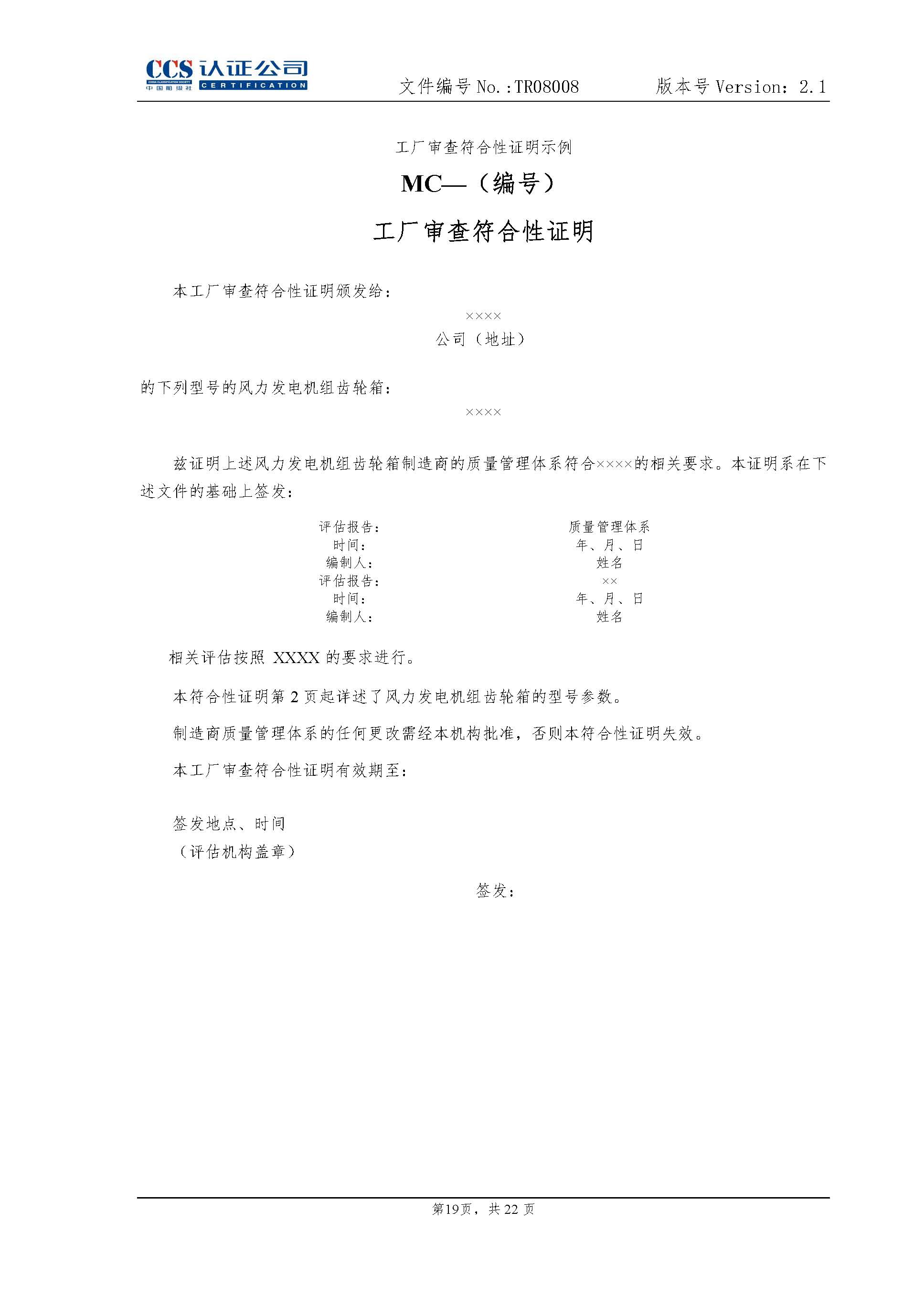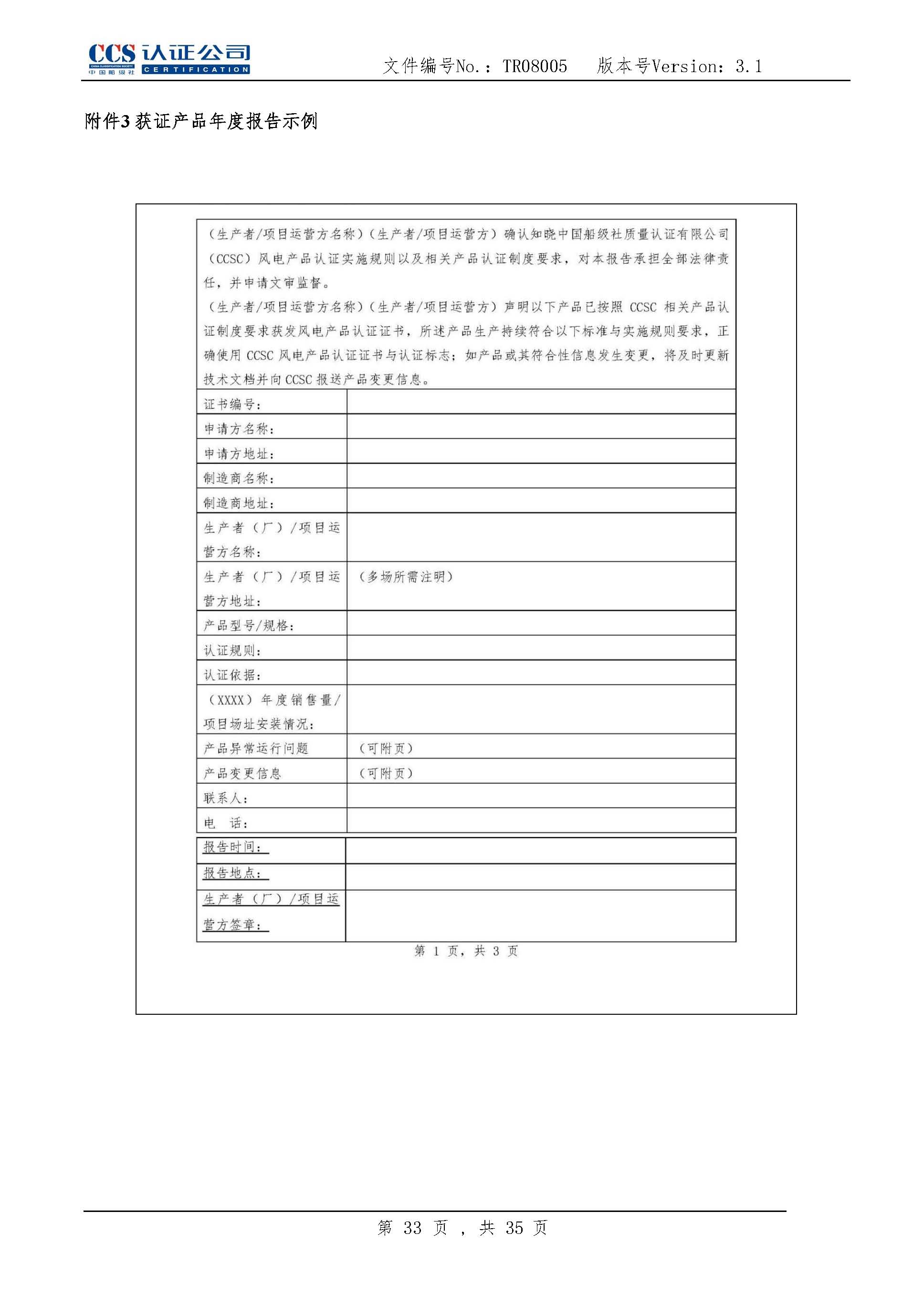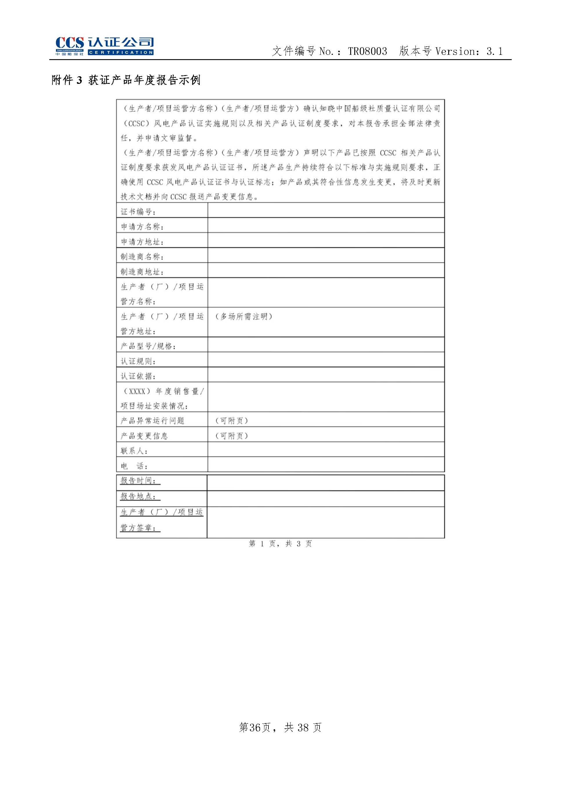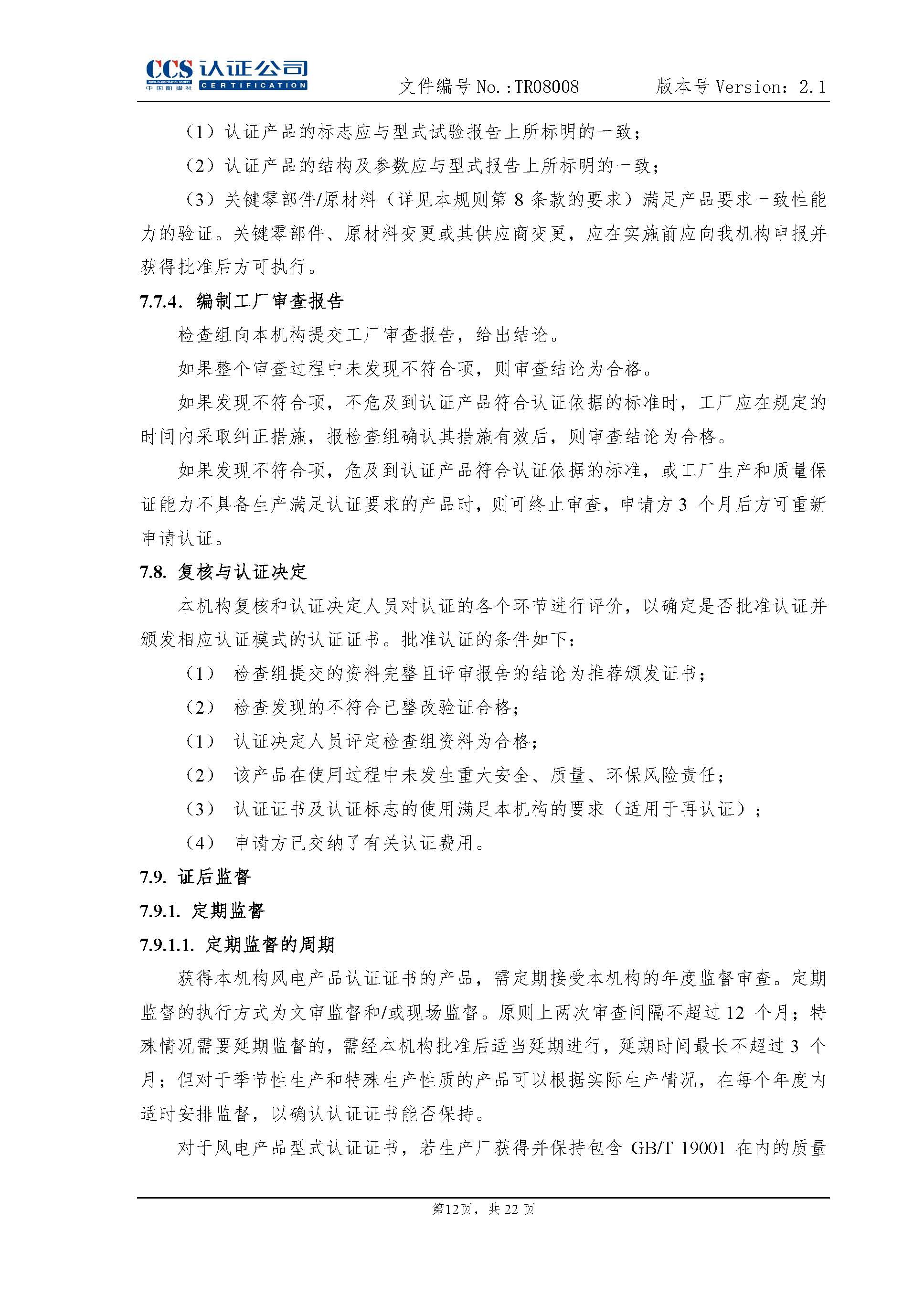 TR08003-3.1 陆上风力发电机组整机产品认证实施专用规则