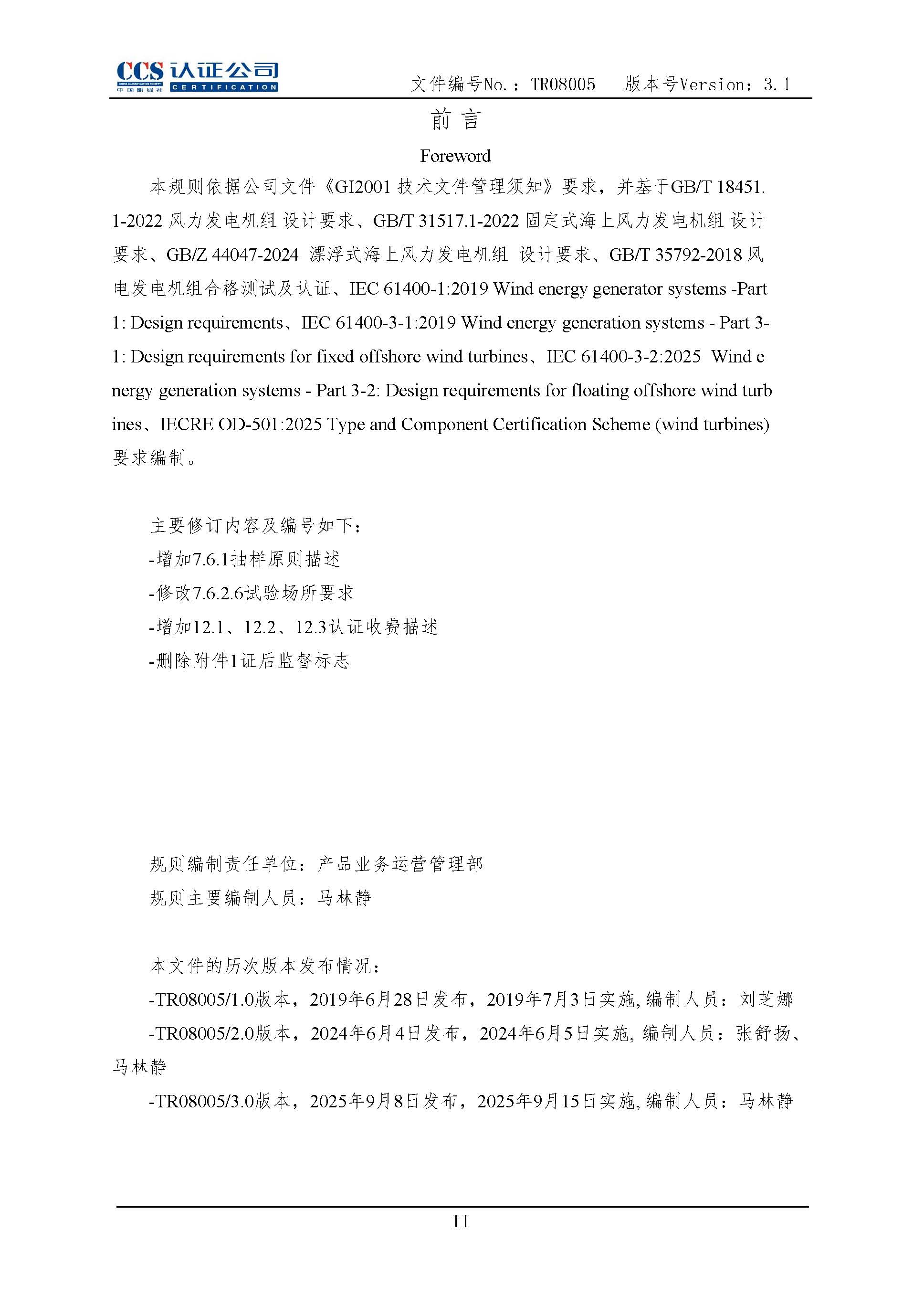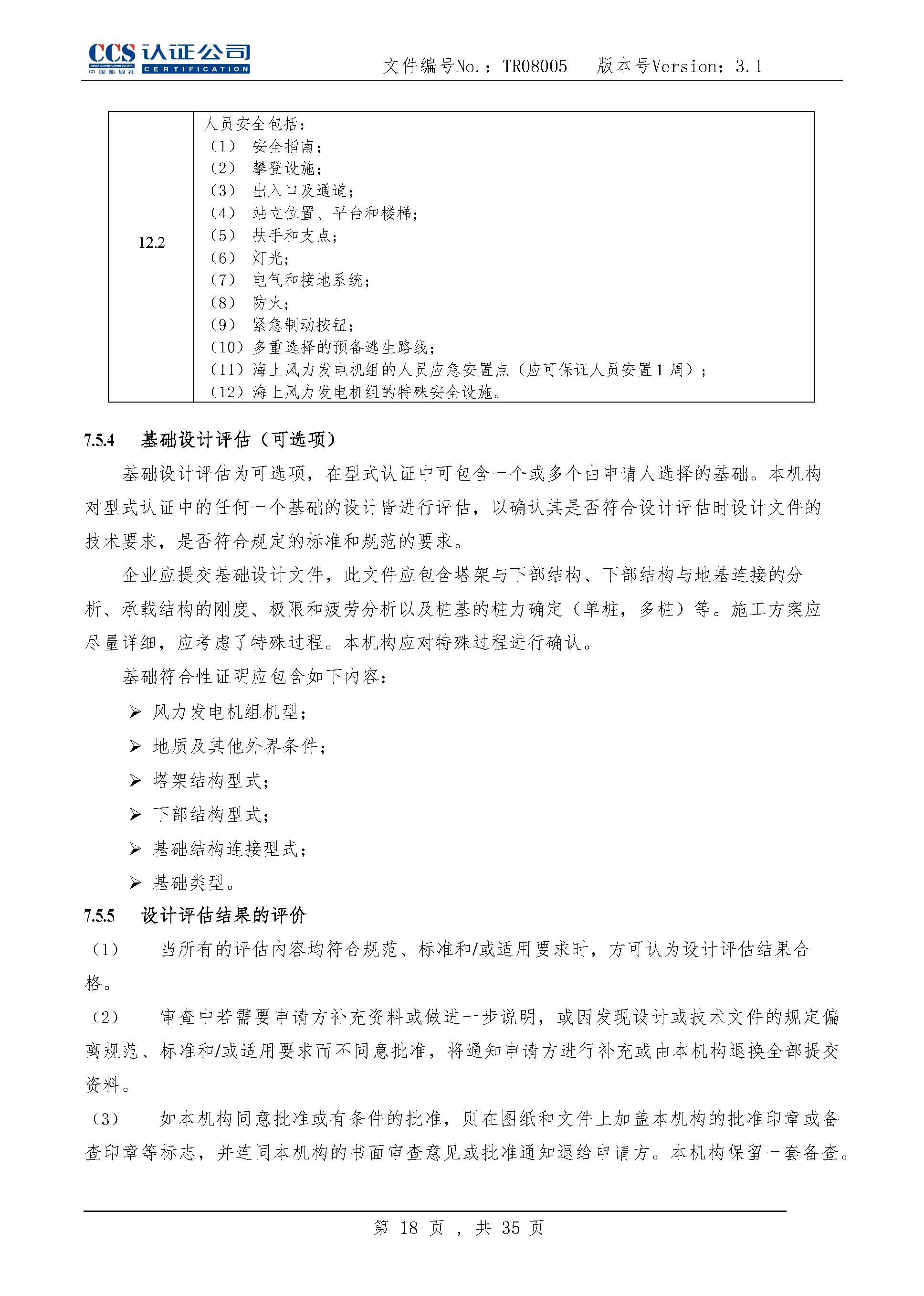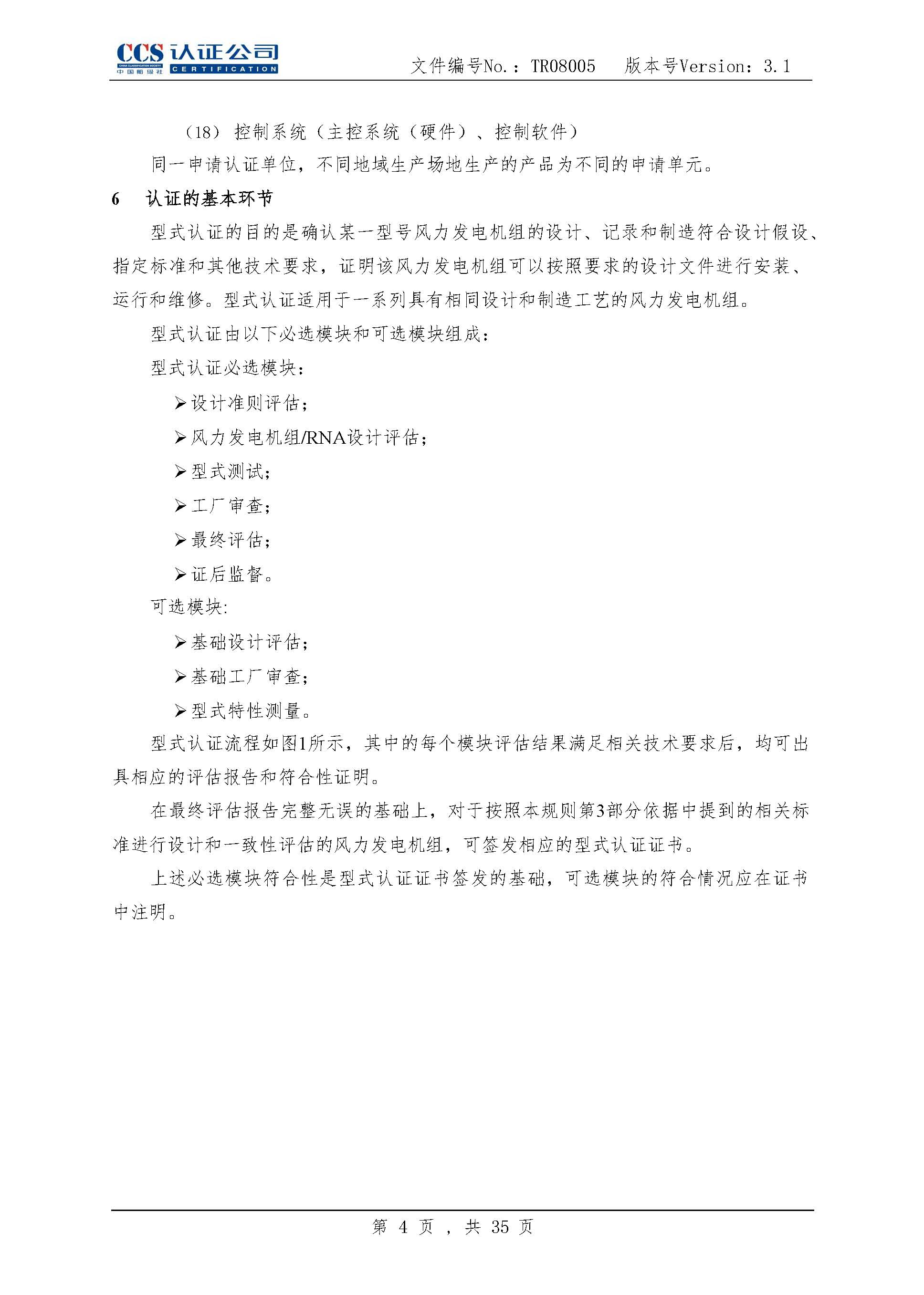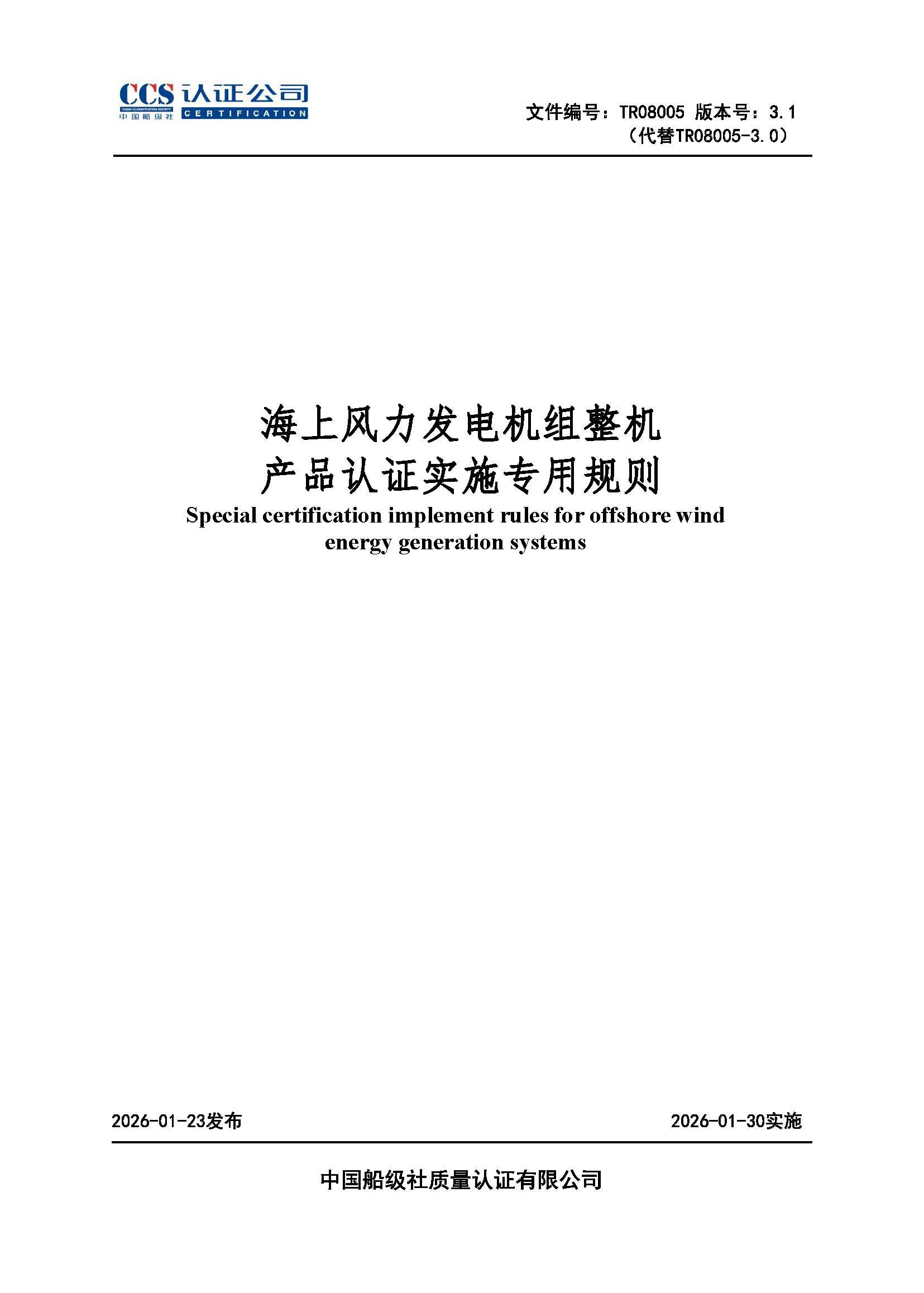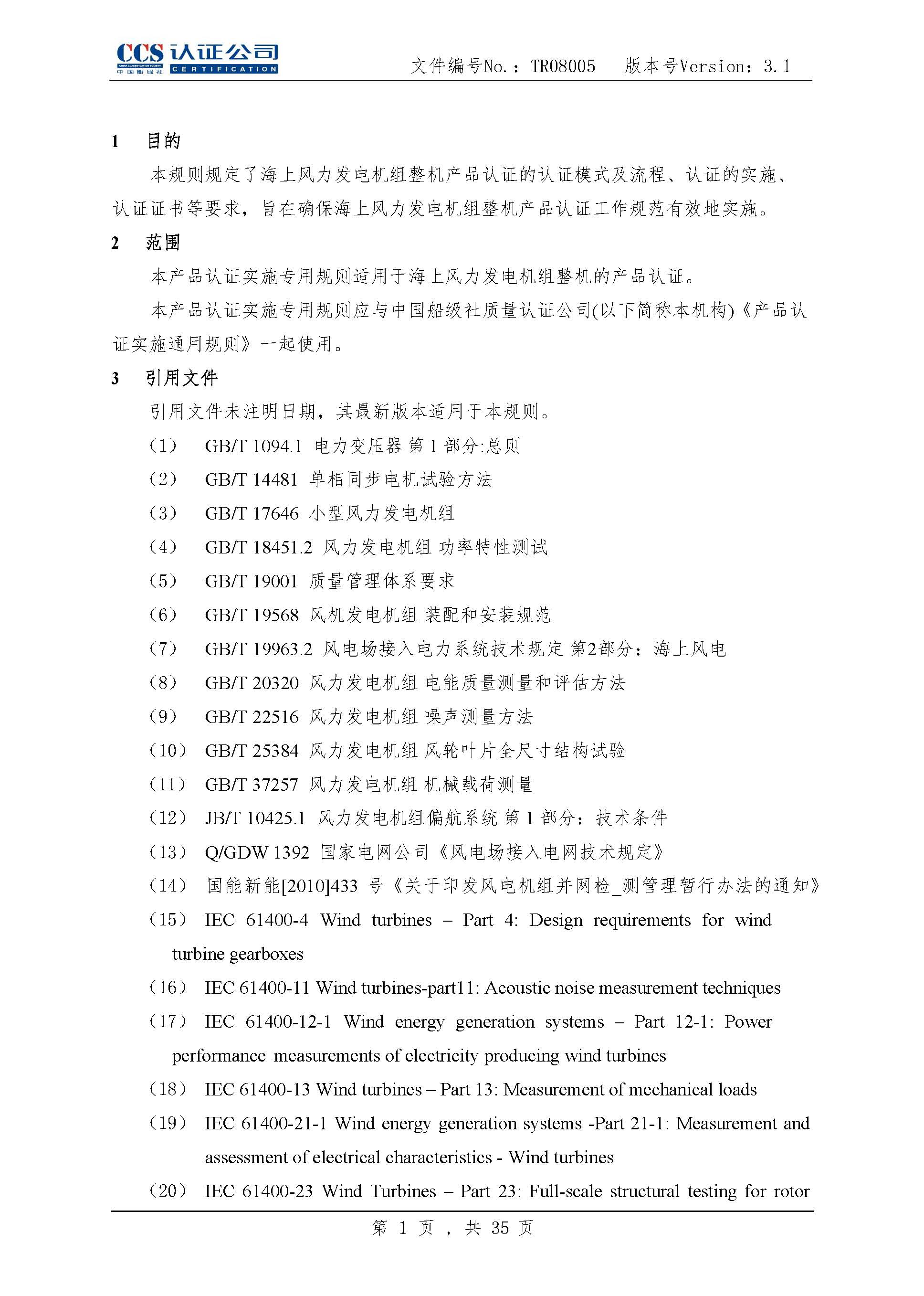 TR08005-3.1 海上风力发电机组整机产品认证实施专用规则