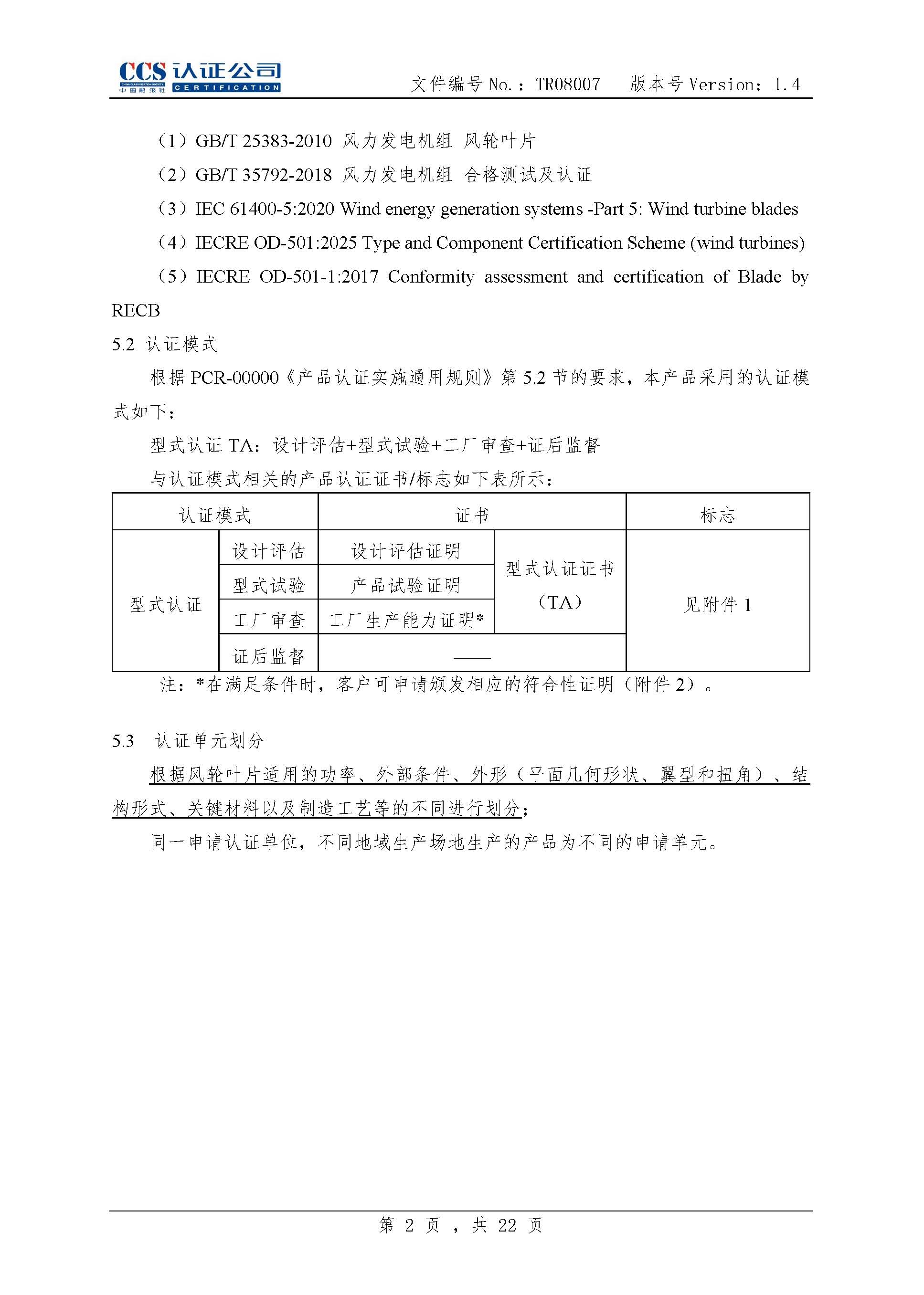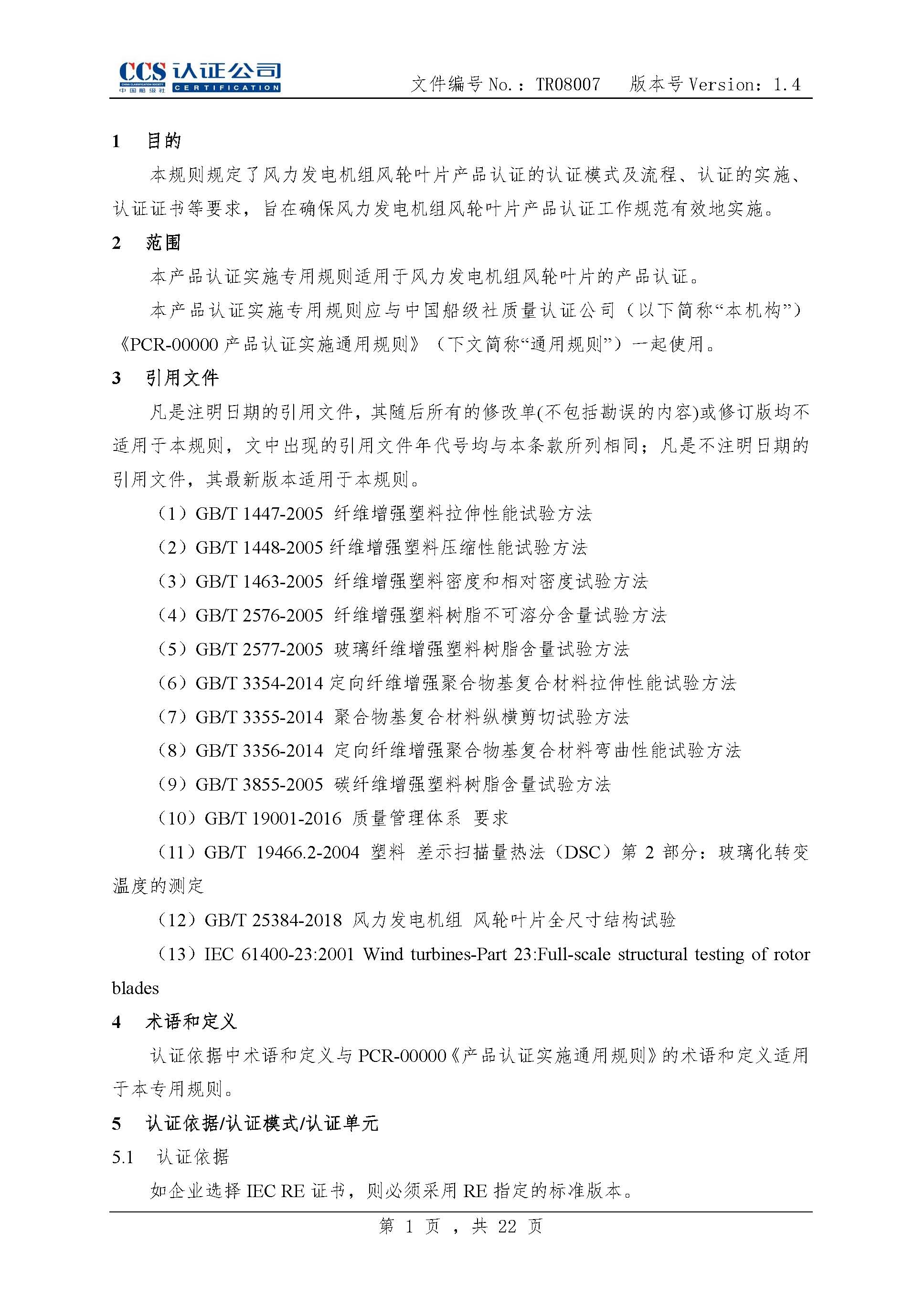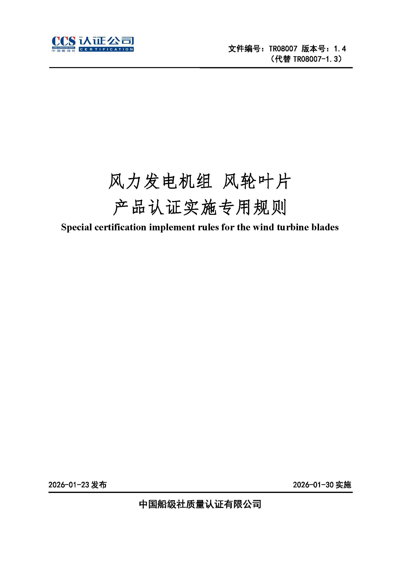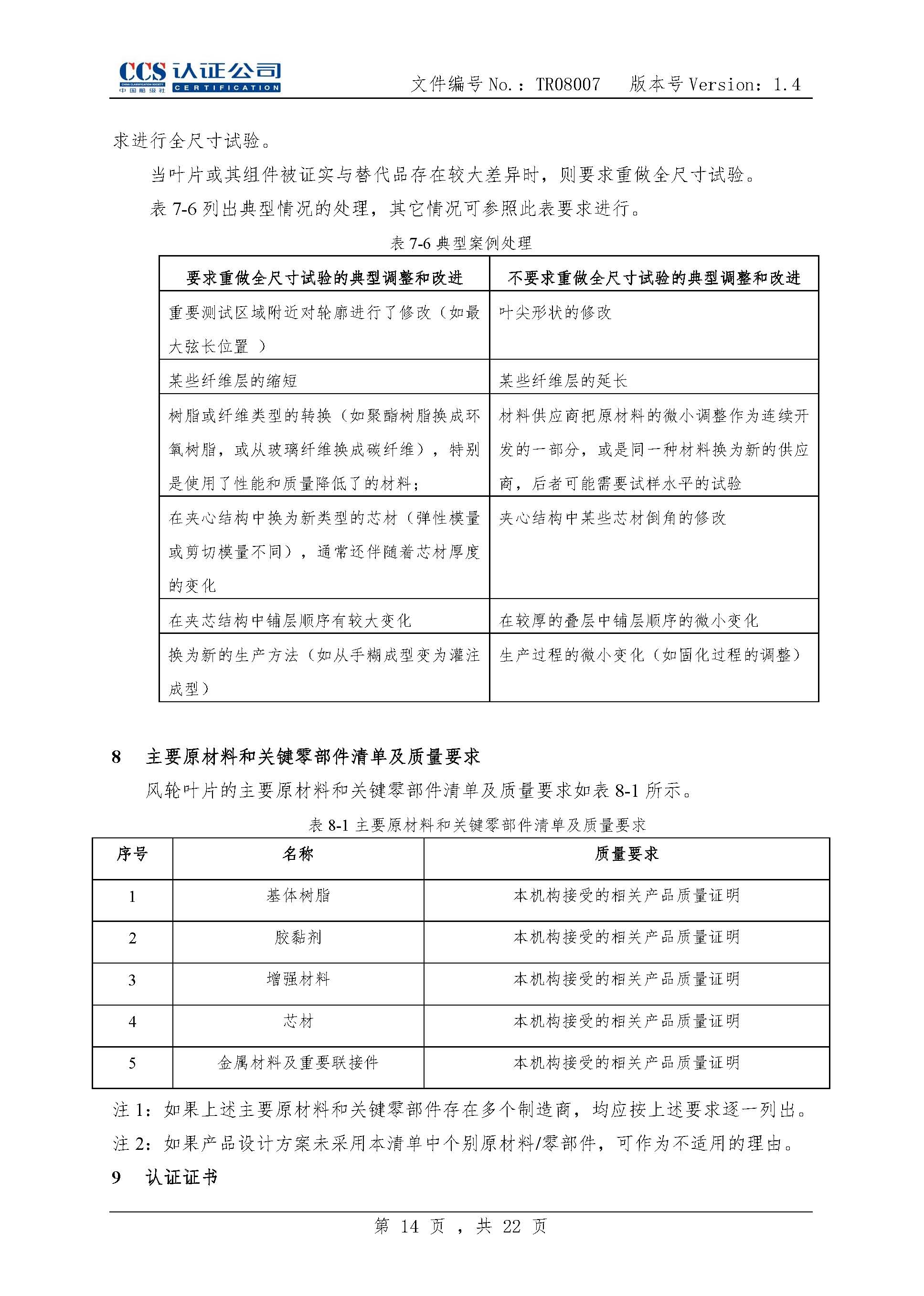 TR08007-1.4 风力发电机组风轮叶片产品认证实施专用规则