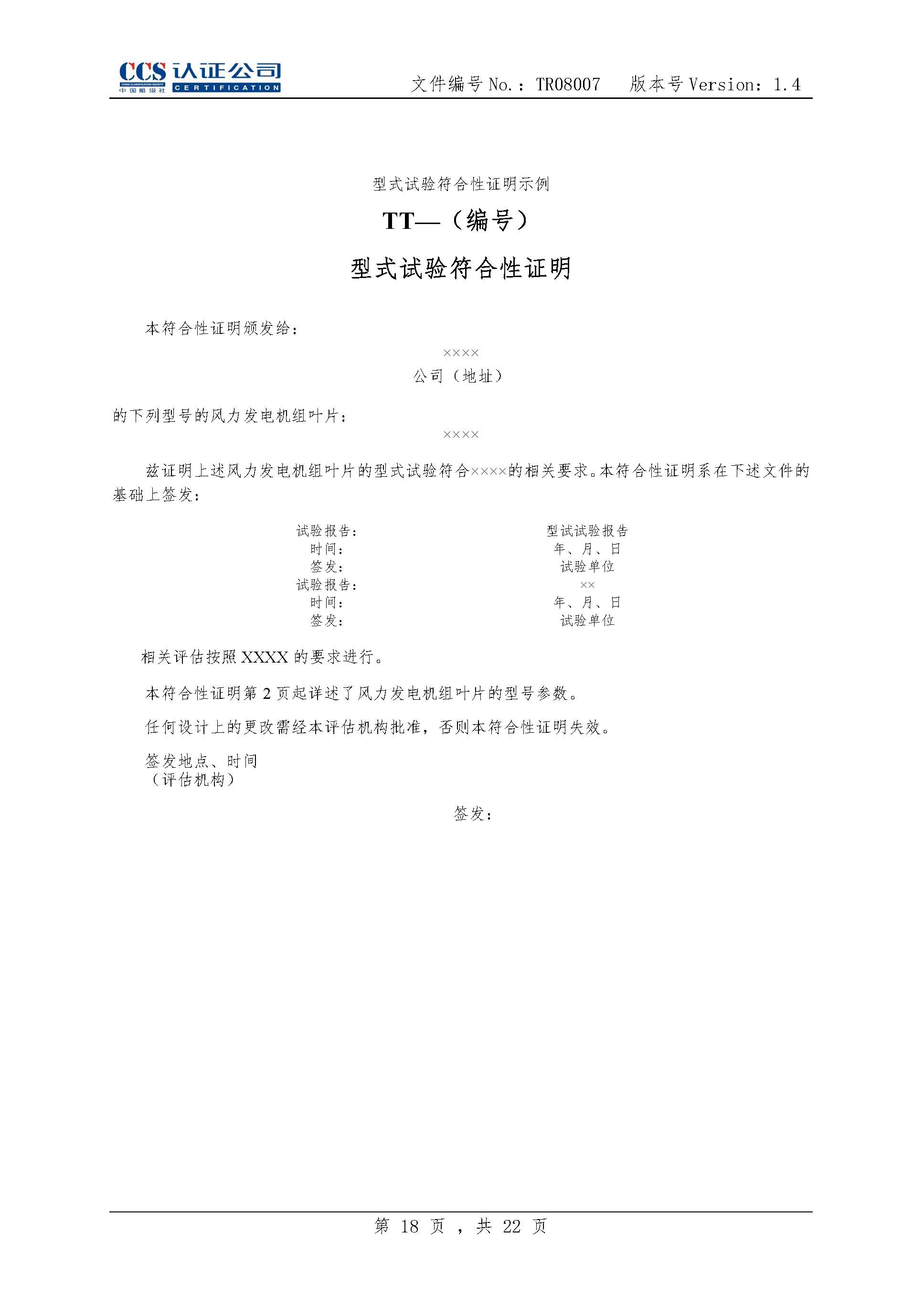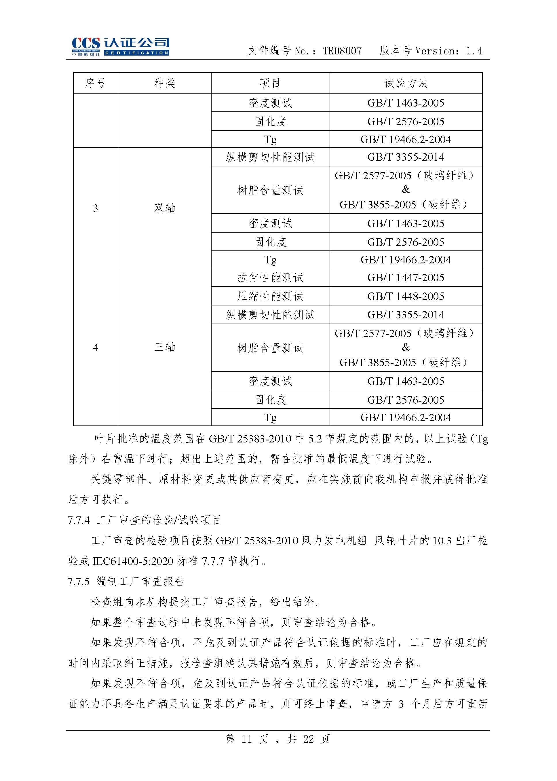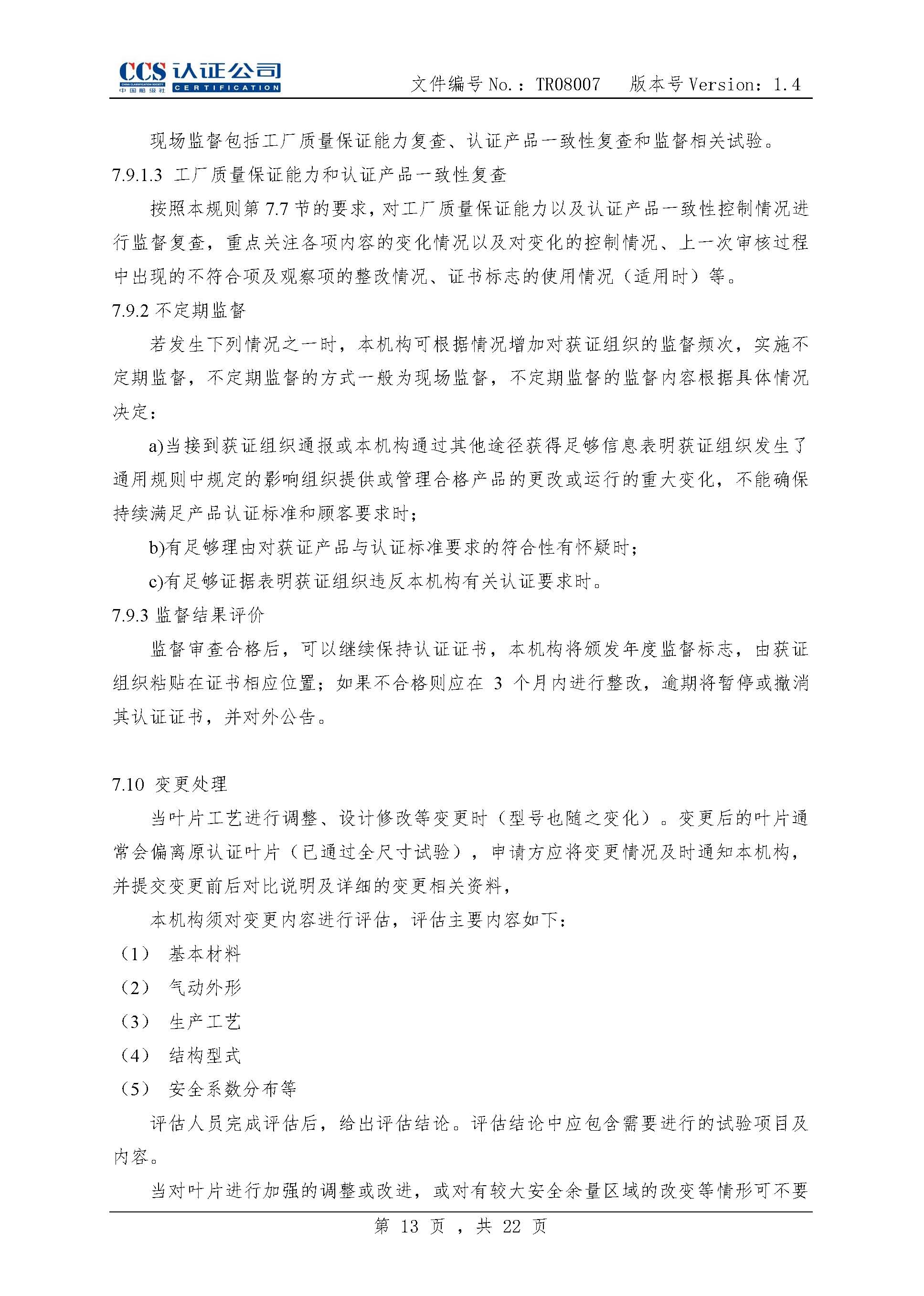 TR08007-1.4 风力发电机组风轮叶片产品认证实施专用规则