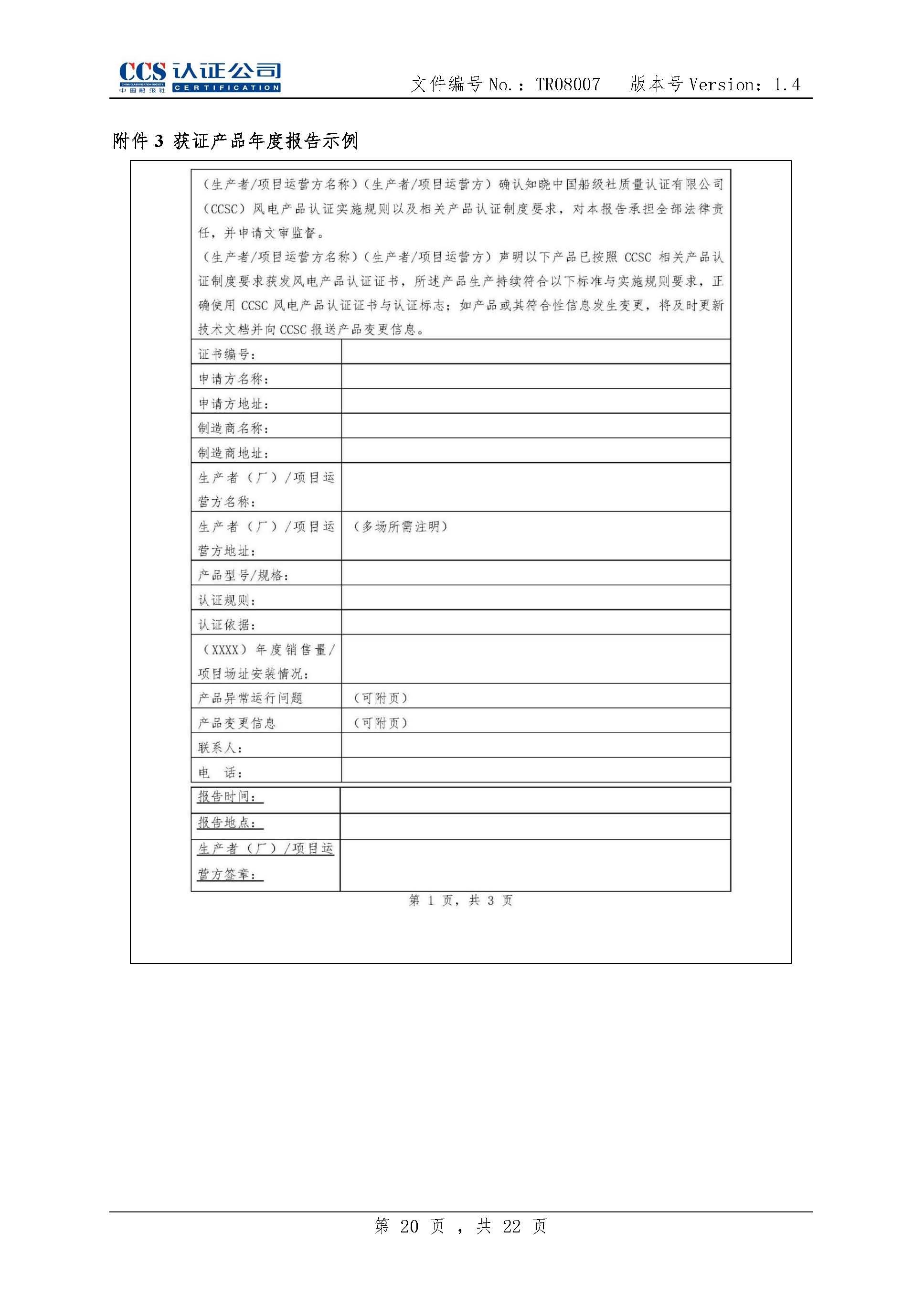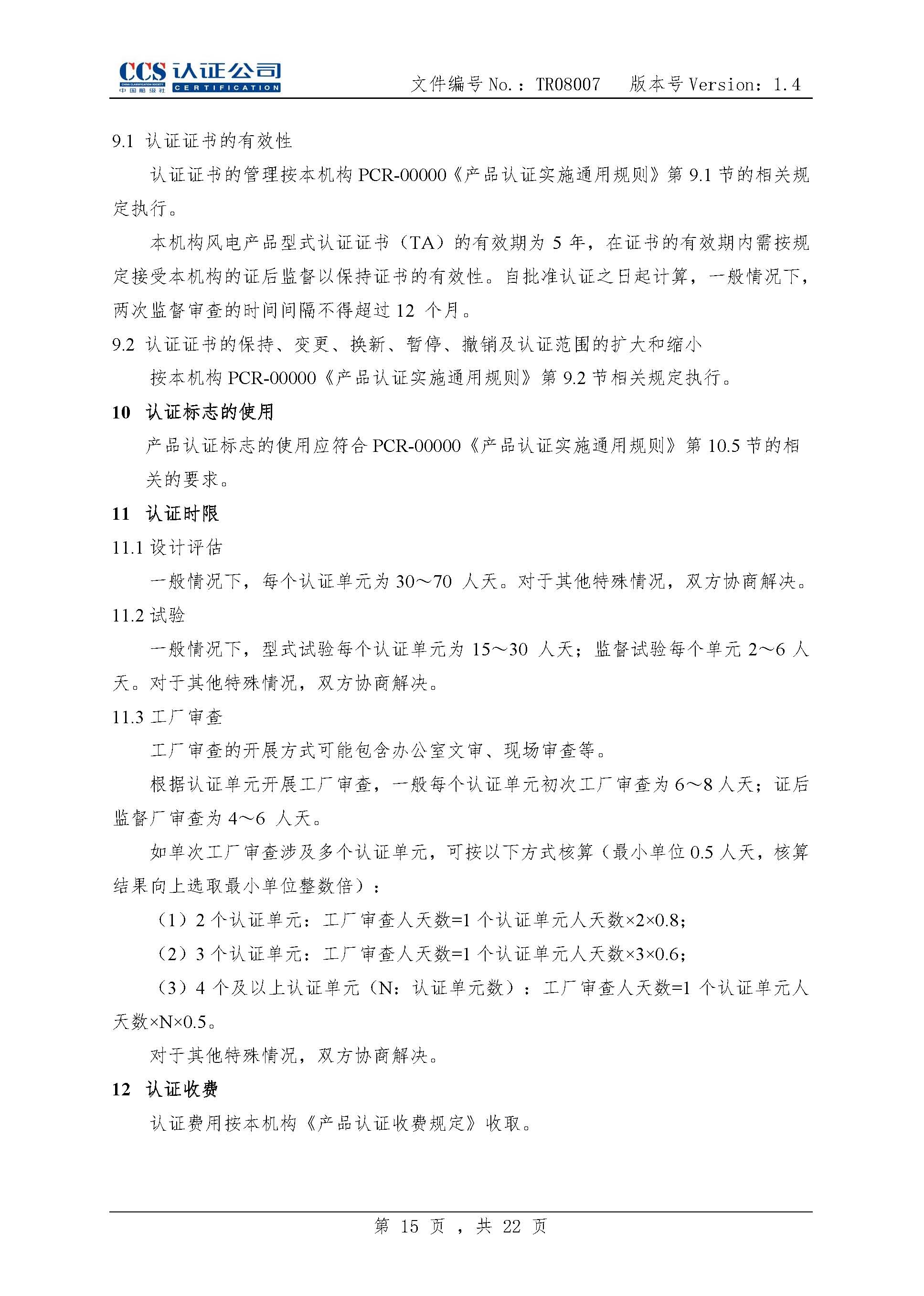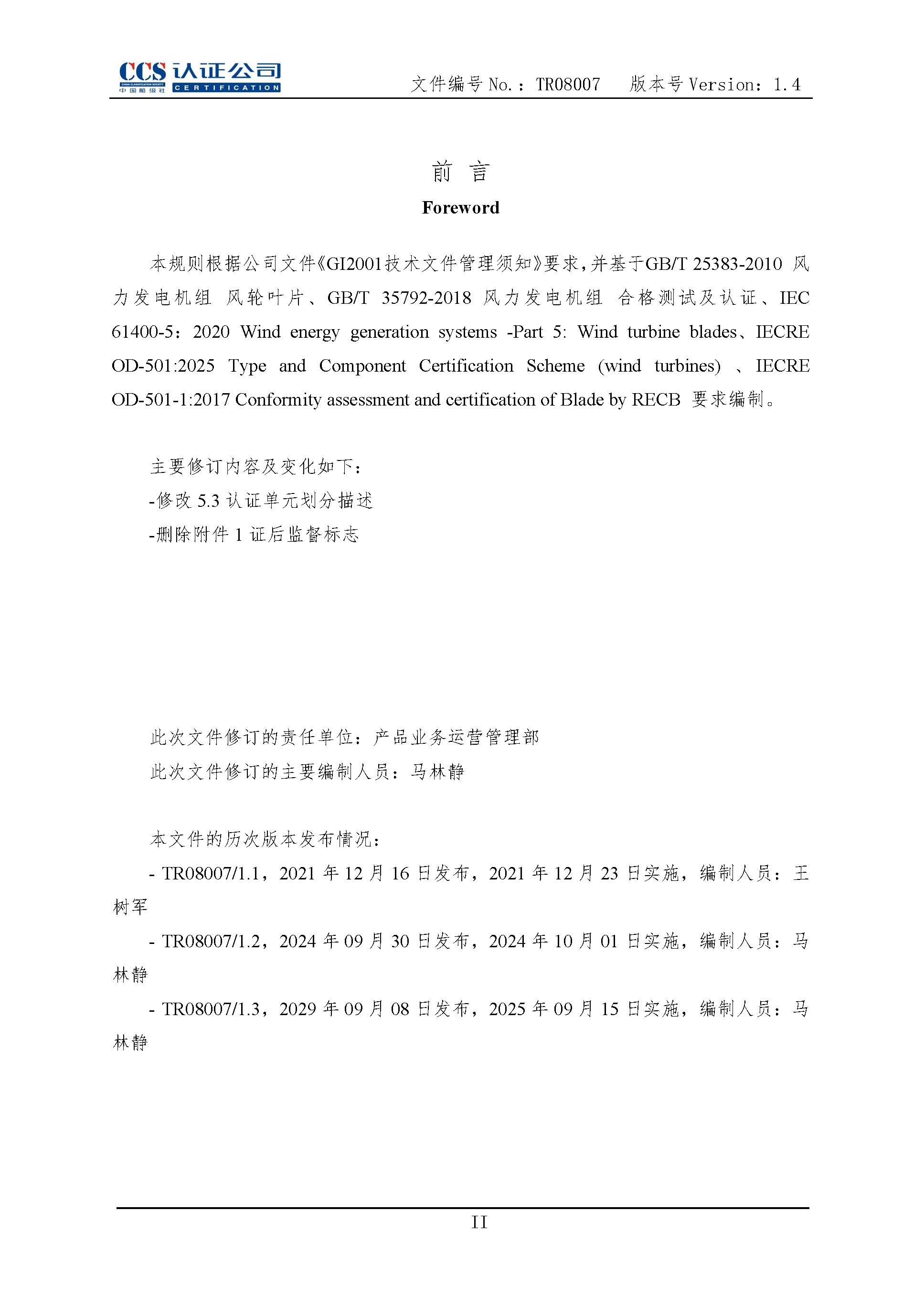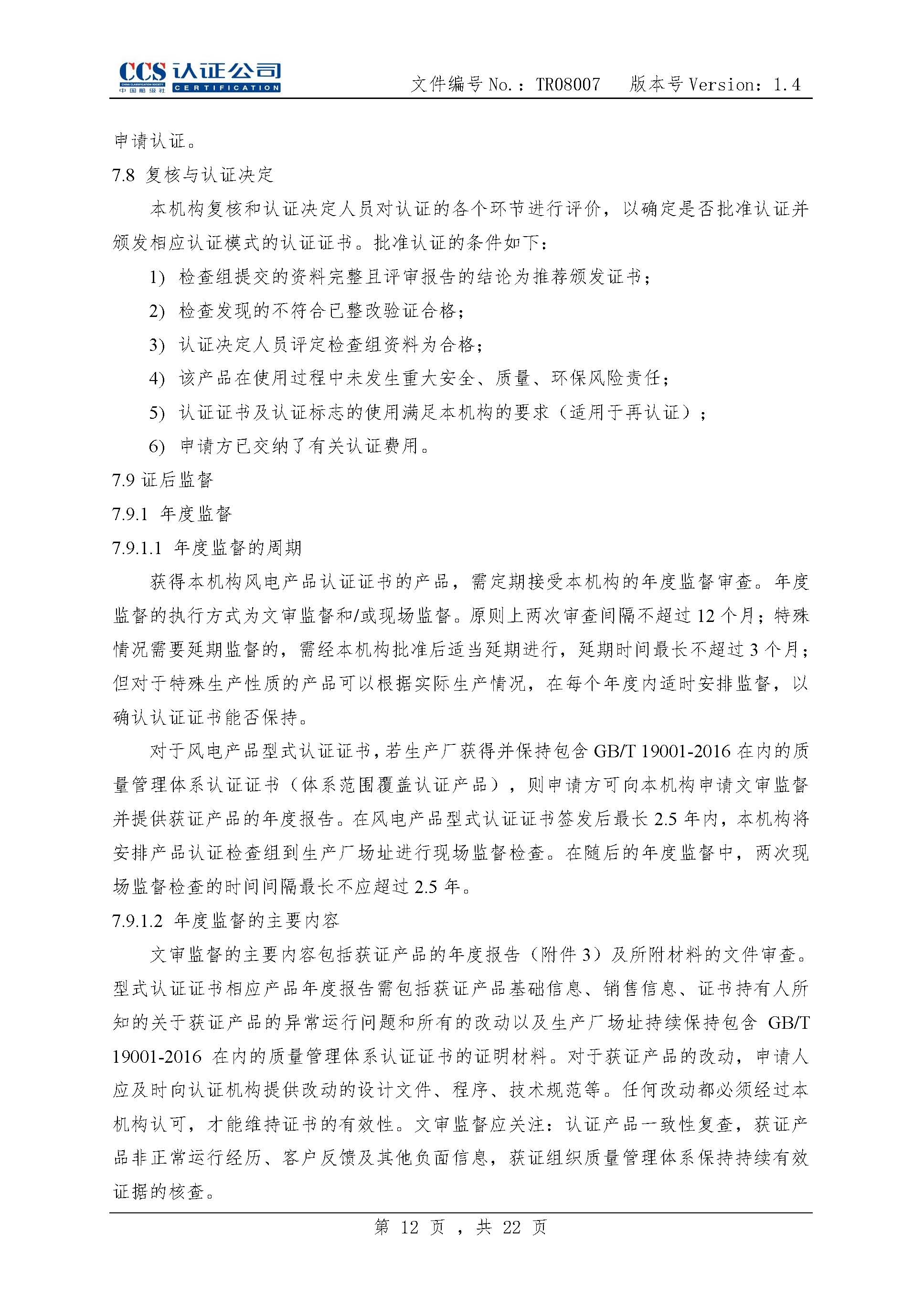 TR08007-1.4 风力发电机组风轮叶片产品认证实施专用规则
