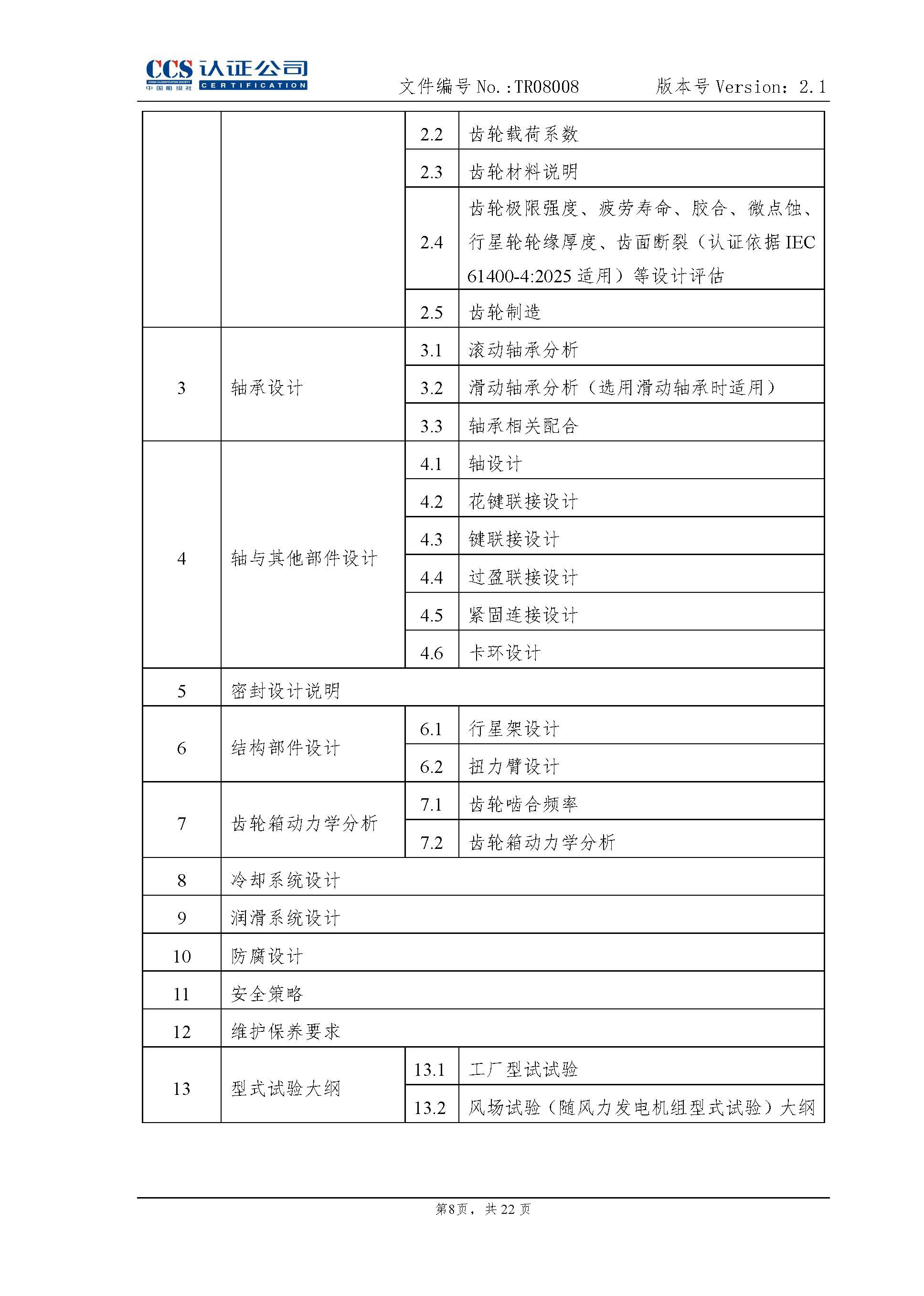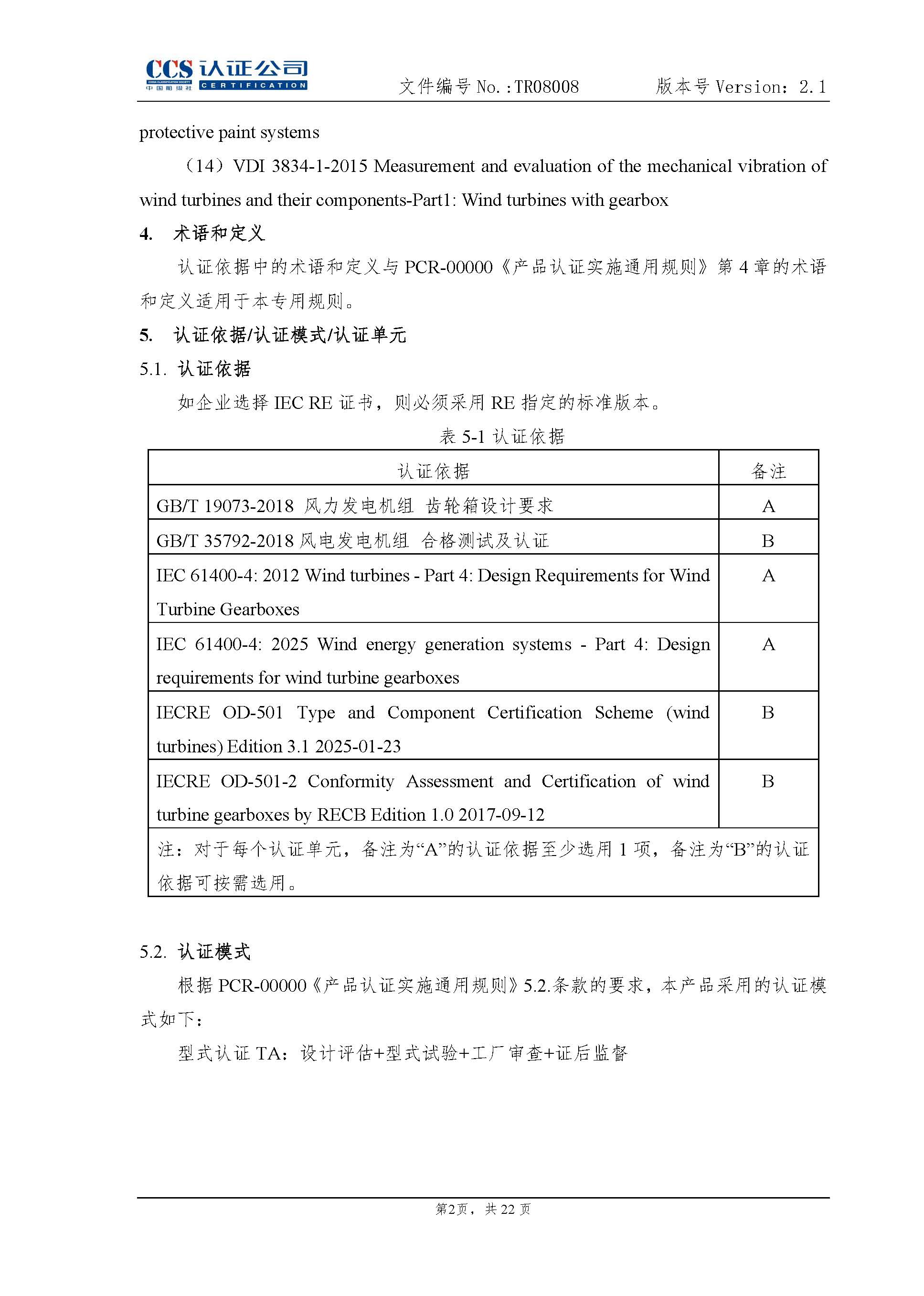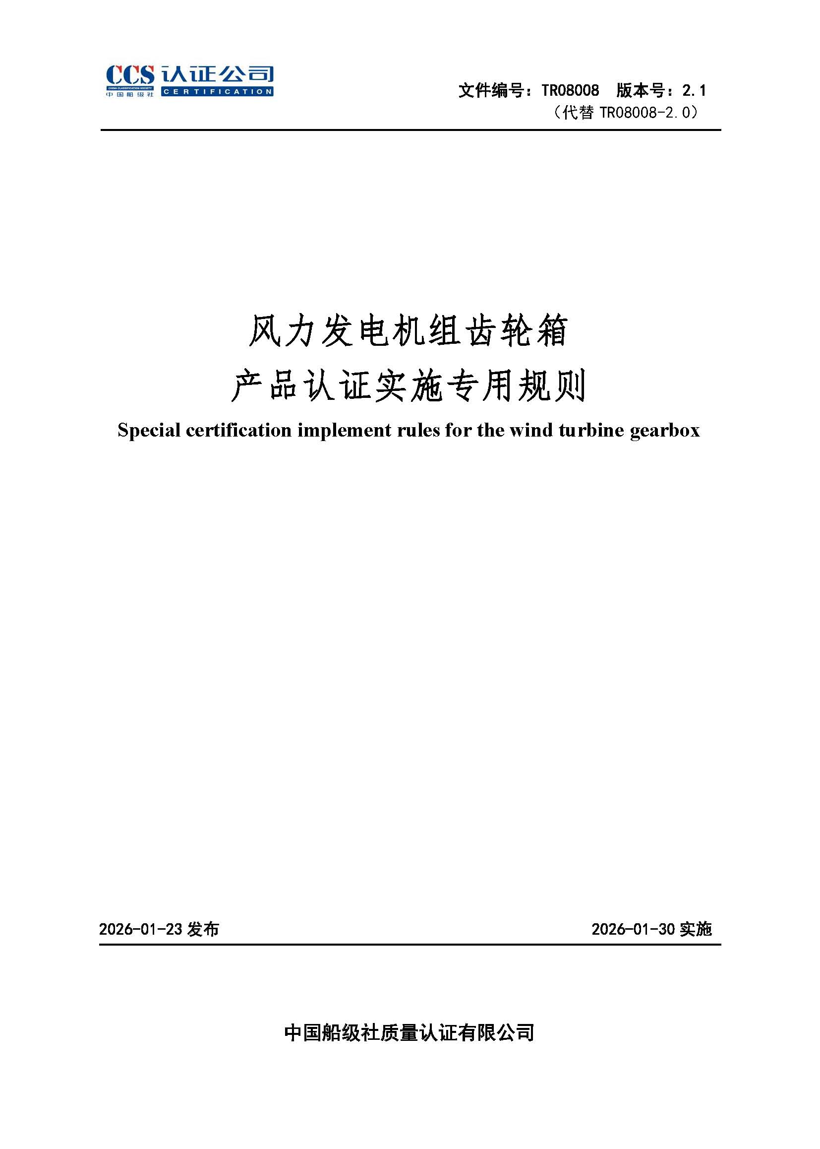 TR08008-2.1 风力发电机组齿轮箱产品认证实施专用规则