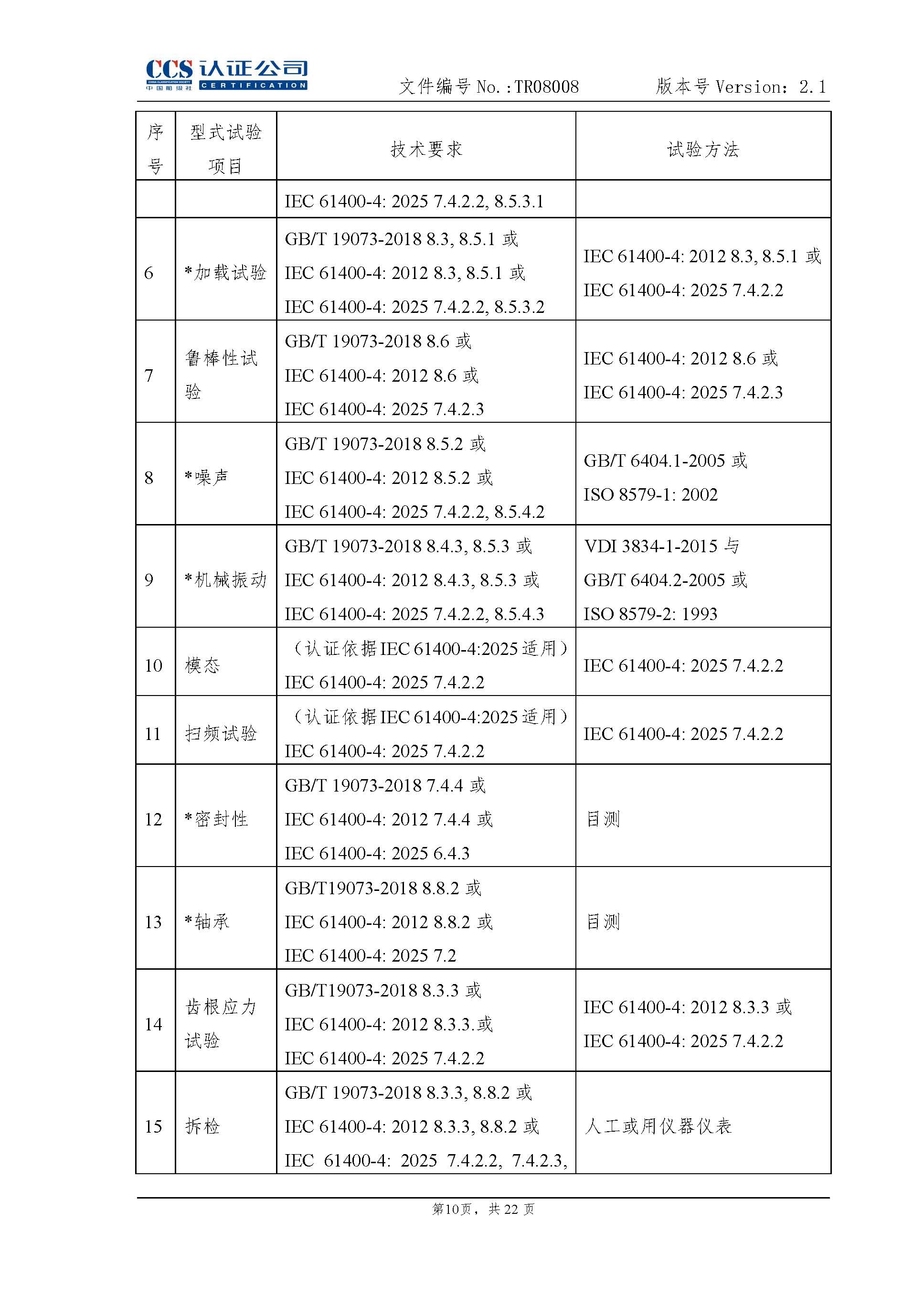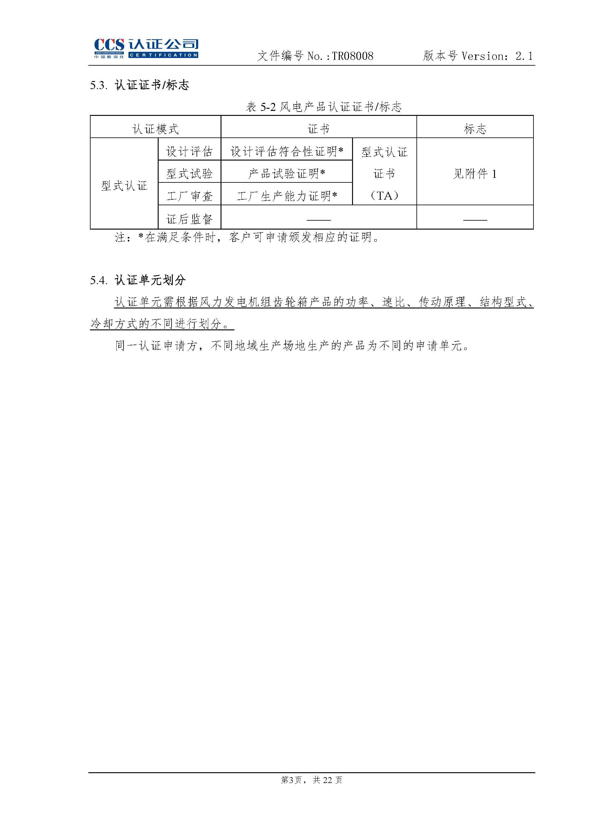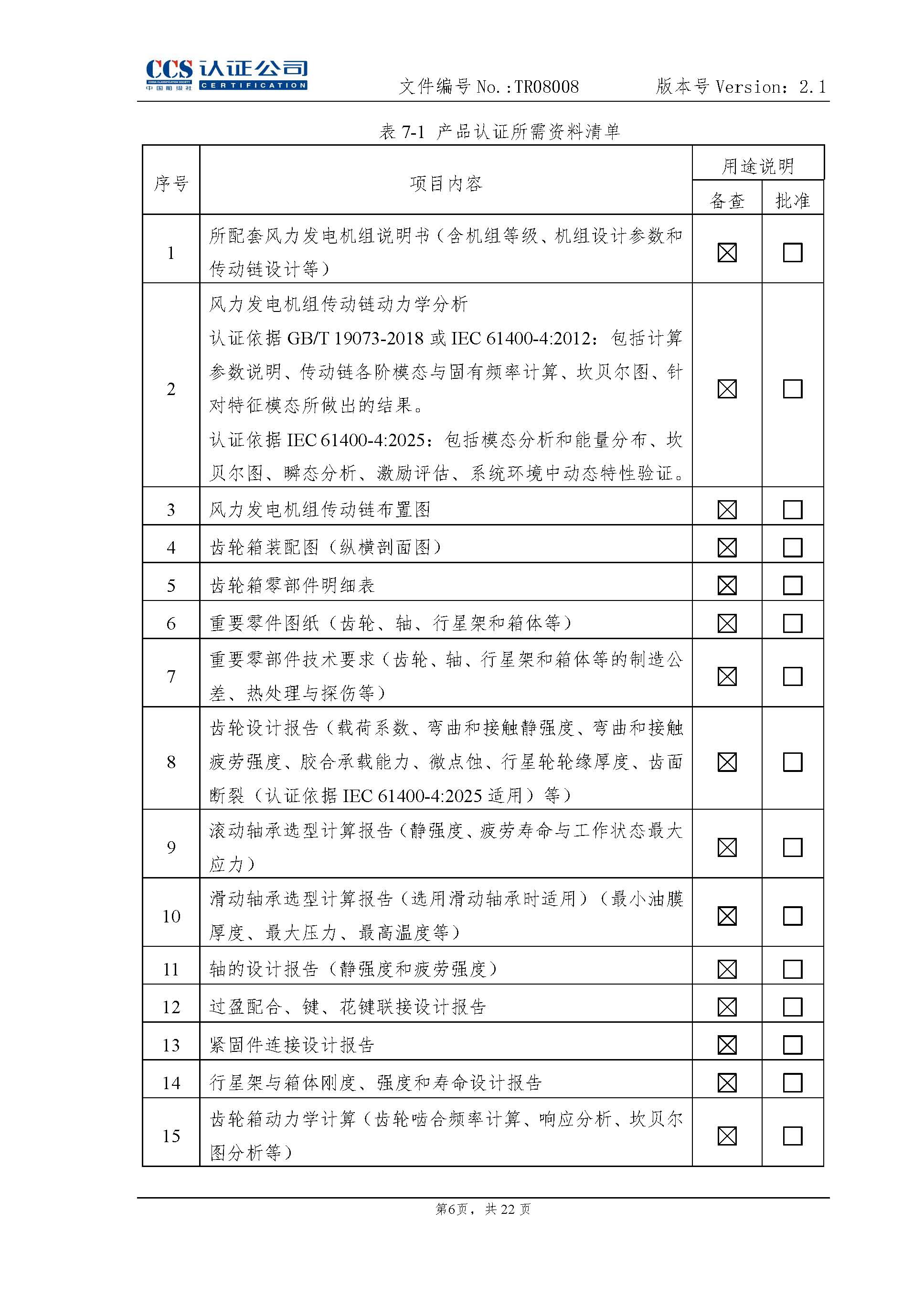 TR08008-2.1 风力发电机组齿轮箱产品认证实施专用规则