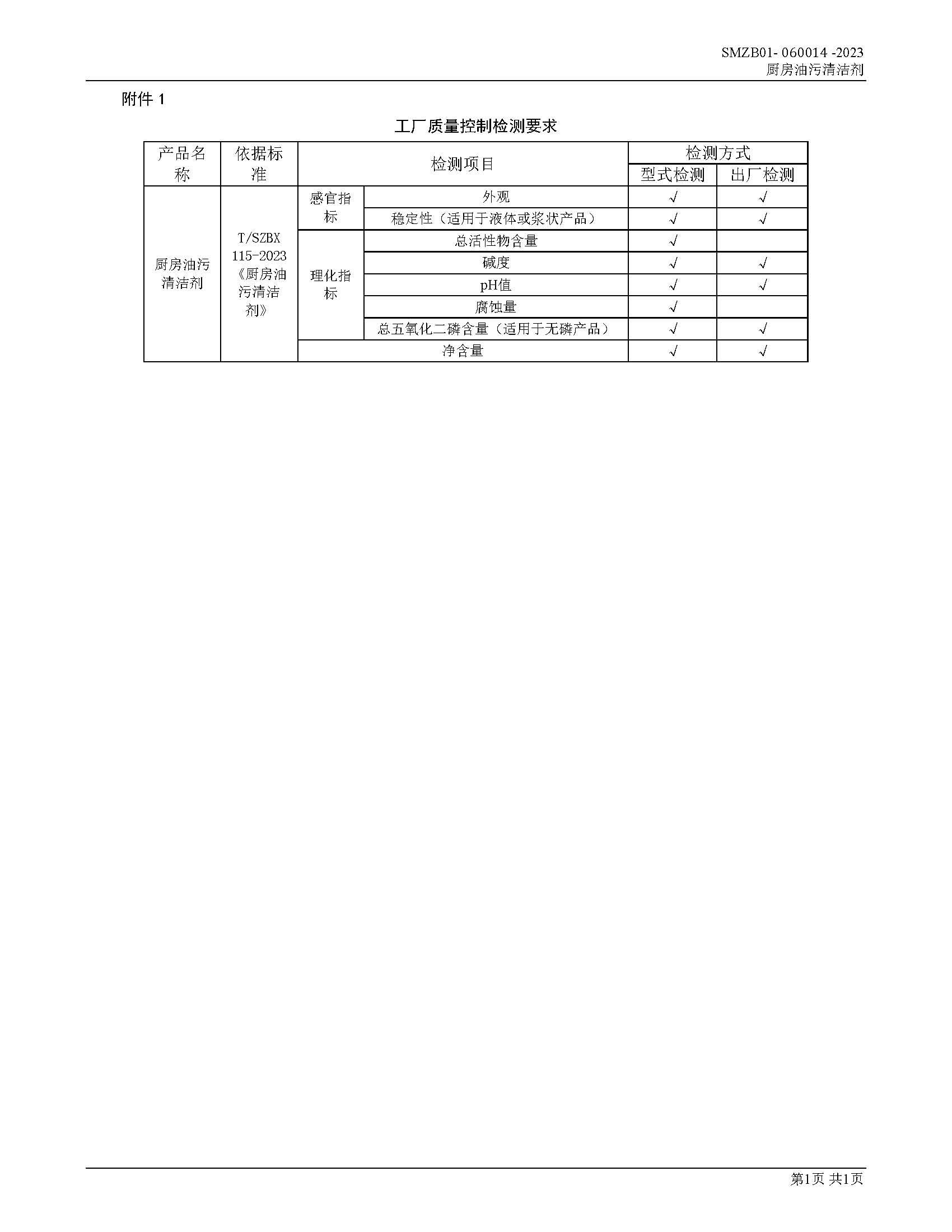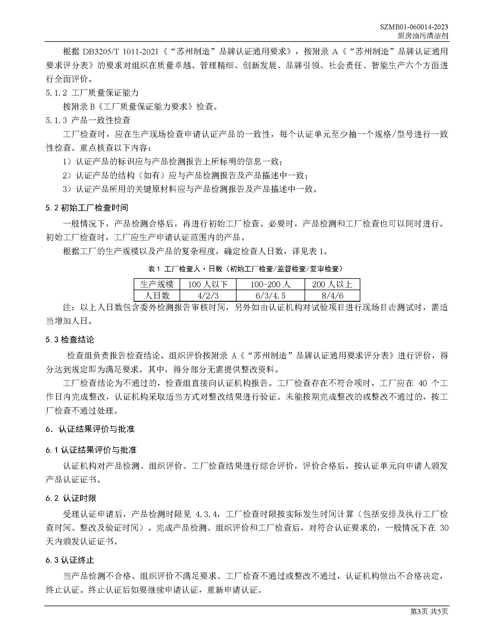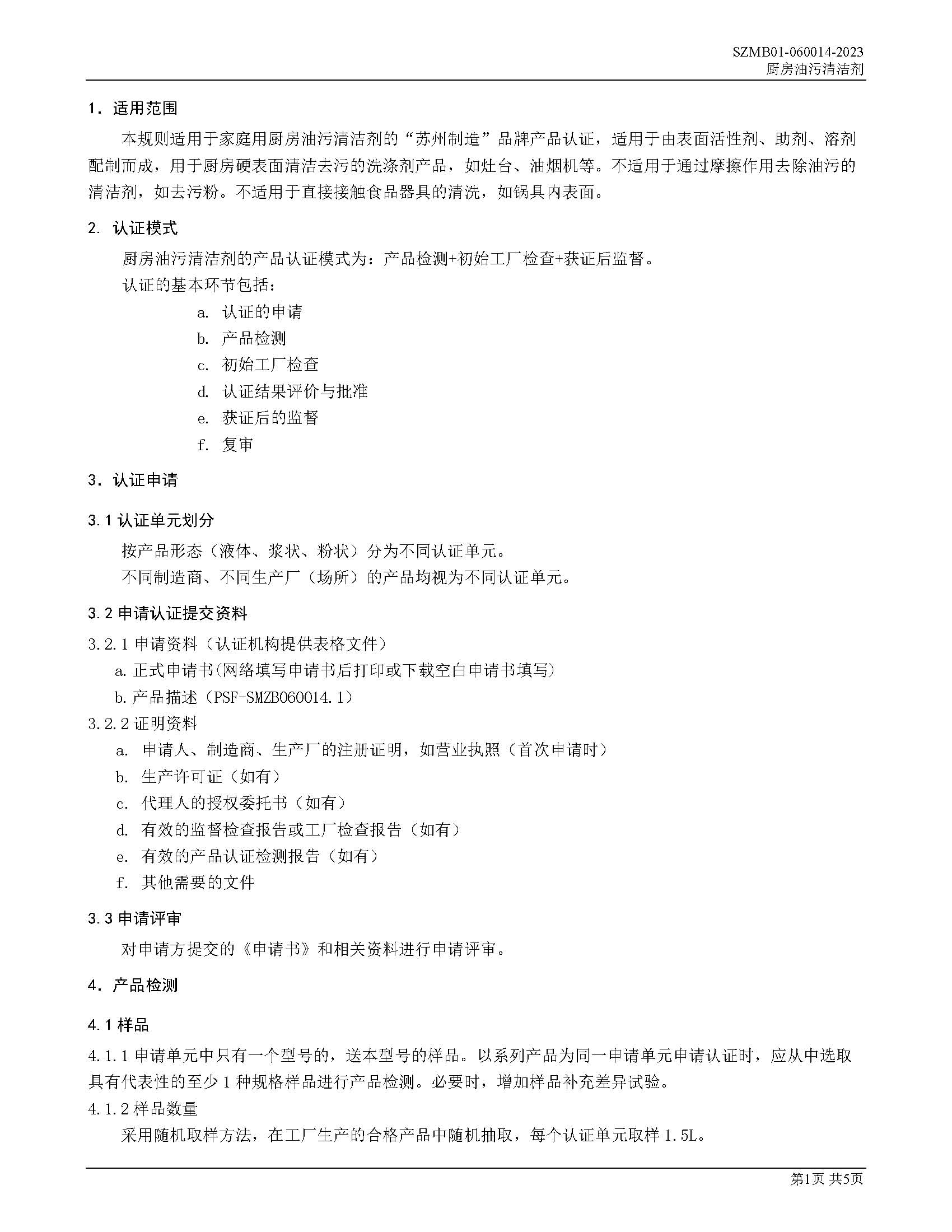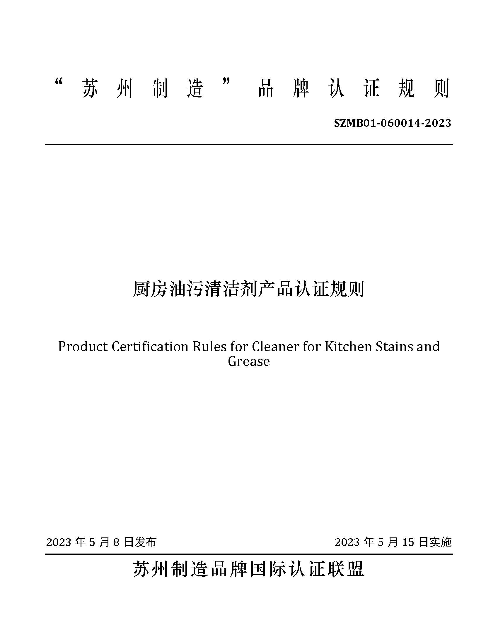 SZMB01-060014-2023厨房油污清洁剂产品认证规则