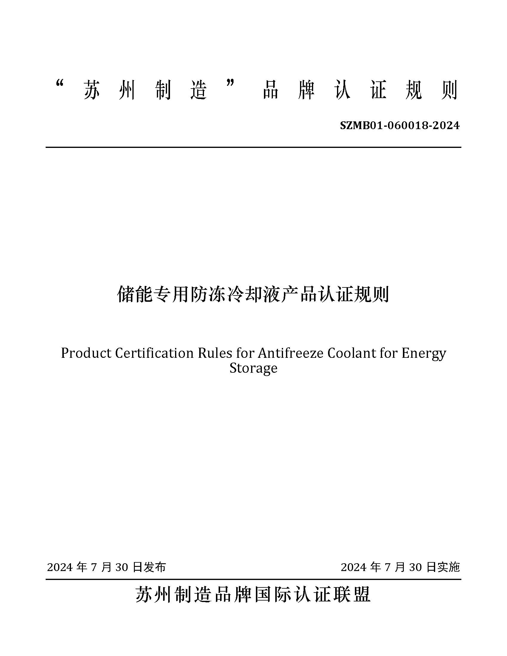 SZMB01-060018-2024储能专用防冻冷却液产品认证规则
