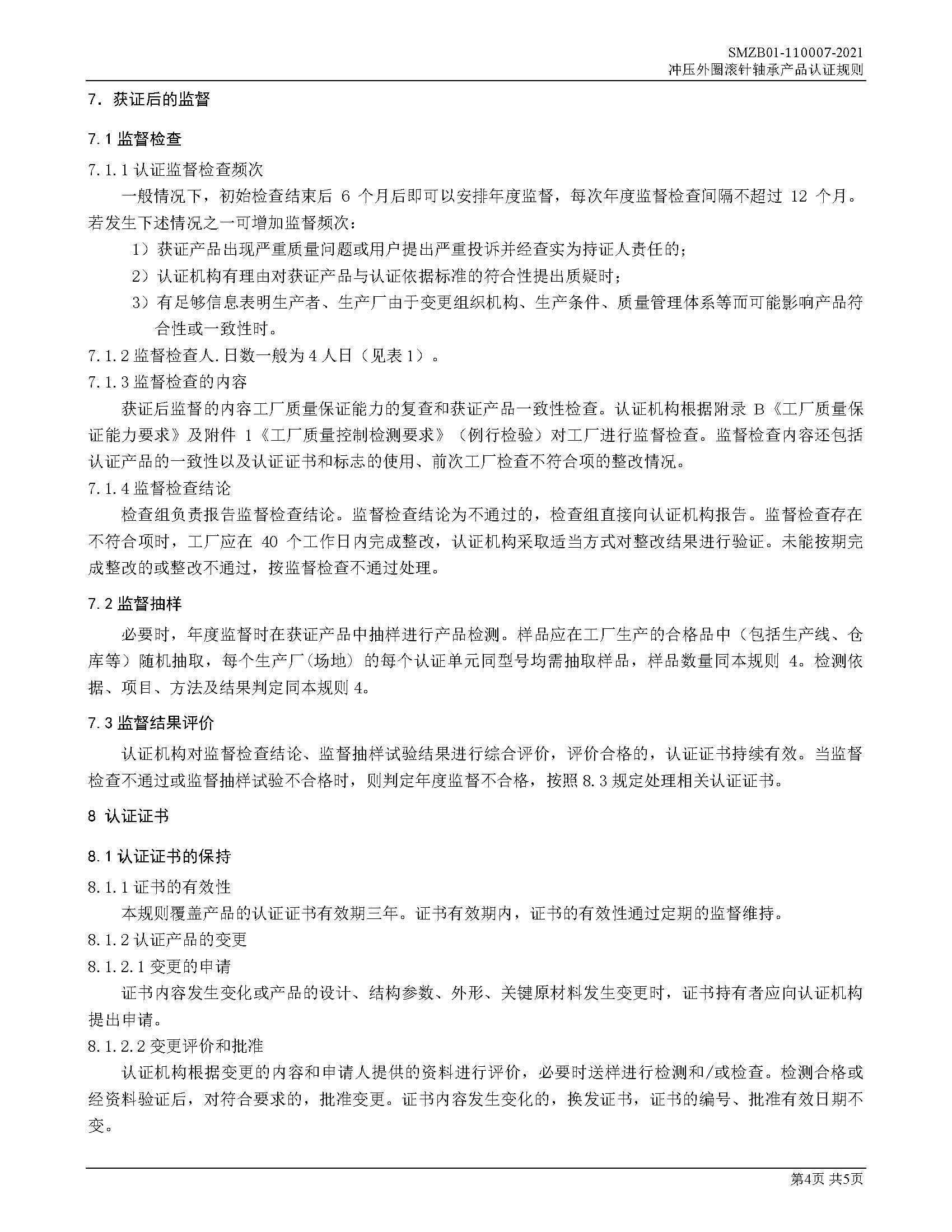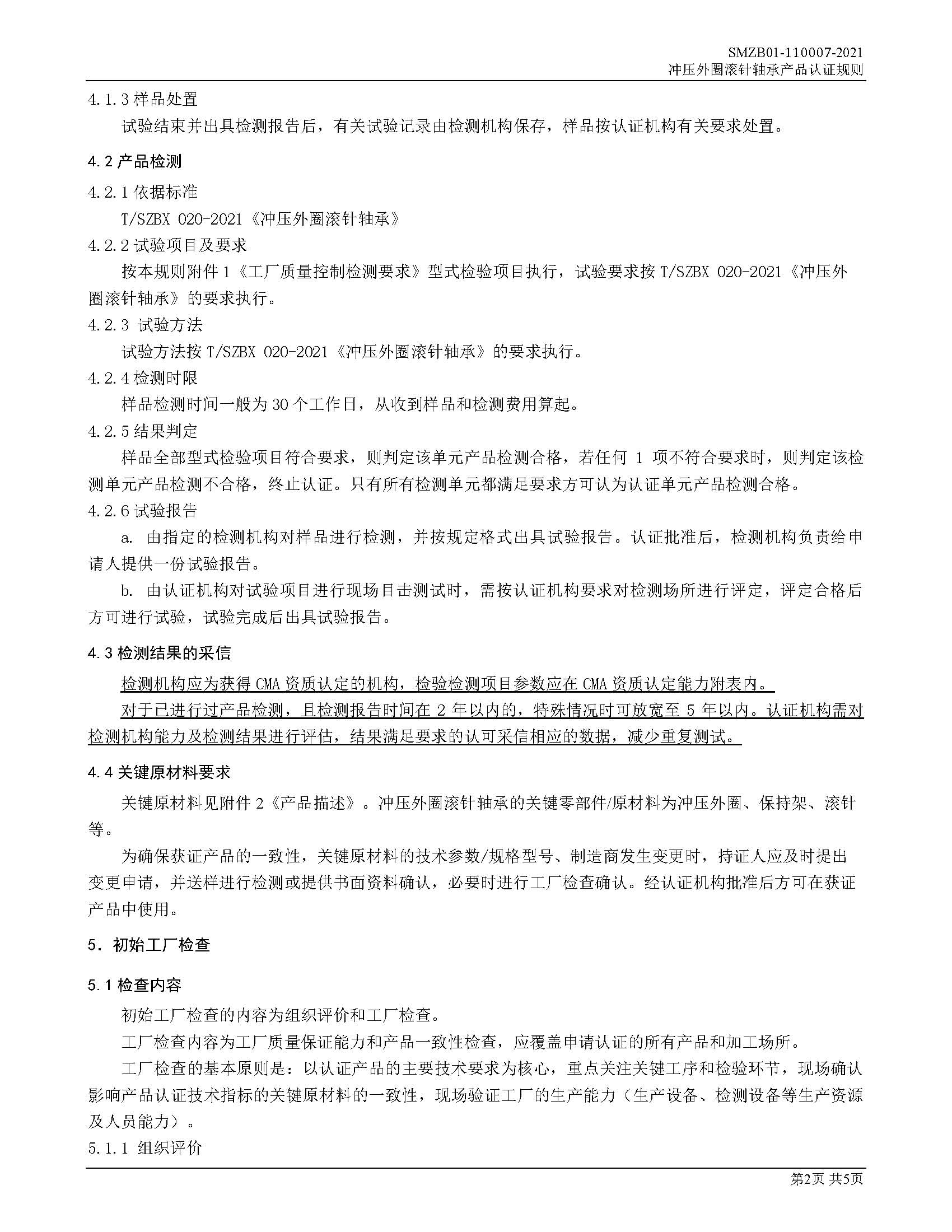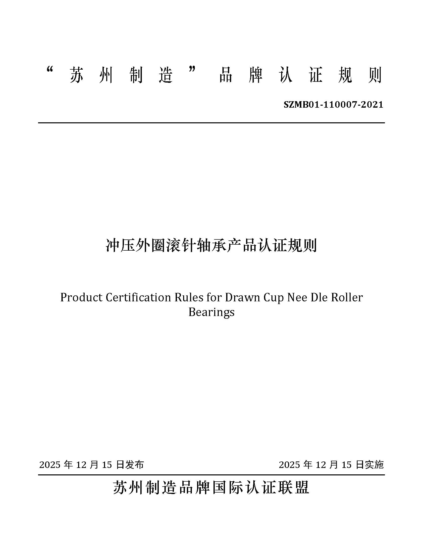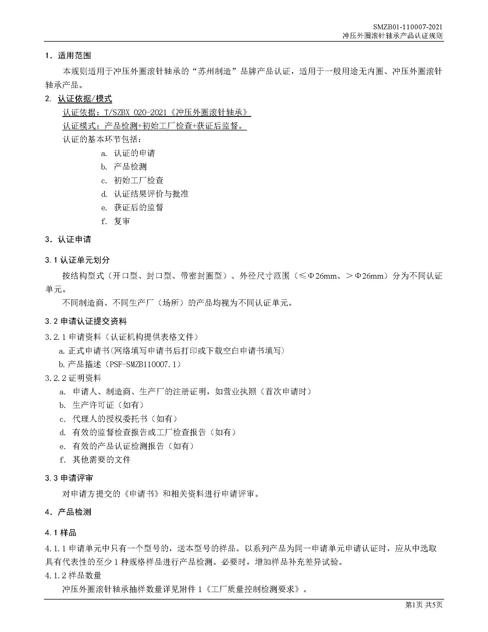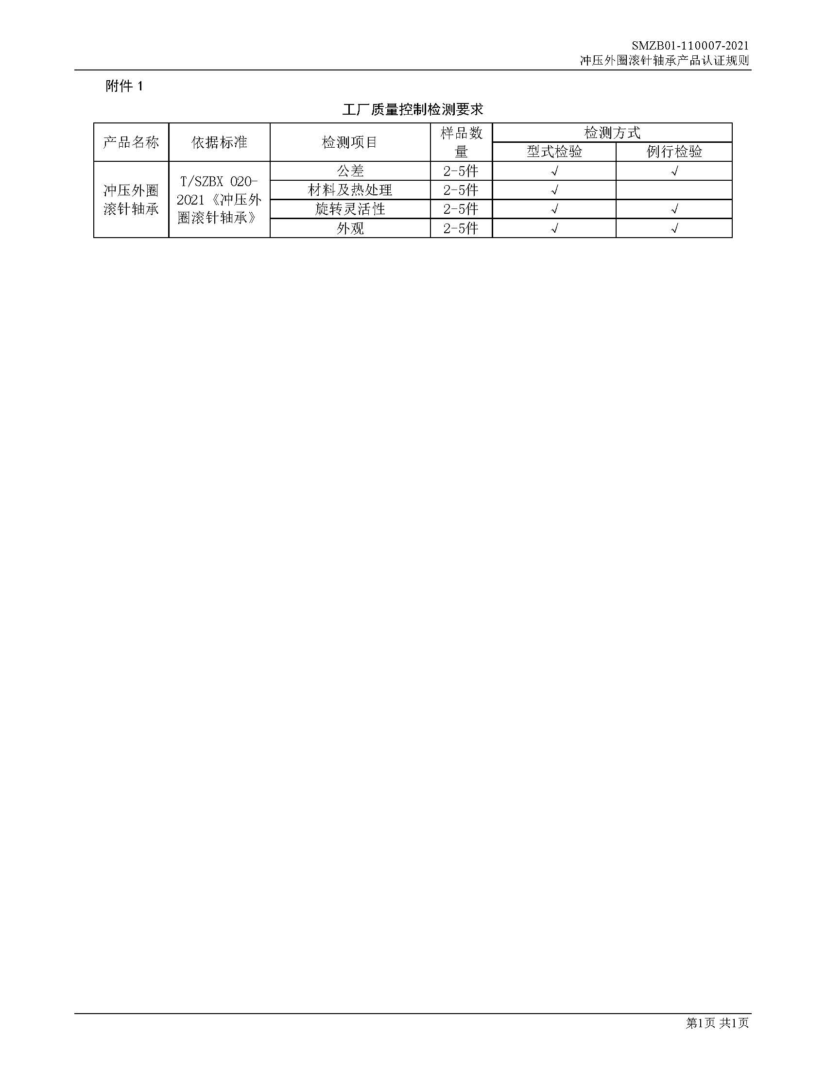 SZMB01-110007-2021冲压外圈滚针轴承产品认证规则