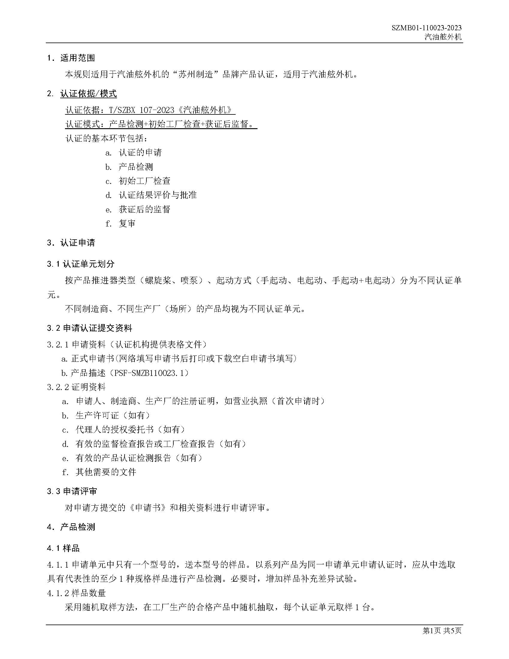 SZMB01-110023-2023汽油舷外机产品认证规则