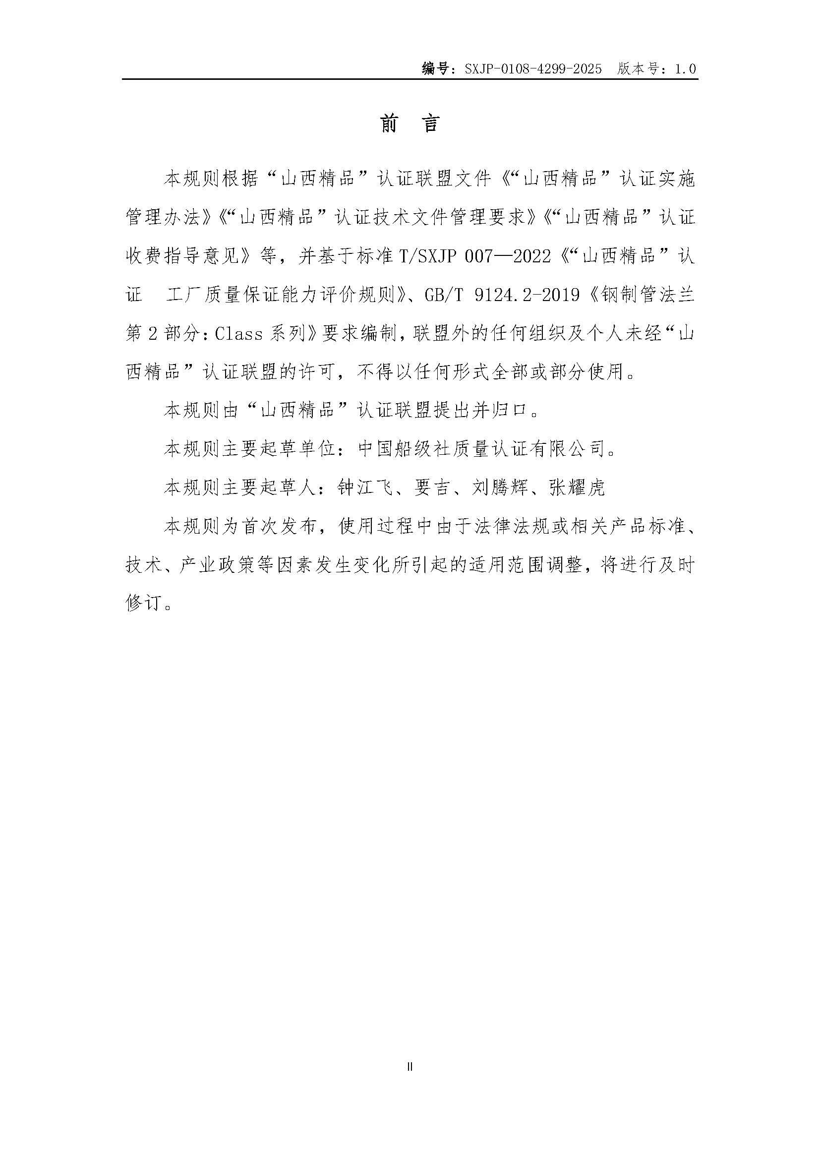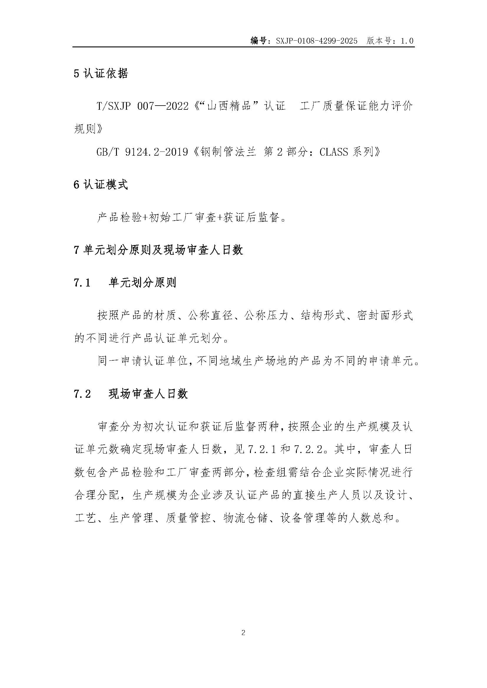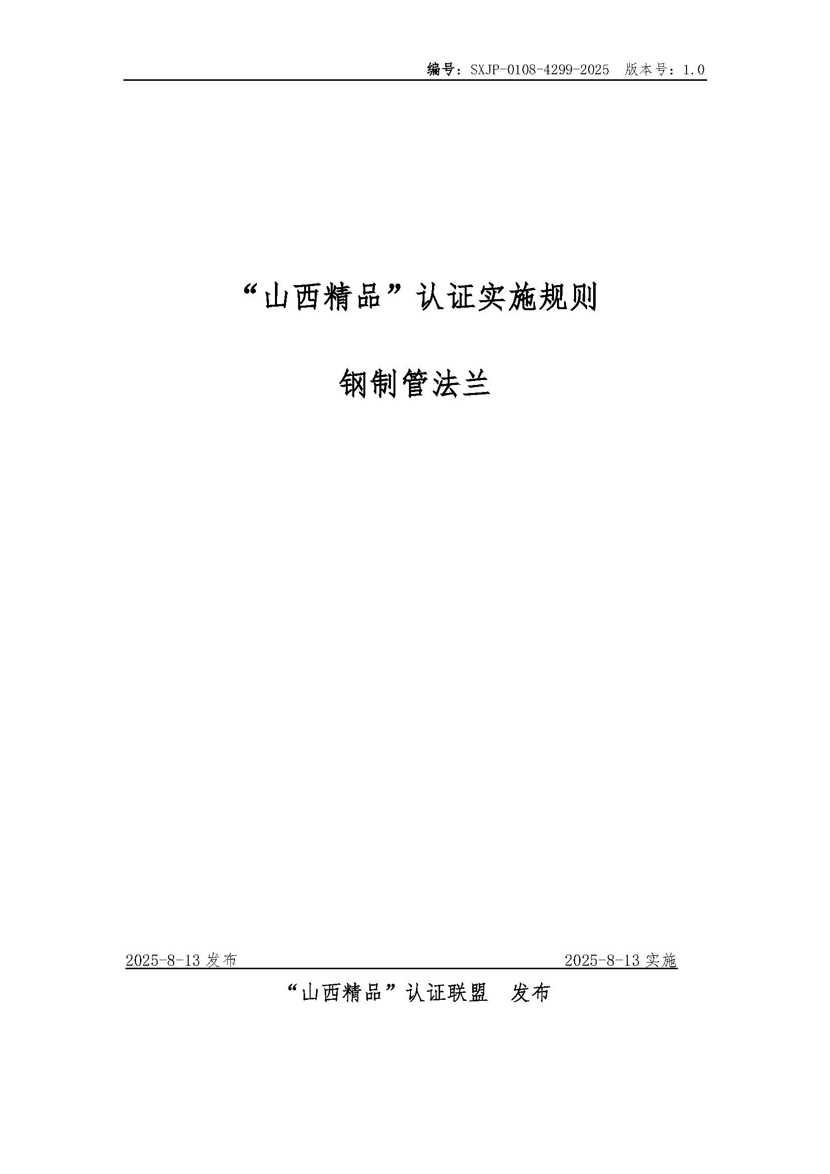 SXJP-0108-4299-2025 “山西精品”认证实施规则钢制管法兰